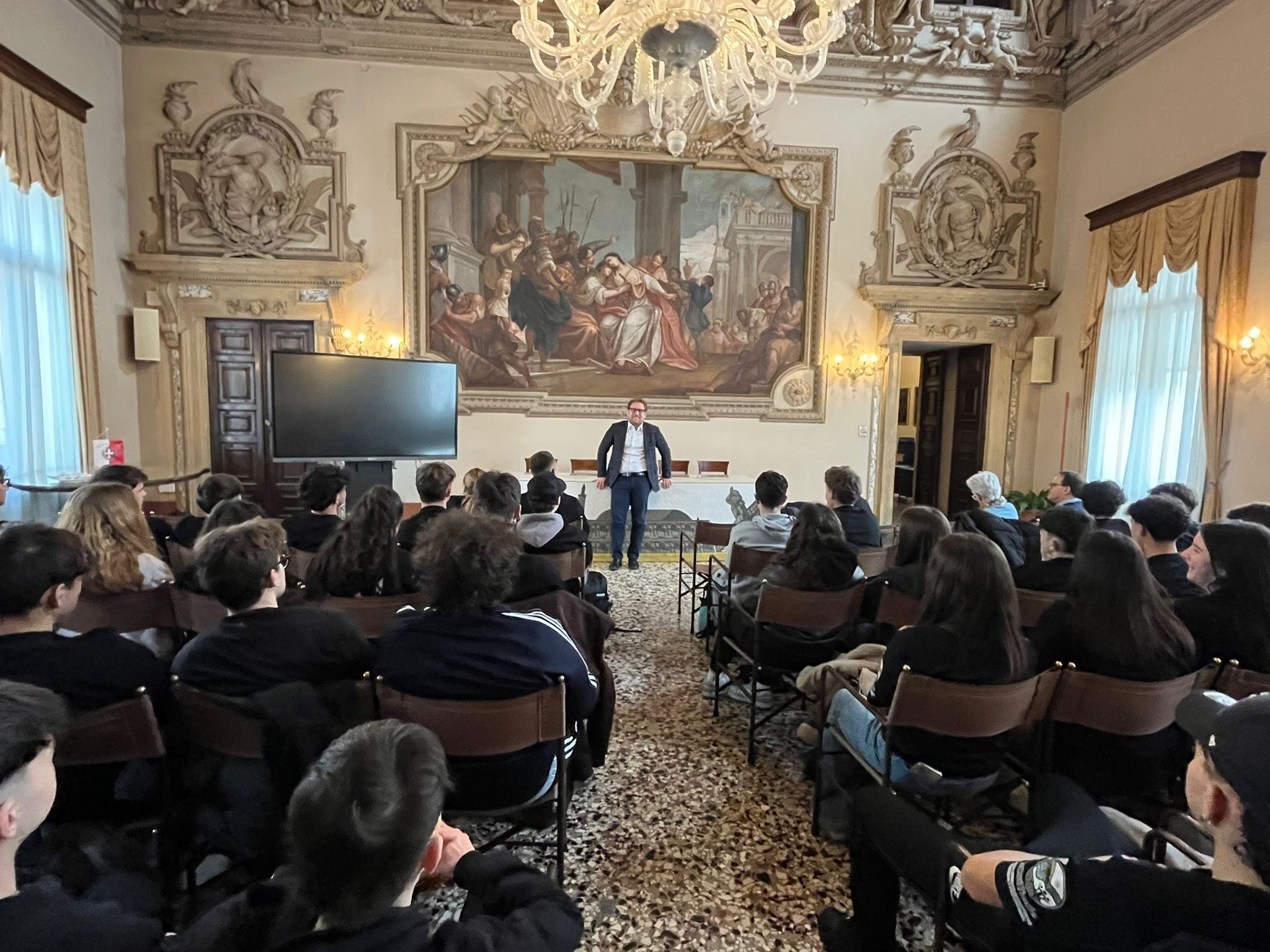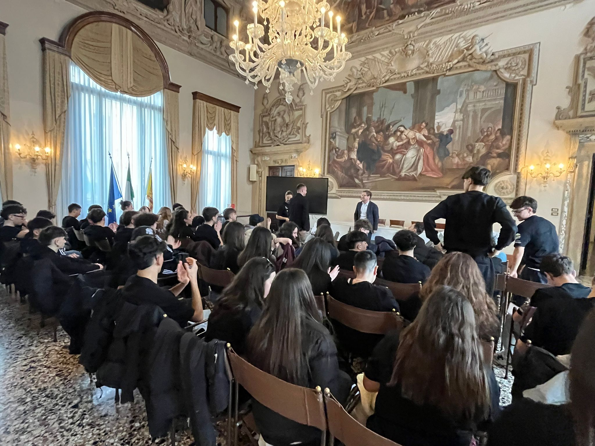 Il 30 marzo una cinquantina di ragazzi e ragazze delle terze del liceo scientifico di Ortona, in provincia di Chieti in Abruzzo, hanno incontrato a Palazzo Trissino il sindaco Giacomo Possamai. Nell’ambito del progetto del liceo “Senato & Ambiente 2026”, gli studenti hanno avuto un confronto con il primo cittadino sul tema della mobilità sostenibile con un focus particolare sulle piste ciclabili. Il sindaco Possamai ha illustrato quindi le politiche che l’amministrazione sta mettendo in atto per incentivare il passaggio dall’utilizzo dei mezzi privati a motore alle biciclette, sia per quanto riguarda le infrastrutture di collegamento tra i quartieri e con le periferie, sia in merito al cambiamento culturale e di abitudini che interessa i cittadini.