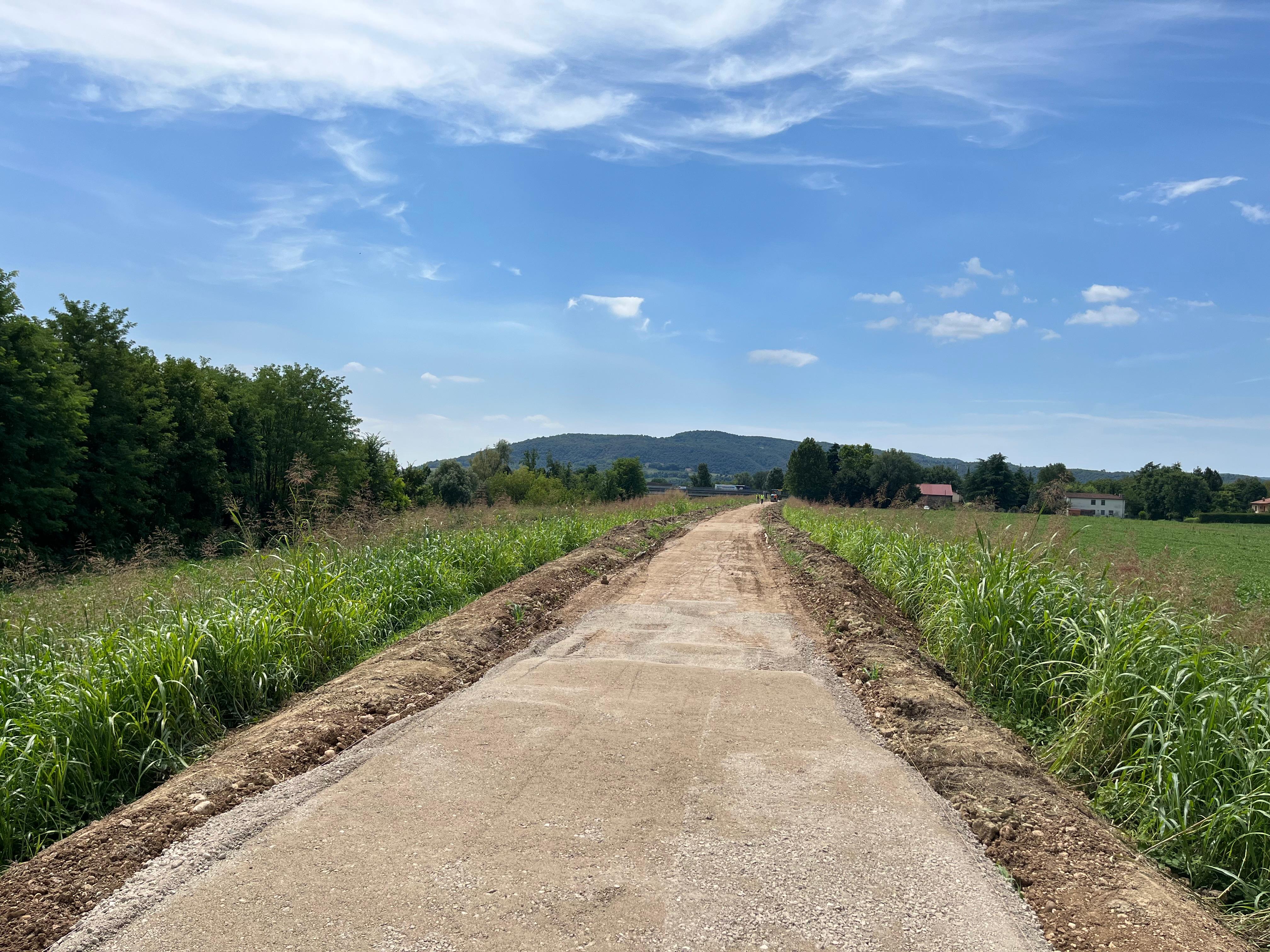L'opera prevede l'esecuzione di un percorso ciclo pedonale della larghezza di 3 metri, realizzato in materiale misto stabilizzato.