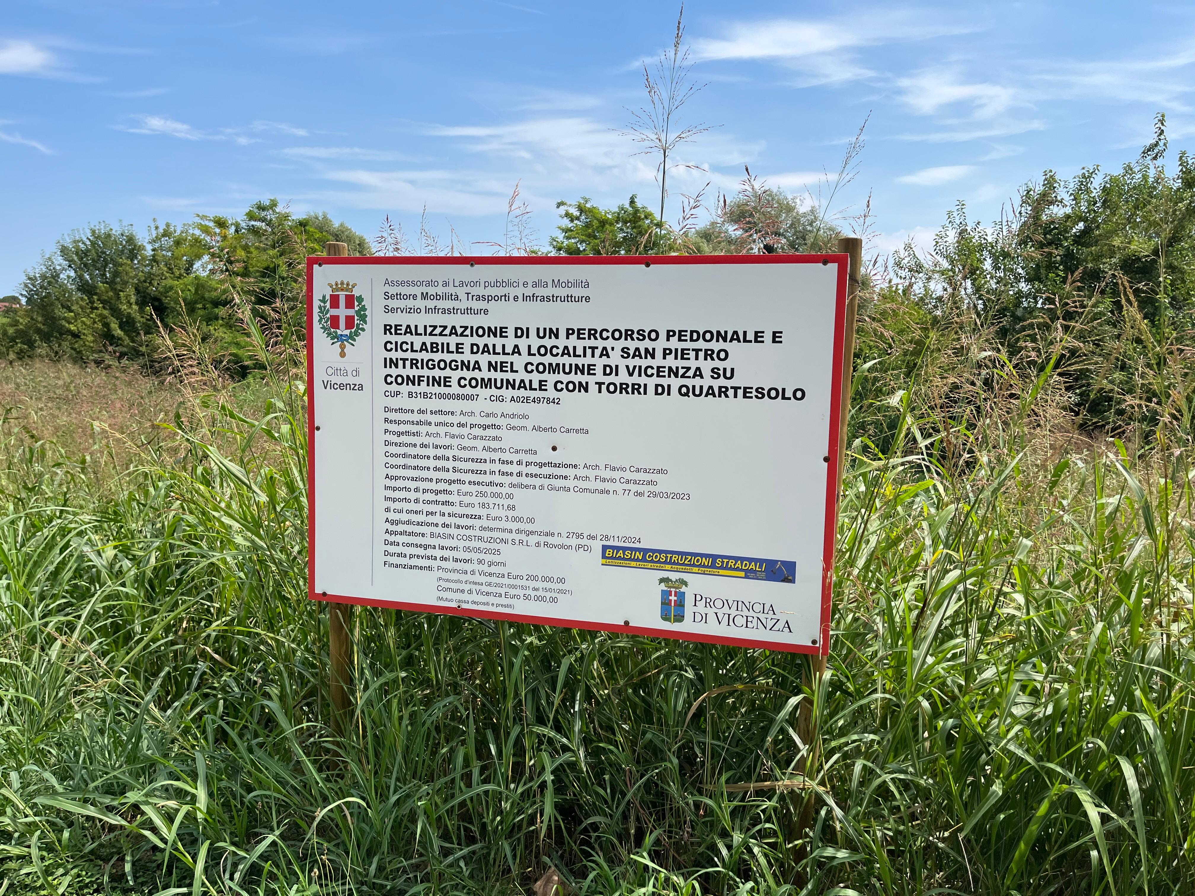 Collegare in sicurezza la ciclabile della Riviera Berica con l'abitato di Torri di Quartesolo e con il percorso ciclo turistico della Media Pianura Vicentina: sta nascendo con questo scopo la nuova pista ciclopedonale che si sviluppa per oltre un chilometro lungo l’argine del fiume Tesina, in località San Pietro Intrigogna.