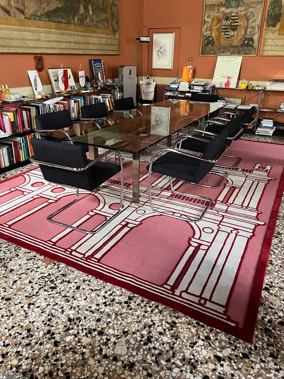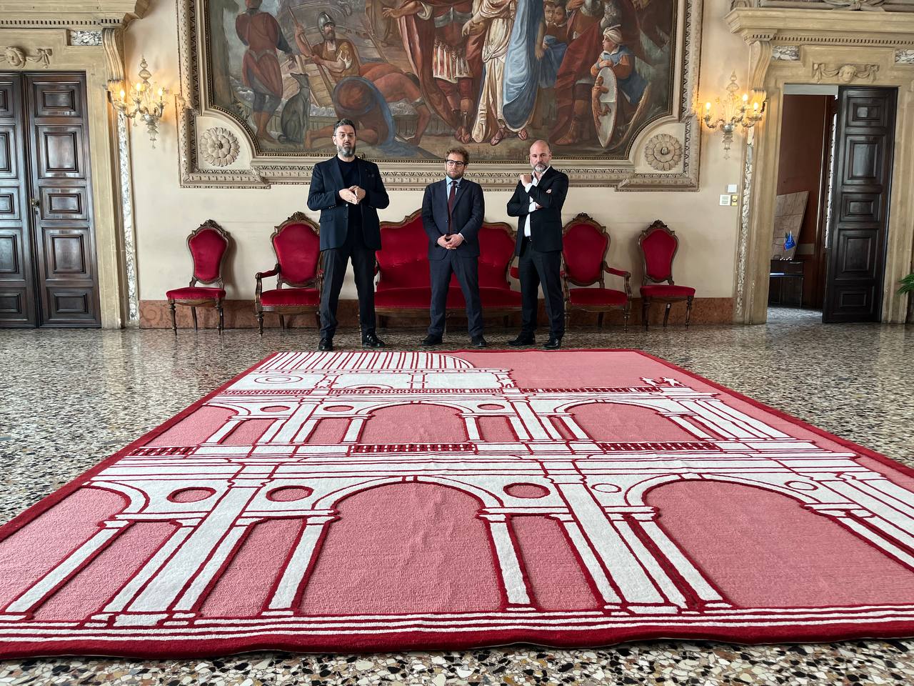 L’opera, frutto di una raffinata lavorazione artigianale, misura 300 per 430 centimetri ed entrerà a far parte del patrimonio simbolico della città, testimoniando il legame tra tradizione e contemporaneità, tra il genio palladiano e la creatività del nostro tempo.