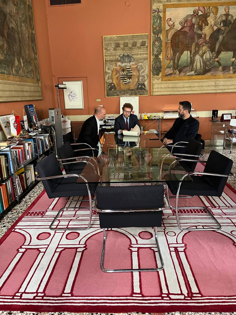 «La donazione di questo tappeto ha un grande valore simbolico perché si tratta di un oggetto che racconta la nostra città attraverso uno dei monumenti più noti, la Basilica palladiana con le inconfondibili serliane ideate da Andrea Palladio – ha detto il sindaco Giacomo Possamai -. Realizzato per essere collocato nella sede di Palazzo Trissino, in differenti versioni verrà esposto anche in altri luoghi per raccontare Vicenza, un modo anche questo per far conoscere la città, il cui centro storico in particolare è ricco di fascino e di storia. Il gesto generoso di Matteo Pala, inoltre, ripete quanto fatto ben 31 anni fa dal padre che aveva realizzato un arazzo con lo stemma di Vicenza, ora collocato all’ingresso di Palazzo Trissino, in occasione del conferimento della seconda medaglia d’oro alla città»