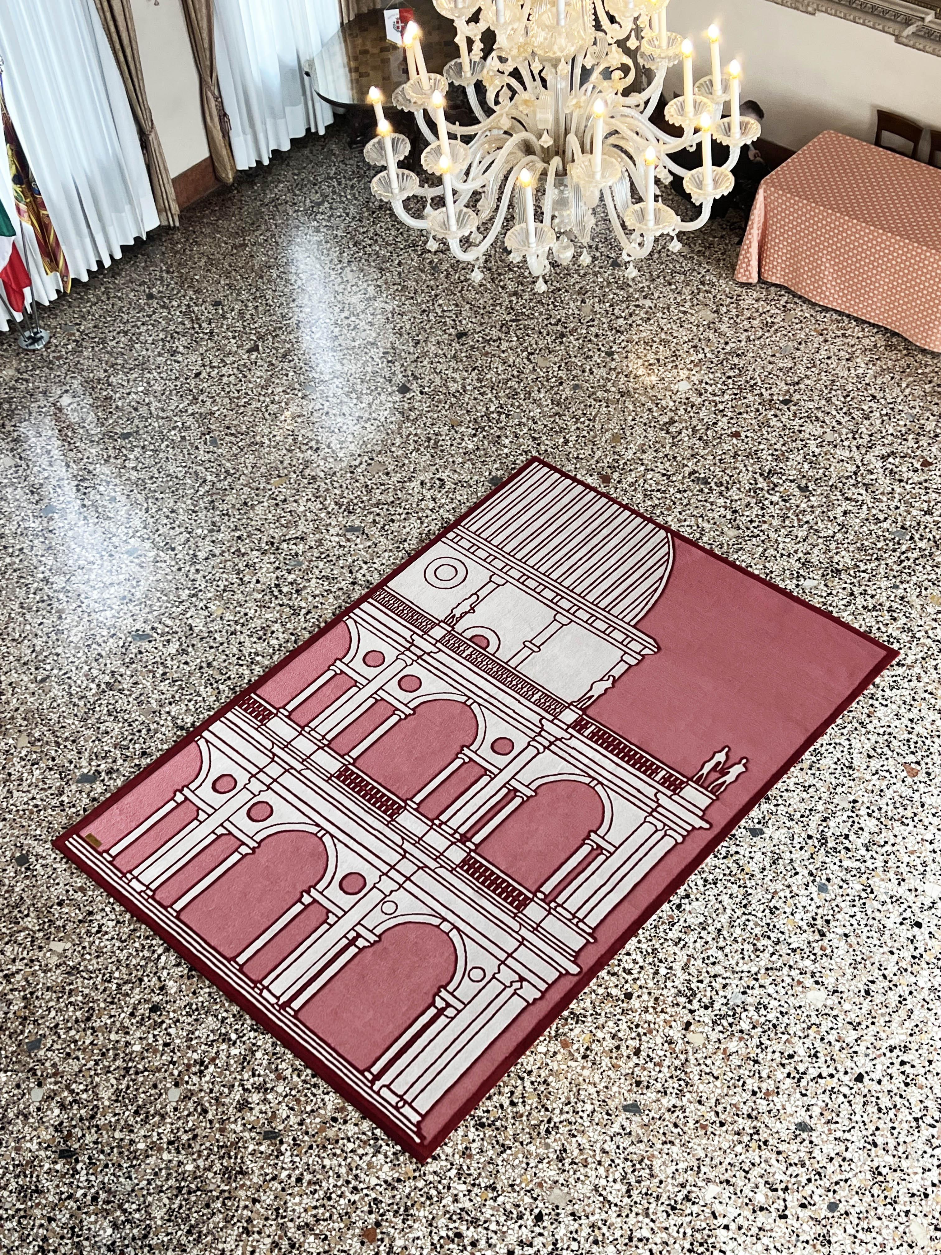 Il tappeto, il cui disegno è stato affidato all'architetto e designer Carlo Dal Bianco, trae ispirazione dalla figura e dall’eredità di Andrea Palladio, celebre architetto rinascimentale, simbolo indiscusso della città.