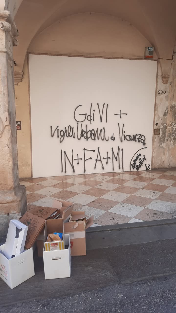 «Esprimo la mia piena solidarietà al Corpo della Polizia Locale e alla redazione del Giornale di Vicenza per le scritte infamanti e ingiuriose comparse oggi nel centro storico di Vicenza. Nessuno può permettersi di gettare fango su chi, ogni giorno, opera con impegno e dedizione per garantire, insieme alle altre forze dell’ordine, sicurezza e decoro nella nostra città. La stessa stima va riconosciuta anche a chi, con libertà e indipendenza, racconta quotidianamente ciò che accade a Vicenza. Chiediamo che chi si è reso responsabile di questo gesto ne risponda di fronte alla legge. La mia solidarietà – prosegue il sindaco - va inoltre ai commercianti che, durante la notte, hanno subito danni ai propri locali a causa di atti di vandalismo e tentativi di scasso. Si tratta di gesti odiosi, compiuti da delinquenti che, grazie al lavoro delle forze dell’ordine, confidiamo siano identificati e assicurati al più presto alla giustizia».
