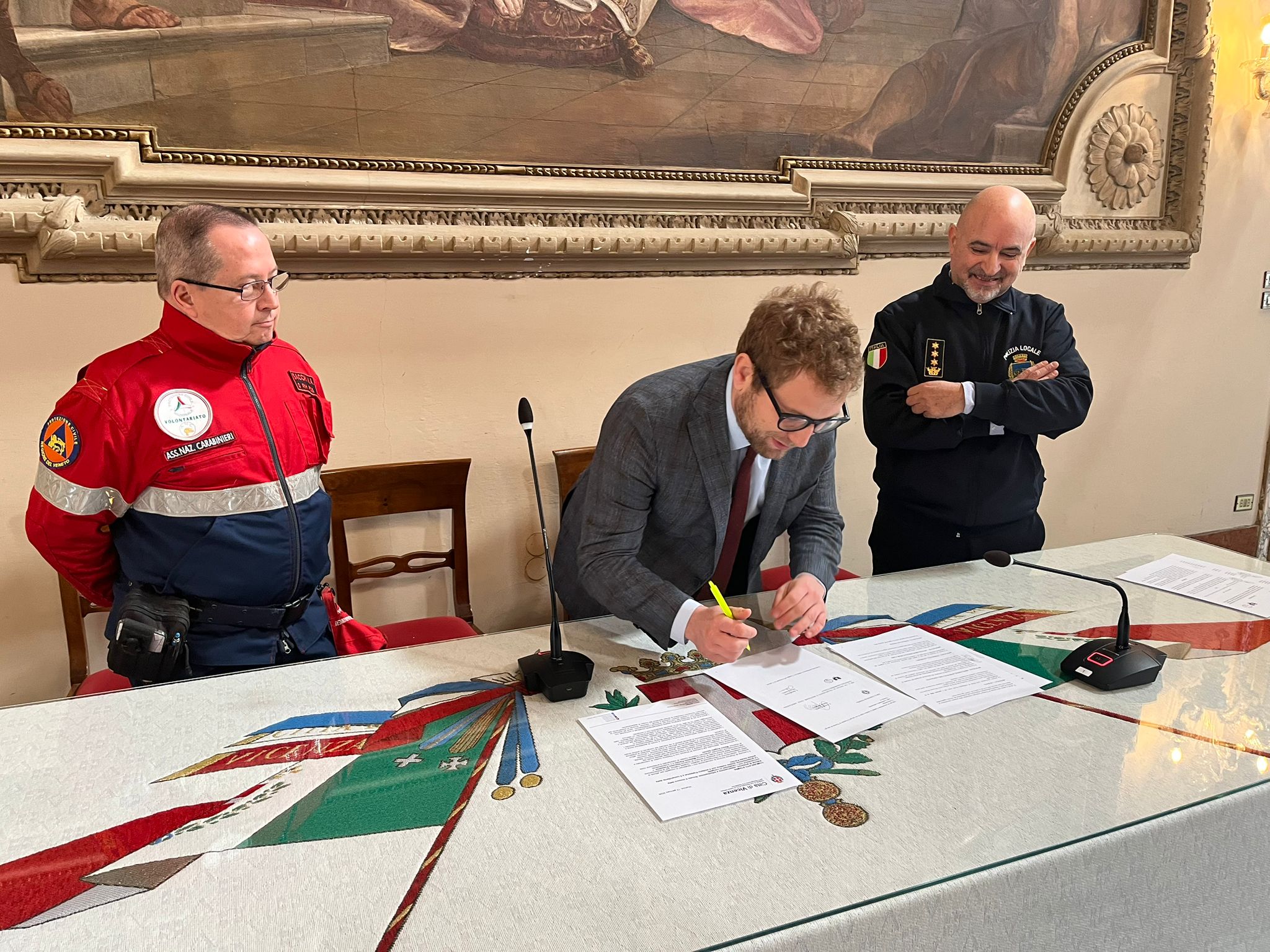 Il Comune di Vicenza ha sottoscritto una nuova convenzione con i carabinieri in congedo per attività di presidio, osservazione e informazione ai cittadini. Questa mattina, per la presentazione della collaborazione, erano presenti il sindaco di Vicenza Giacomo Possamai, il comandante della polizia locale di Vicenza Massimo Parolin e il vicepresidente dell’Associazione nazionale carabinieri 75esimo nucleo di volontariato e protezione civile di Vicenza, Mauro Angelo Sacchi.