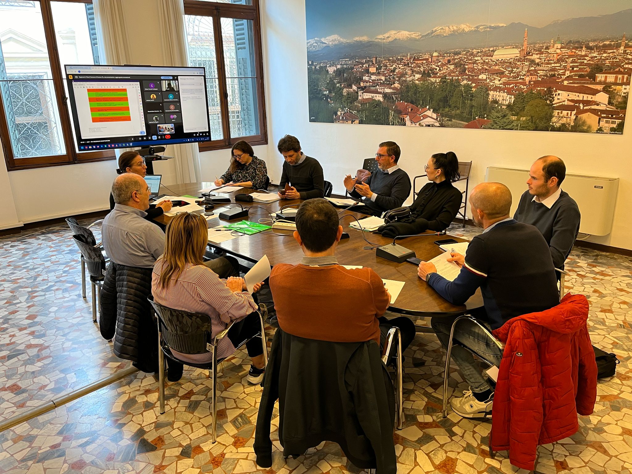 Si è riunito oggi, a Palazzo Trissino, il tavolo di lavoro organizzato dall’Ipa Risorgive per l’iniziativa “Bike to Work”, che vede tra i protagonisti coinvolti anche un raggruppamento di 14 Comuniappartenenti proprio all’Ipa (dei 36 Comuni vicentini che hanno aderito al progetto), ovvero il raggruppamento “Ag7- Ipa Risorgive", con il Comune di Vicenza nel ruolo di capofila. All’incontro hanno partecipato, oltre ai rappresentanti dei 14 Comuni, tra cui l’assessore alla mobilità Cristiano Spiller, anche altre realtà coinvolte, come i rappresentanti di Confartigianato, Confcommercio e Confindustria, oltre a Paolo Mogno della Società Achabgroup che gestisce il progetto.