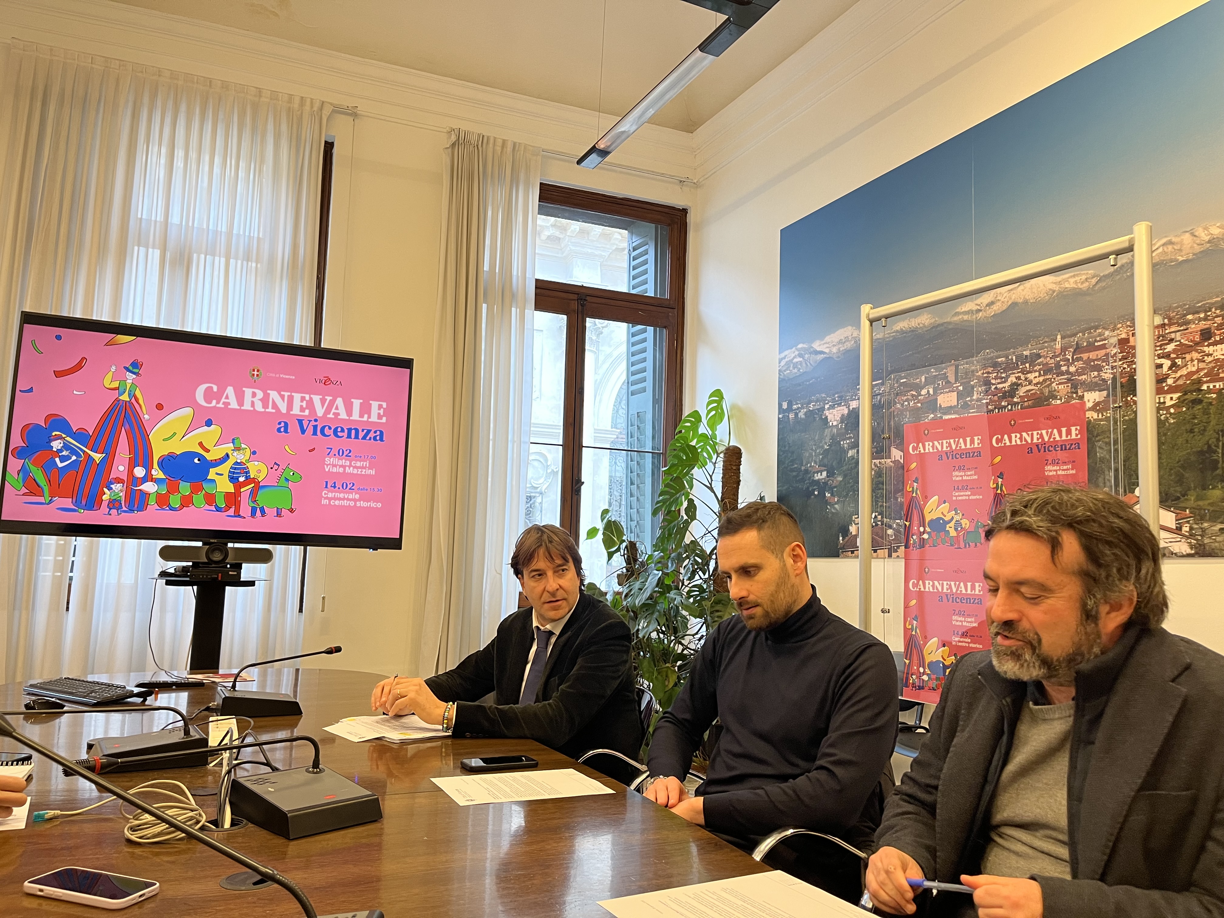 Due gli eventi in programma promossi dal Comune di Vicenza con il Consorzio Vicenza è - la sfilata dei carri mascherati illuminati di sabato 7 febbraio e la festa di Carnevale di sabato 14 febbraio dalle 15.30 – che sono stati presentati oggi dall’assessore ai grandi eventi Leone Zilio, da Corrado Munaretto dell’associazione Eventi 2000 ets e dal presidente del Consorzio Vicenza è Giulio Vallortigara Valmarana.