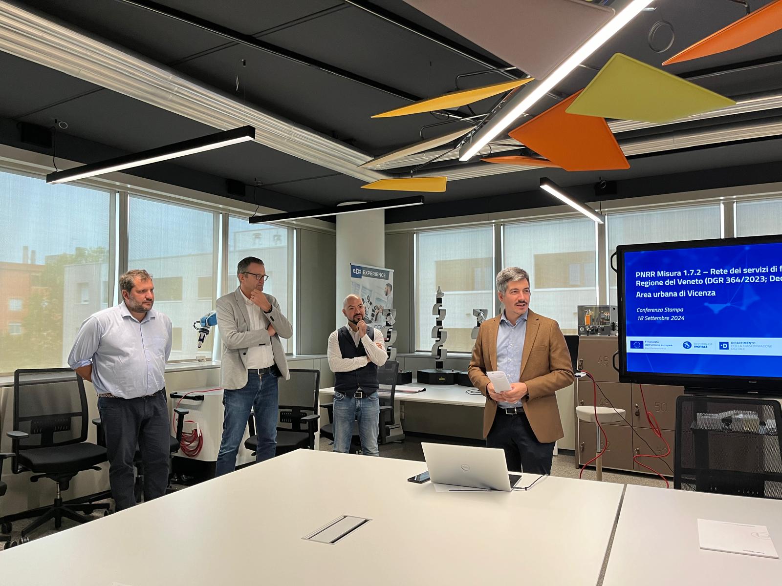 I Comuni sono affiancati dal Digital Innovation Hub di Confartigianato Imprese Vicenza, che cura le attività di formazione e comunicazione, e da Sherpa Spinoff dell’Università di Padova, responsabile del coordinamento e della facilitazione. Per fare il punto sull’andamento dell’iniziativa erano presenti oggi al Digital Innovation Hub l’assessore alla digitalizzazione e all’innovazione del Comune di Vicenza Leonardo Nicolai, i rappresentanti dei partner operativi del progetto, ovvero Digital Innovation Hub di Confartigianato Imprese Vicenza e Sherpa Spinoff dell’Università di Padova.