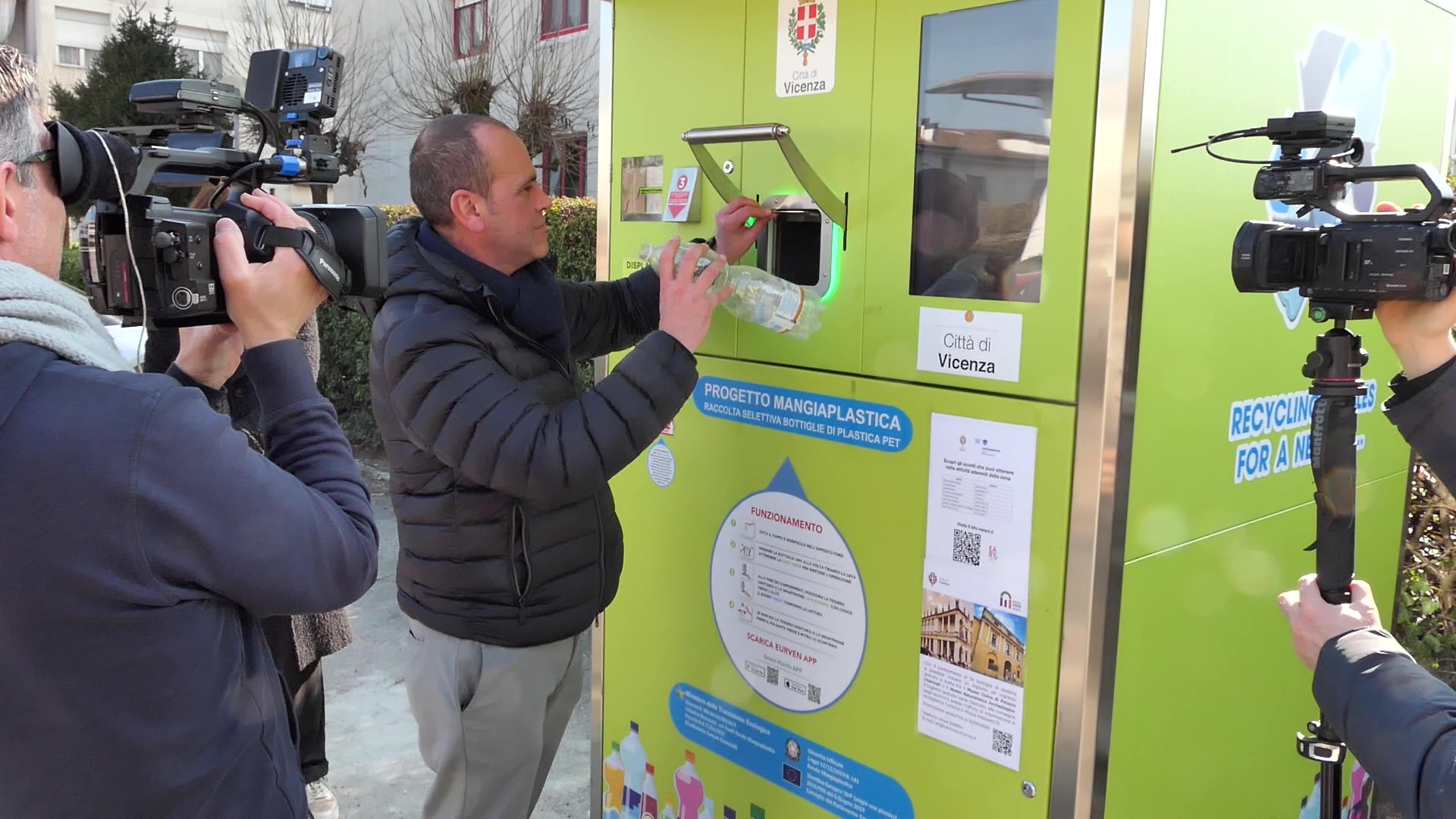 È stato presentato questa mattina il nuovo eco compattatore “mangiaplastica” collegato alle iniziative di incentivazione della raccolta differenziata delle bottiglie di Pet del Comune di Vicenza.
