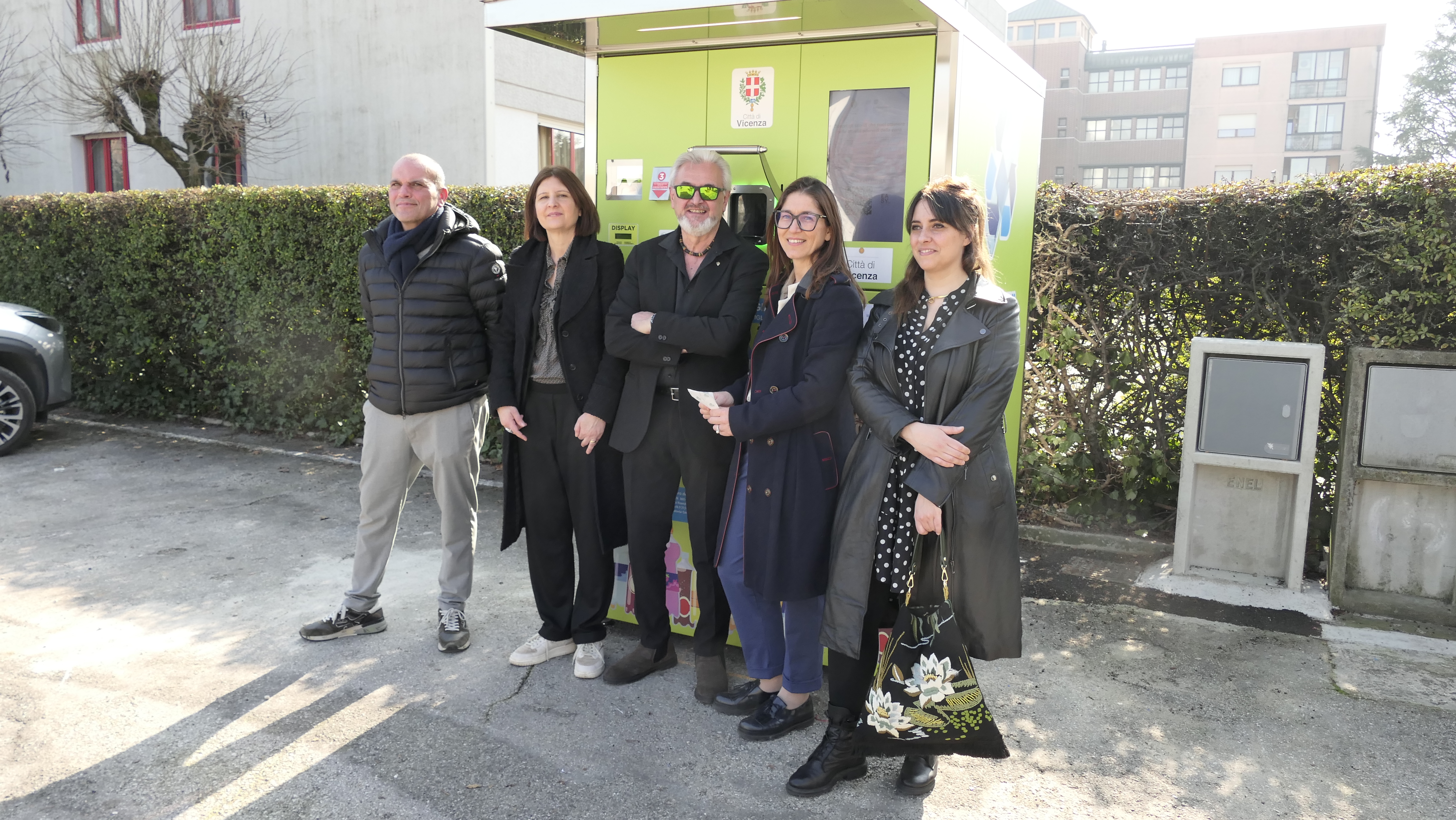 A presentare il “mangiaplastica” Sara Baldinato, assessore all’ambiente, alle politiche energetiche e al patrimonio, Cristina Balbi, assessore allo sviluppo economico e al territorio, Ilaria Fantin, assessore alla cultura, al turismo e all’attrattività della città, e Michele Valentini, presidente della Sezione 3 di Confcommercio Vicenza.