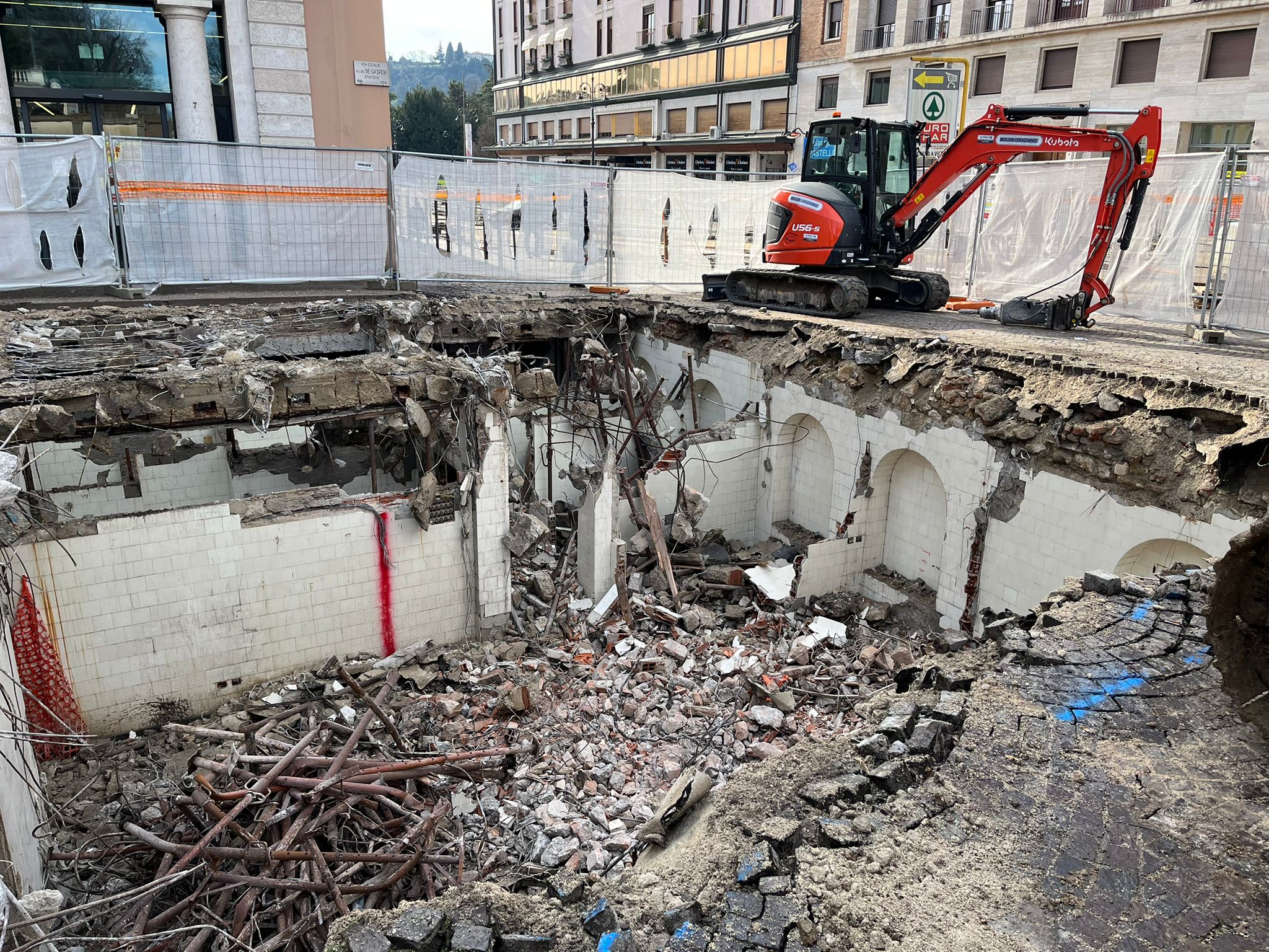«Qui all'angolo tra viale Roma e piazzale De Gasperi, negli anni Trenta, furono realizzati i bagni diurni della città - le parole dell’assessore Spiller -. Uno spazio molto utilizzato dai cittadini perché allora nelle abitazioni non sempre erano presenti i servizi igienici, quindi in questo spazio non c'erano solo le toilette, ma c'erano anche vasche da bagno, docce, il locale parrucchiere e barbiere. Negli anni della Seconda guerra mondiale questi spazi sono stati utilizzati anche come ricovero antiaereo e successivamente, man mano che nelle abitazioni le dotazioni dei servizi igienici sono andate migliorando, negli anni Cinquanta sono andati in disuso e sono stati chiusi. Sono dunque più di 70 anni che questi locali sono interdetti e in questo lungo tempo le strutture sono andate ad ammalorarsi in modo significativo. Il solaio che divideva i locali dalla piazza, ad esempio, era ormai compromesso ed era quindi necessario e urgente intervenire per mettere in sicurezza l'area».