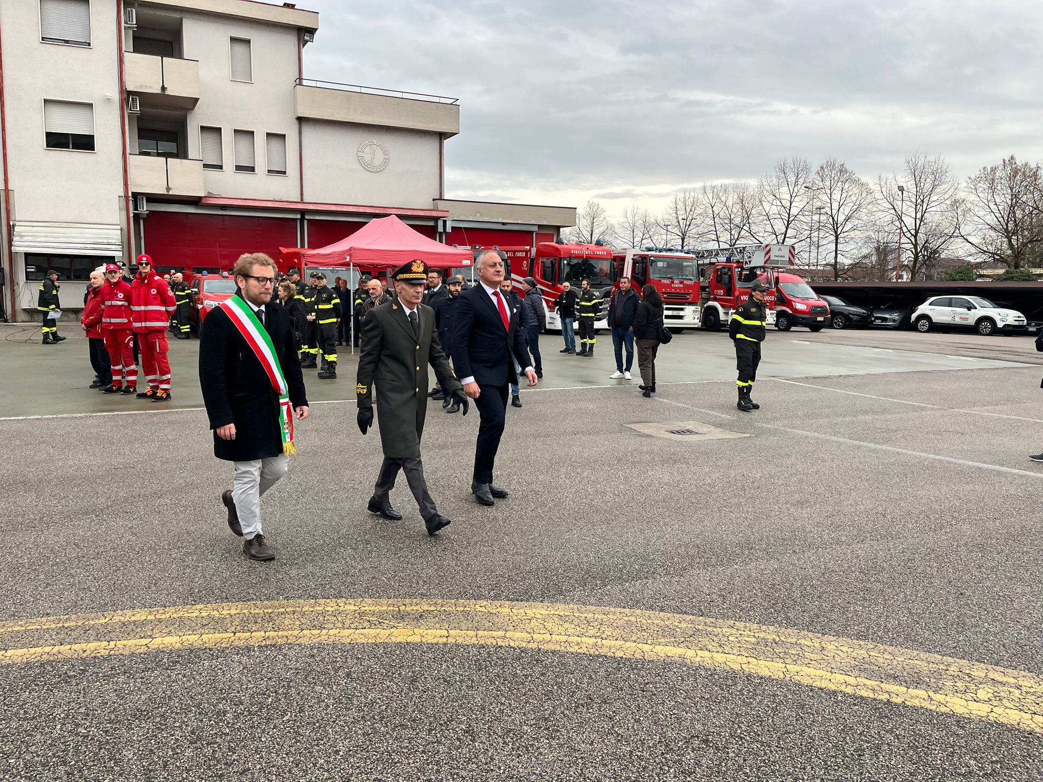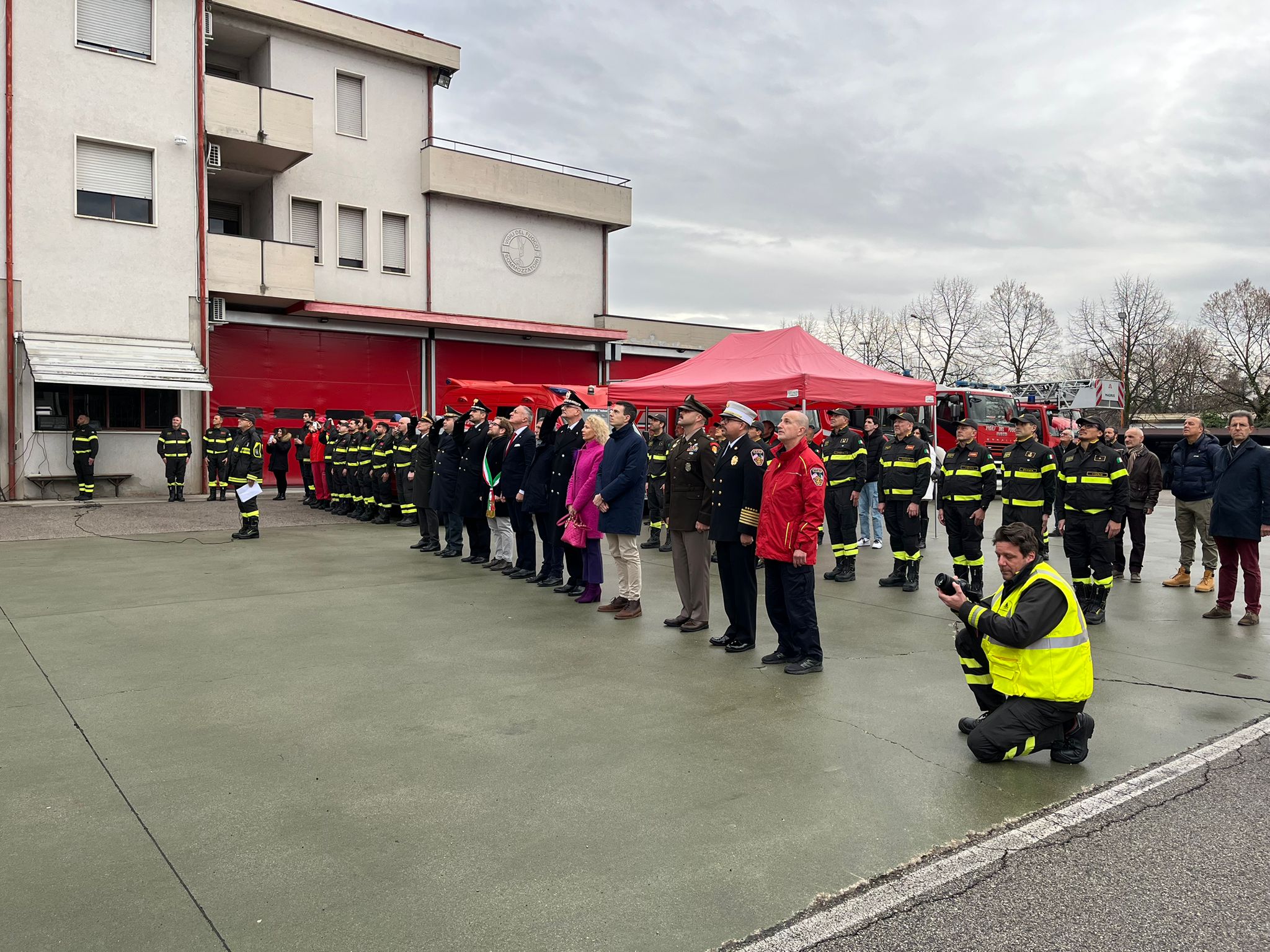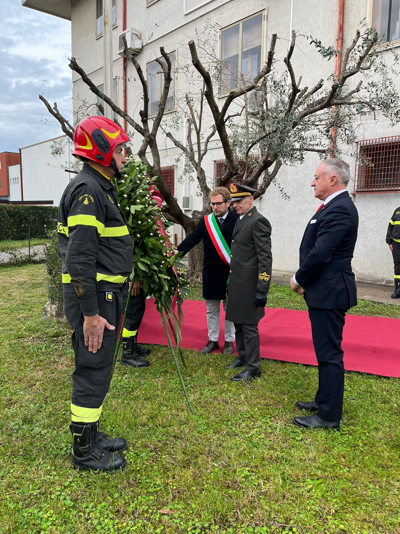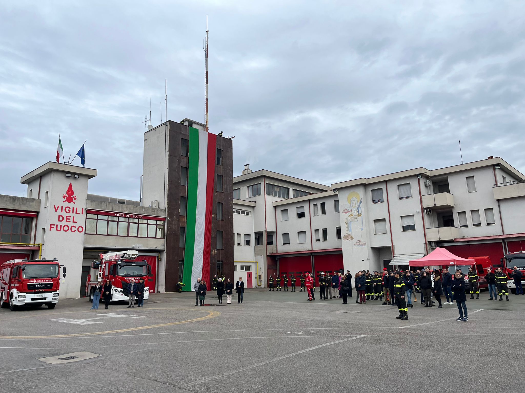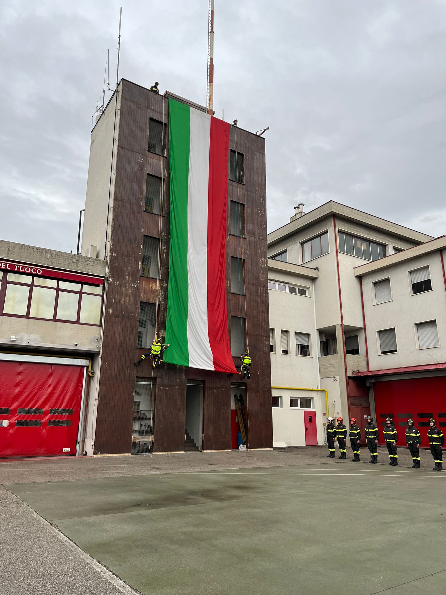 La celebrazione è iniziata con l’esposizione di un grande tricolore sul castello di manovra del comando, seguita dall’onore ai caduti e dalla deposizione di una corona d’alloro da parte del sindaco Possamai, del comandante reggente dei Vigili del Fuoco di Vicenza Giuseppe Costa e del Prefetto di Vicenza Filippo Romano.