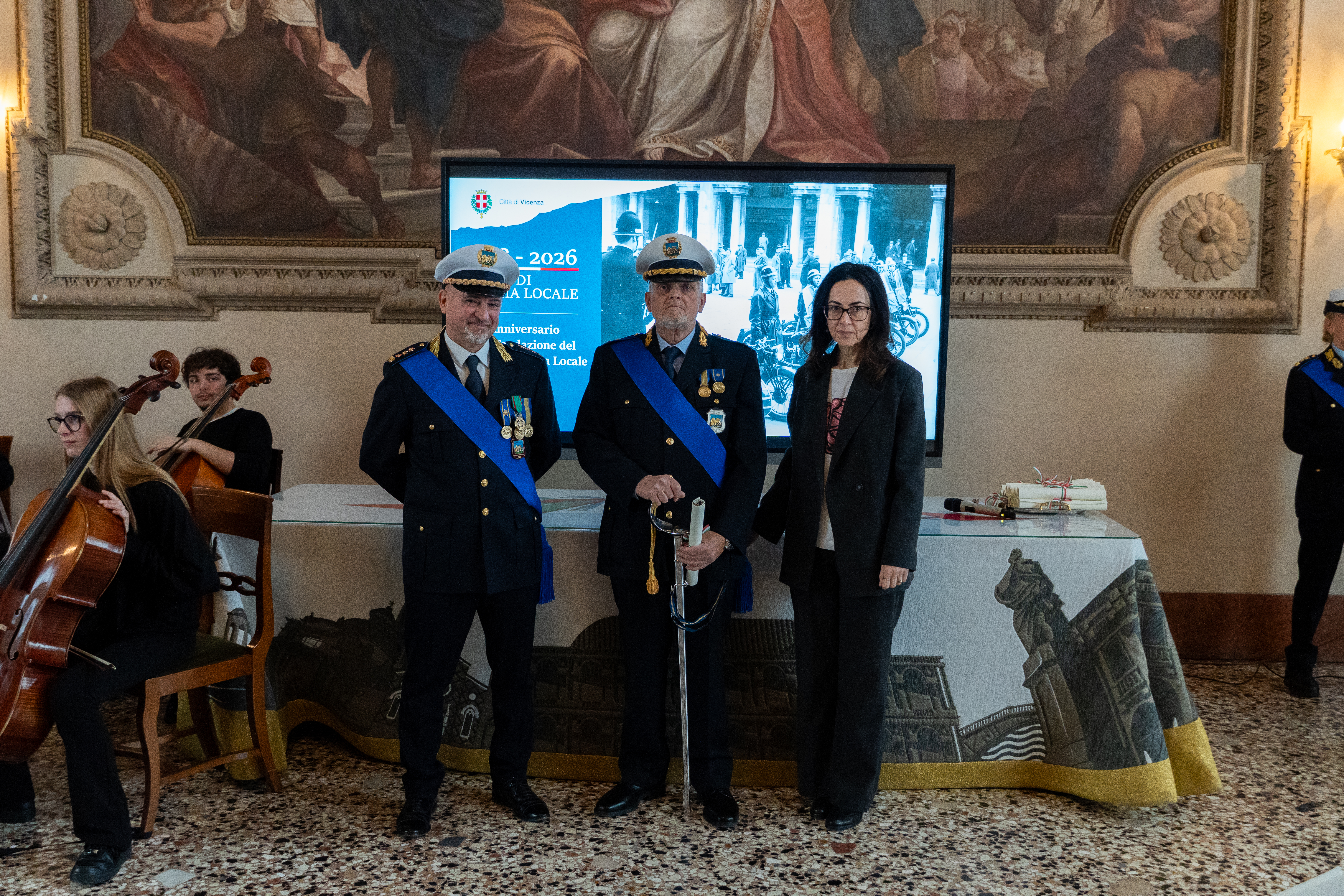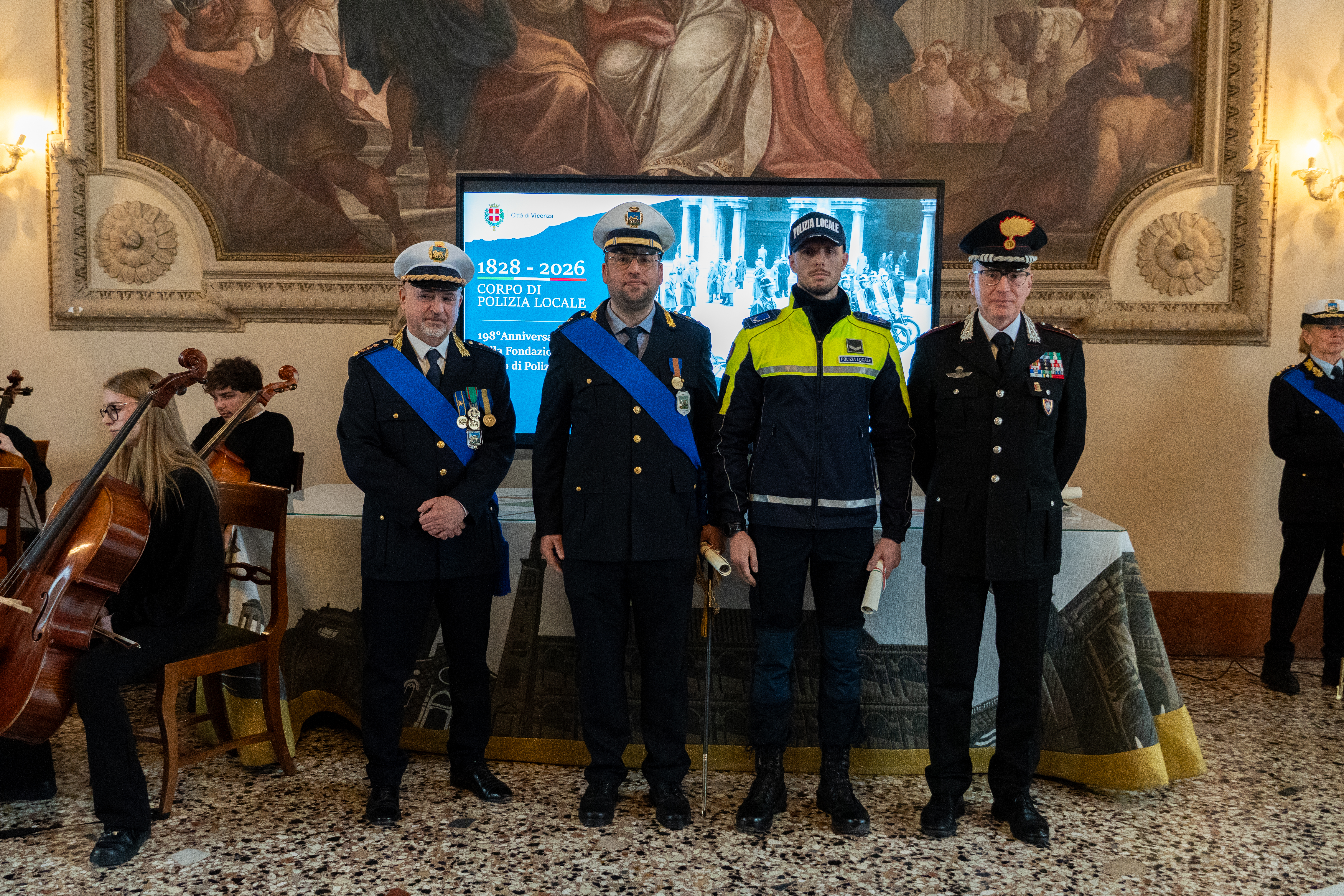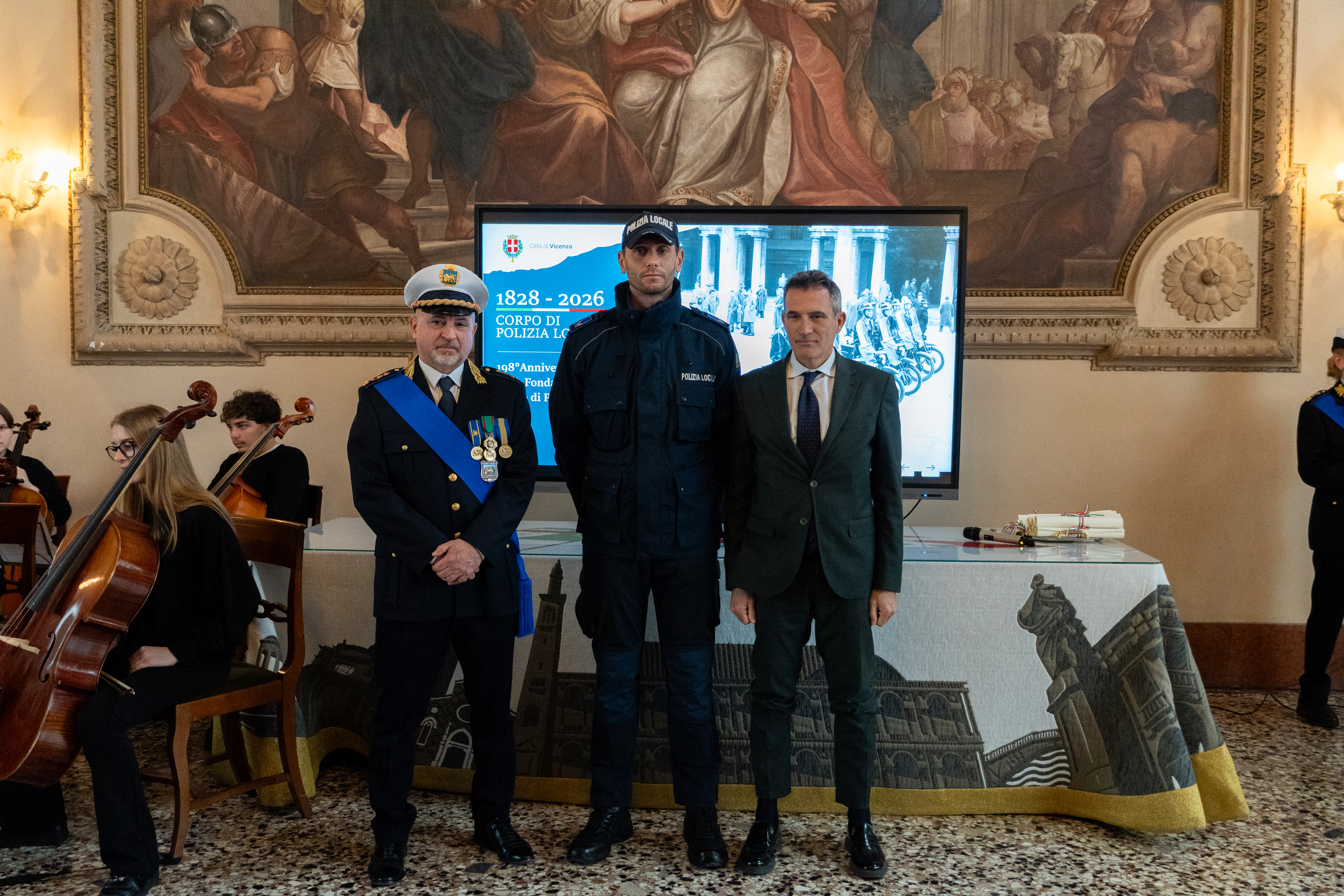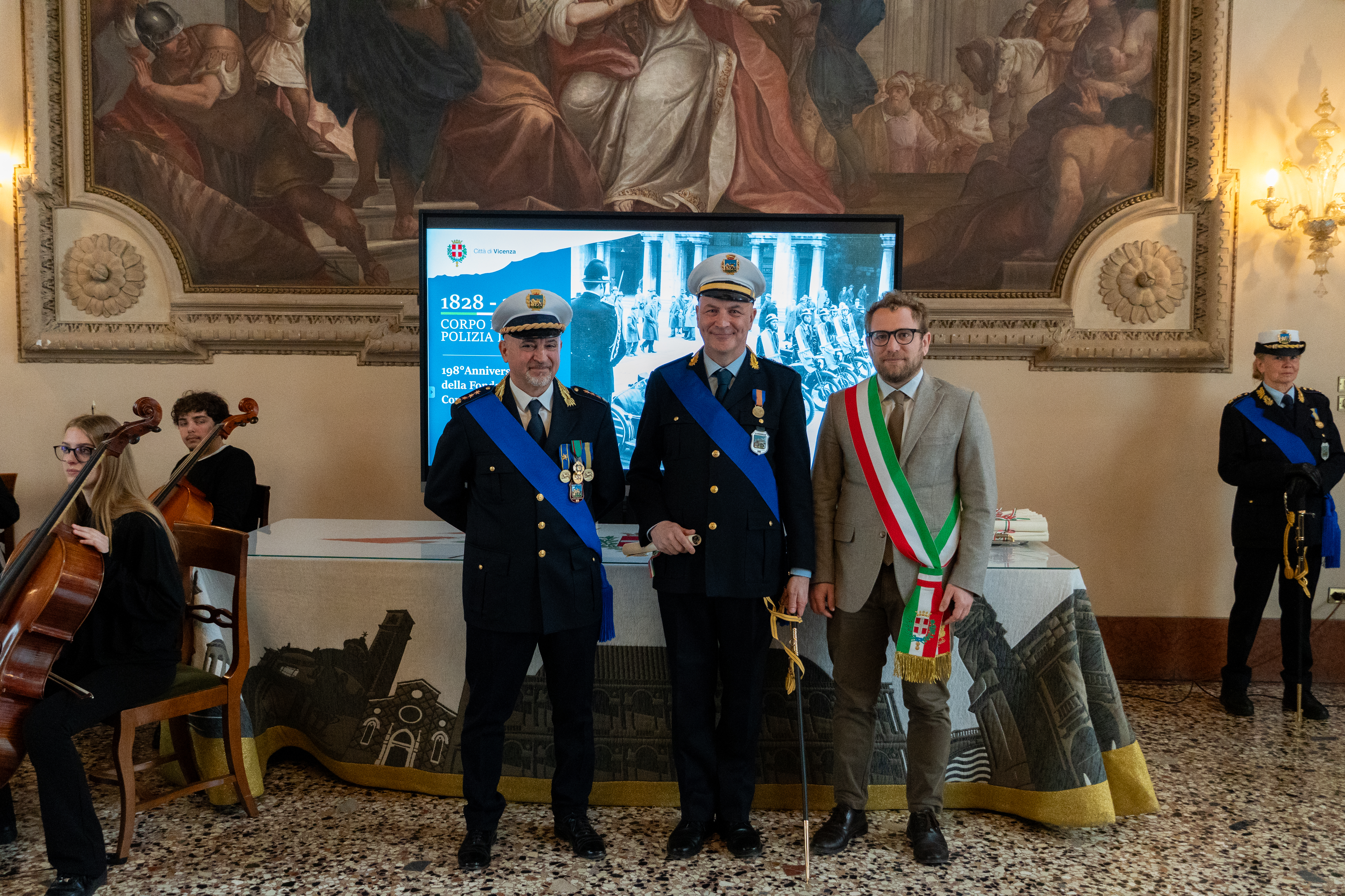 Spazio poi all’intervento del sindaco di Vicenza Giacomo Possamai: «Autorità civili, militari e religiose, Comandante Parolin, donne e uomini della Polizia Locale, Cittadine e cittadini, è con grande piacere che porto il saluto della città di Vicenza in occasione del 198° anniversario della fondazione del Corpo di Polizia Locale, una presenza storica e fondamentale per la nostra comunità, che dal 1828 accompagna la vita della città e ne tutela l’equilibrio e la convivenza civile. Questa cerimonia, che da qualche anno ospitiamo qui in Sala Stucchi, vuole essere un’occasione per riconoscere e mettere in luce il valore quotidiano di un servizio che le donne e gli uomini della Polizia Locale svolgono spesso lontano dai riflettori, ma che incide profondamente sulla qualità della vita dei cittadini. Viviamo in un tempo complesso, attraversato da cambiamenti rapidi e da nuove fragilità: sociali, economiche, urbane. Le città sono luoghi vivi, dinamici, ma anche esposti a tensioni e criticità che richiedono attenzione, presenza e capacità di ascolto. In questo contesto, il ruolo della Polizia Locale è diventato sempre più centrale. La sicurezza, infatti, non è soltanto contrasto ai reati. È anche ordine, vivibilità degli spazi pubblici, rispetto delle regole condivise. È presenza quotidiana nei quartieri, è prossimità, è capacità di mediazione nei conflitti, è ascolto delle esigenze dei cittadini. La Polizia Locale incarna tutto questo. È il primo volto delle istituzioni che molti cittadini incontrano. È il presidio più vicino, più immediato, più umano. È quella presenza che rassicura, che interviene, che accompagna. Una presenza che sa essere autorevole, ma anche attenta e sensibile alle fragilità. A Vicenza, questo si traduce in un impegno concreto e costante: nella gestione del traffico e della mobilità, nella tutela della sicurezza urbana, nei controlli sul territorio, nel contrasto al degrado, ma anche nella collaborazione quotidiana con le altre forze dell’ordine e con tutti gli attori istituzionali. Una collaborazione che rappresenta un valore aggiunto fondamentale. Perché la sicurezza è un bene comune che si costruisce insieme, attraverso il coordinamento, la fiducia reciproca e una visione condivisa della città. Oggi, più che mai, abbiamo bisogno di una sicurezza che sia anche coesione sociale. Che sappia coniugare il rispetto delle regole con l’inclusione. Che non si limiti a intervenire sulle conseguenze, ma che sappia contribuire a prevenire le cause del disagio. In questo, la Polizia Locale svolge un ruolo prezioso: non solo come garante dell’ordine, ma come parte attiva nella costruzione di una comunità più giusta, più attenta, più solidale. A nome di tutta la città di Vicenza, desidero quindi rivolgere un sincero ringraziamento al Comandante Massimo Parolin e a tutte le donne e gli uomini della Polizia Locale: per la professionalità, per il senso del dovere, per la dedizione con cui svolgete ogni giorno il vostro lavoro. Grazie per esserci sempre, nei momenti ordinari e in quelli più difficili. Grazie per la vostra presenza, che rende Vicenza una città più sicura e più vivibile. Buon anniversario e grazie, di cuore».