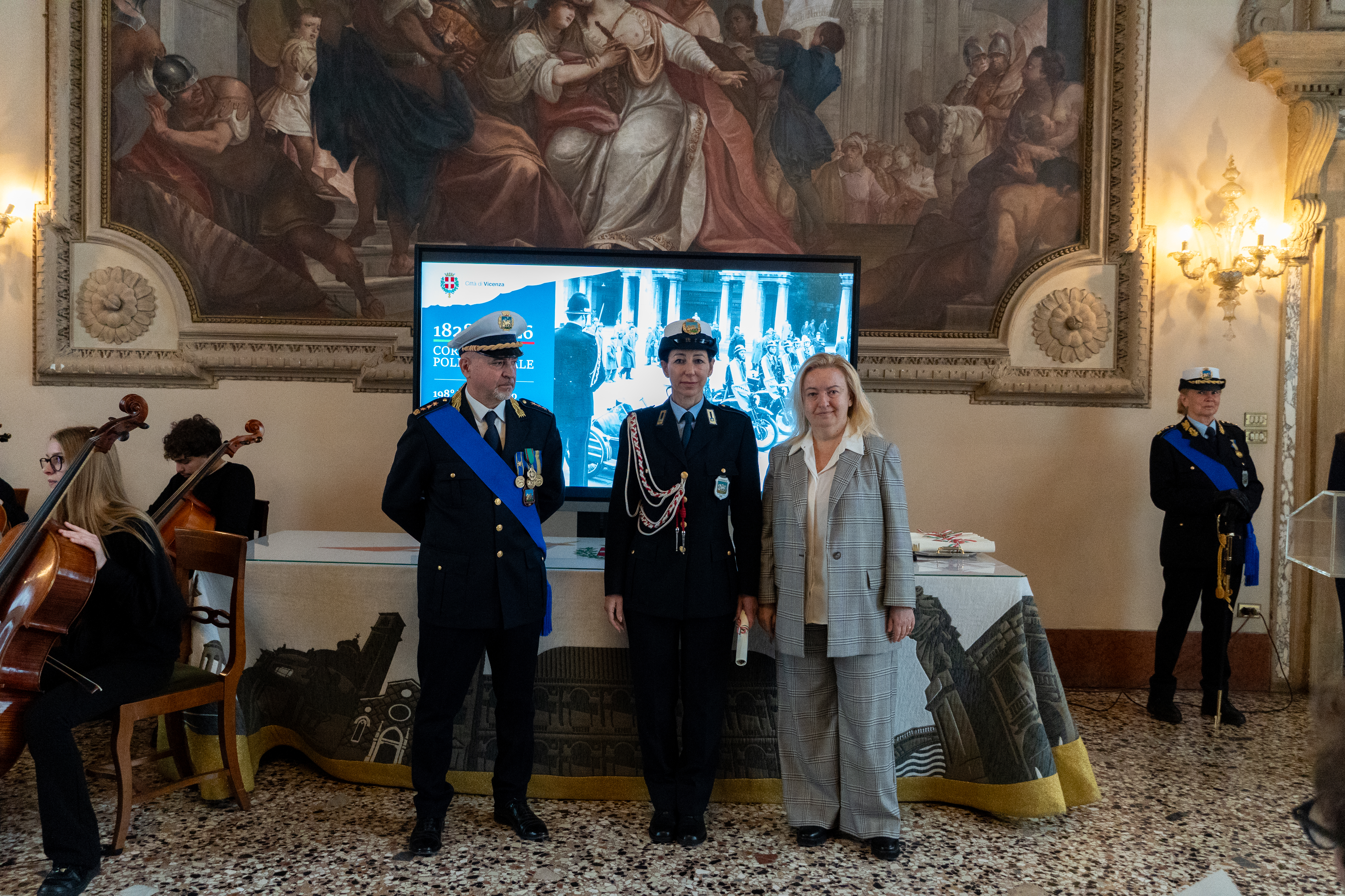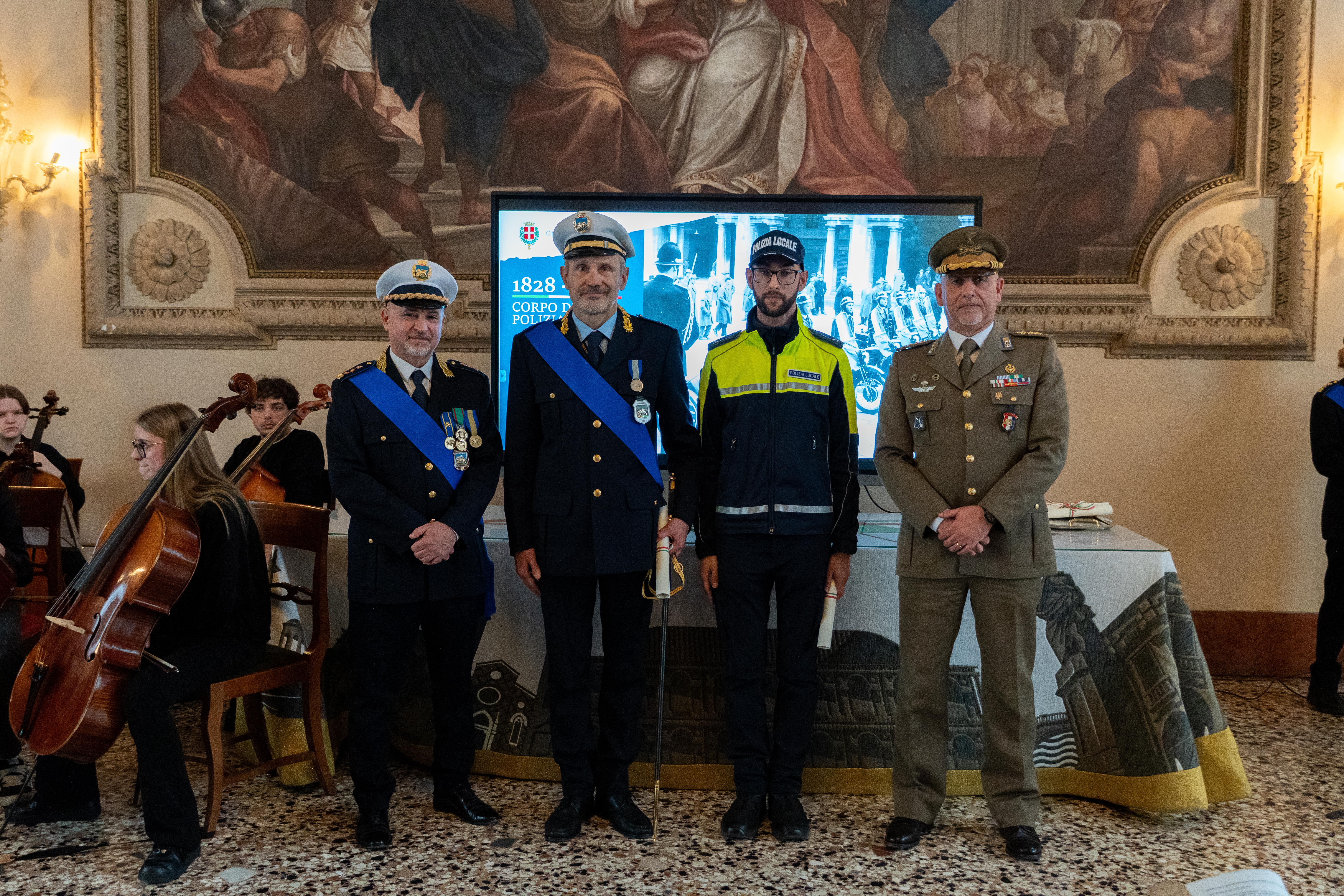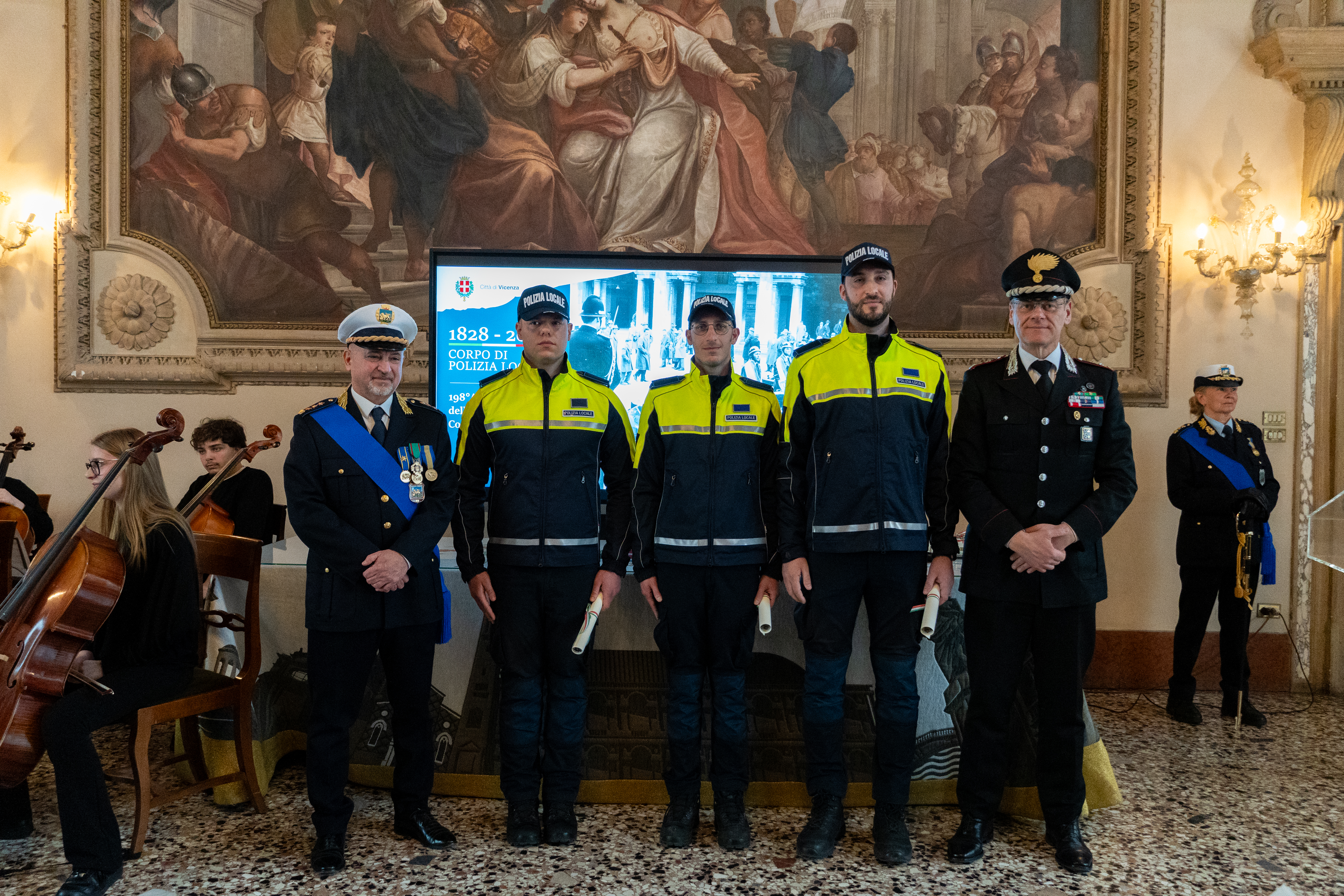 Si è svolta questa mattina, in sala Stucchi a Palazzo Trissino, la cerimonia organizzata in occasione del 198esimo anno di fondazione della Polizia locale, nata nel 1828. Durante l’evento, aperto dall’esecuzione dell’Inno nazionale dell’Ensemble di archi della “Classe di musica insieme” del Liceo musicale Pigafetta, diretto dal Maestro Roberto De Maio, sono stati consegnati gli encomi al personale della polizia locale che si è distinto per avere dimostrato spiccata qualità professionale, spirito di iniziativa e abnegazione.