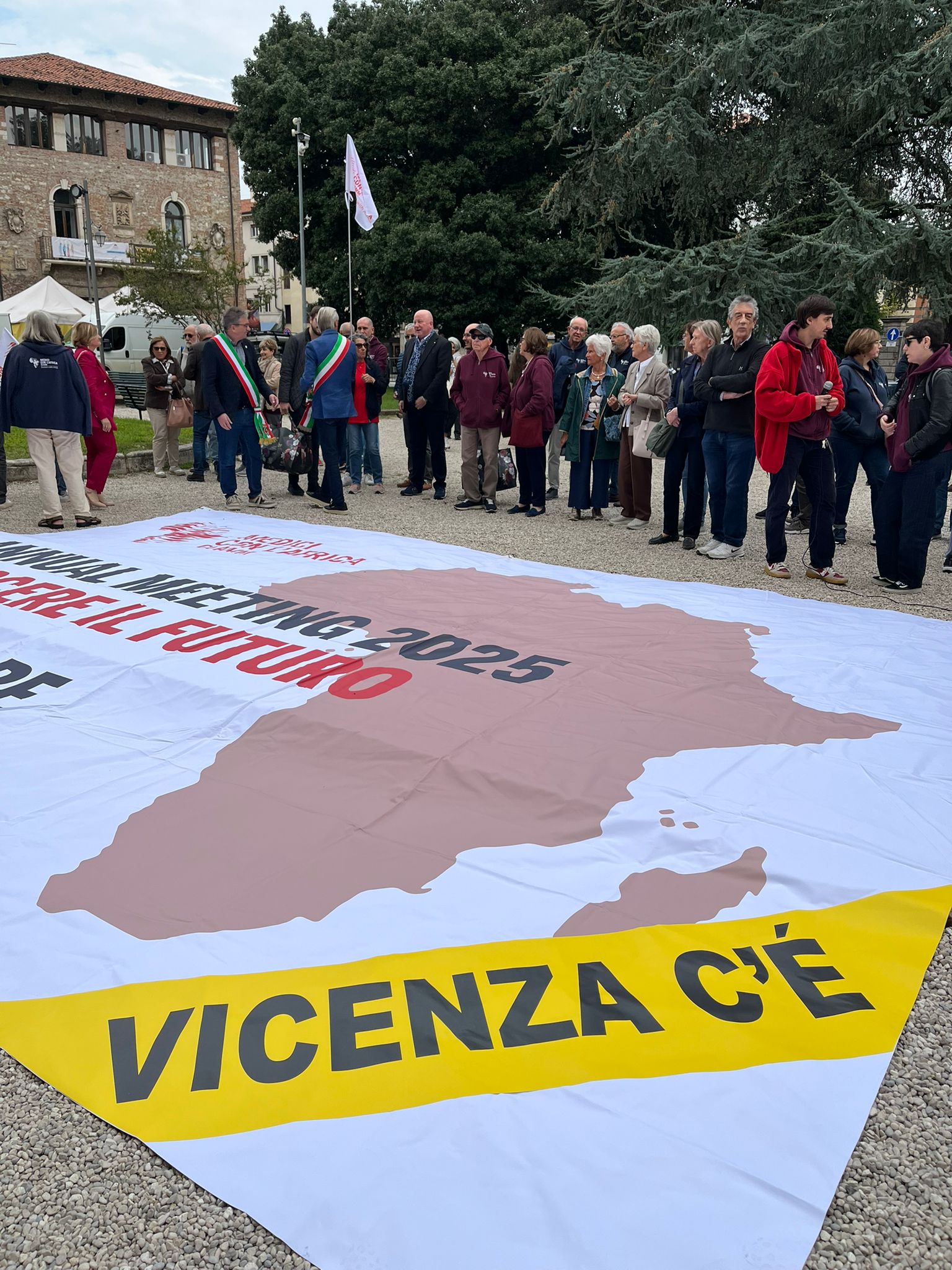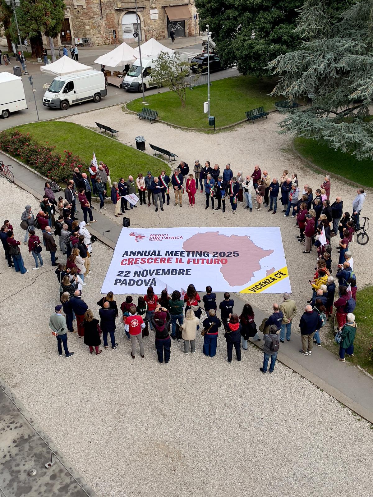 È andato in scena questa mattina, di fronte a Palazzo Chiericati, in piazza Matteotti, un flashmob proposto da Medici con l’Africa Cuamm, per porre l'attenzione sull'Africa, sulla sua salute e sui suoi bisogni, in un momento storico così difficile e complicato. Un gesto semplice, ma simbolico, per mettere al centro l'Africa e invitare tutta la città di Vicenza a partecipare all'Annual meeting del Cuamm, il prossimo 22 novembre. All’evento ha partecipato anche il sindaco di Vicenza Giacomo Possamai, assieme al presidente della Provincia di Vicenza Andrea Nardin, al vicario generale della Diocesi Vicenza don Giampaolo Marta, alla presidente Coldiretti Donne Impresa Vicenza Sonia Bisognin, al direttore di Medici con l’Africa Cuamm don Dante Carraro, diversi amministratori della Provincia, e a circa un centinaio di volontari del Cuamm riuniti a Vicenza da tutta Italia per un meeting che si è svolto in giornata nella Città del Palladio.