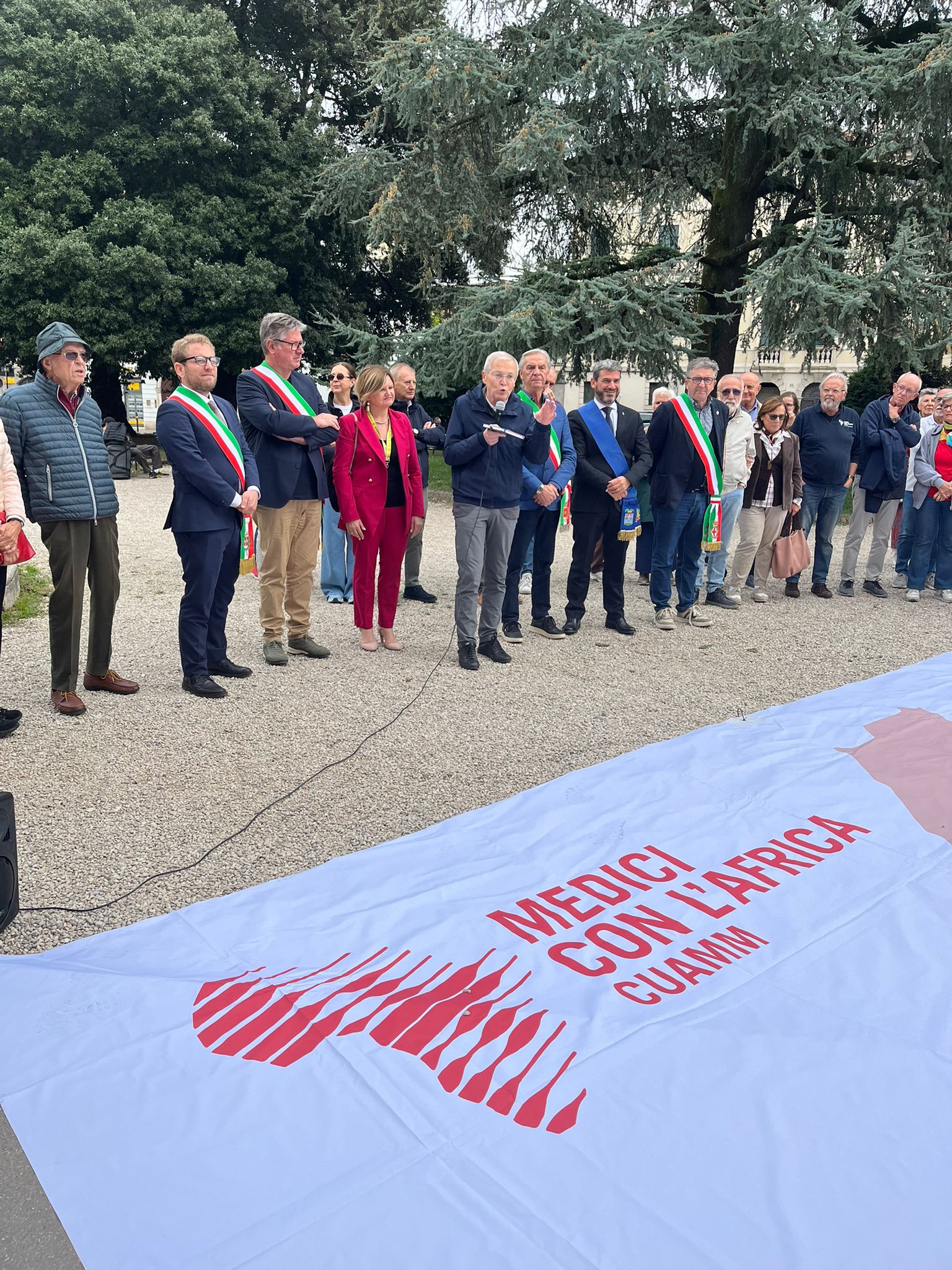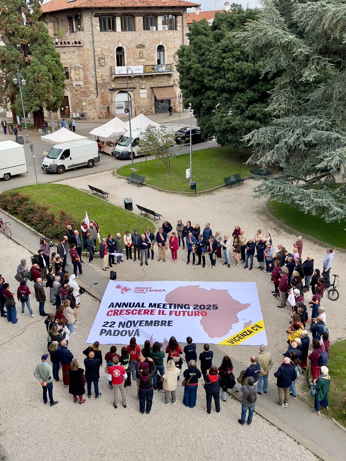 «Ringrazio il Cuamm e i suoi volontari per quello che fanno sempre e per questo momento dal significato straordinario organizzato qui davanti a Palazzo Chiericati in piazza Matteotti – ha esordito il sindaco Possamai -. È importante essere qui perché oggi è concreto il rischio che le guerre tragiche in Palestina e in Ucraina distolgano l'attenzione dal resto del mondo. Distogliere l'attenzione vuol dire anche distogliere i fondi e distogliere la capacità di intervenire. Basti pensare a quello che sta facendo Trump negli Stati Uniti: siamo tanto concentrati sui dazi, ma c’è anche il problema della cancellazione di enti governativi che si occupano di aiuti nel mondo e il totale defunding, ovvero il definanziamento, delle organizzazioni internazionali. Sono tutte decisioni che stanno rendendo sempre più complicato intervenire nei Paesi più poveri e più complicati del mondo. Ecco perché è importante essere qui oggi e partecipare a momenti come questo, così da riportare l'attenzione con forza su queste parti del mondo. La nostra e vostra presenza ha dunque un valore straordinario e per questo ringrazio don Dante, il Cuamm e tutte le sue volontarie e i suoi volontari perché il lavoro che fanno è oggi ancora più prezioso».