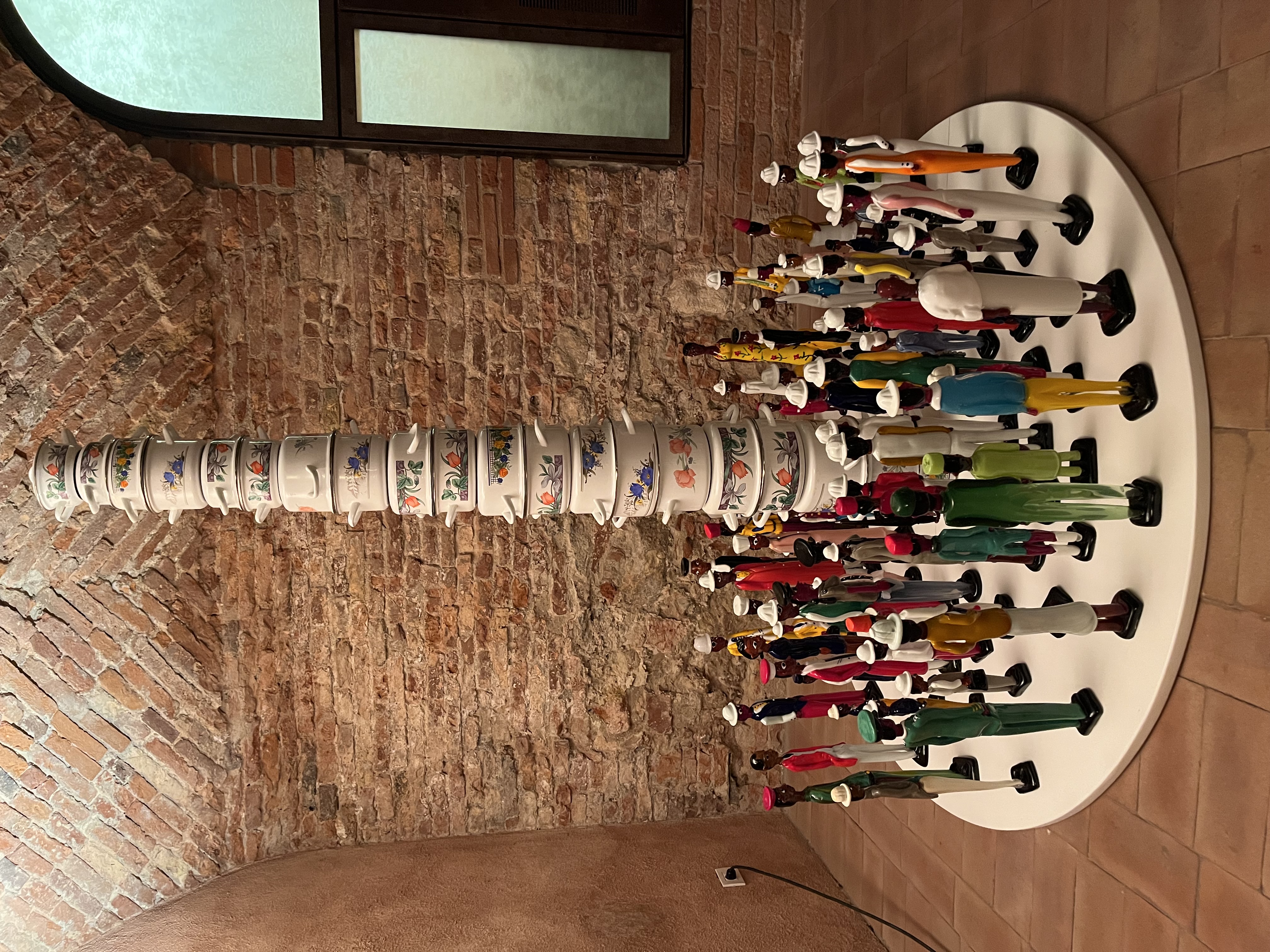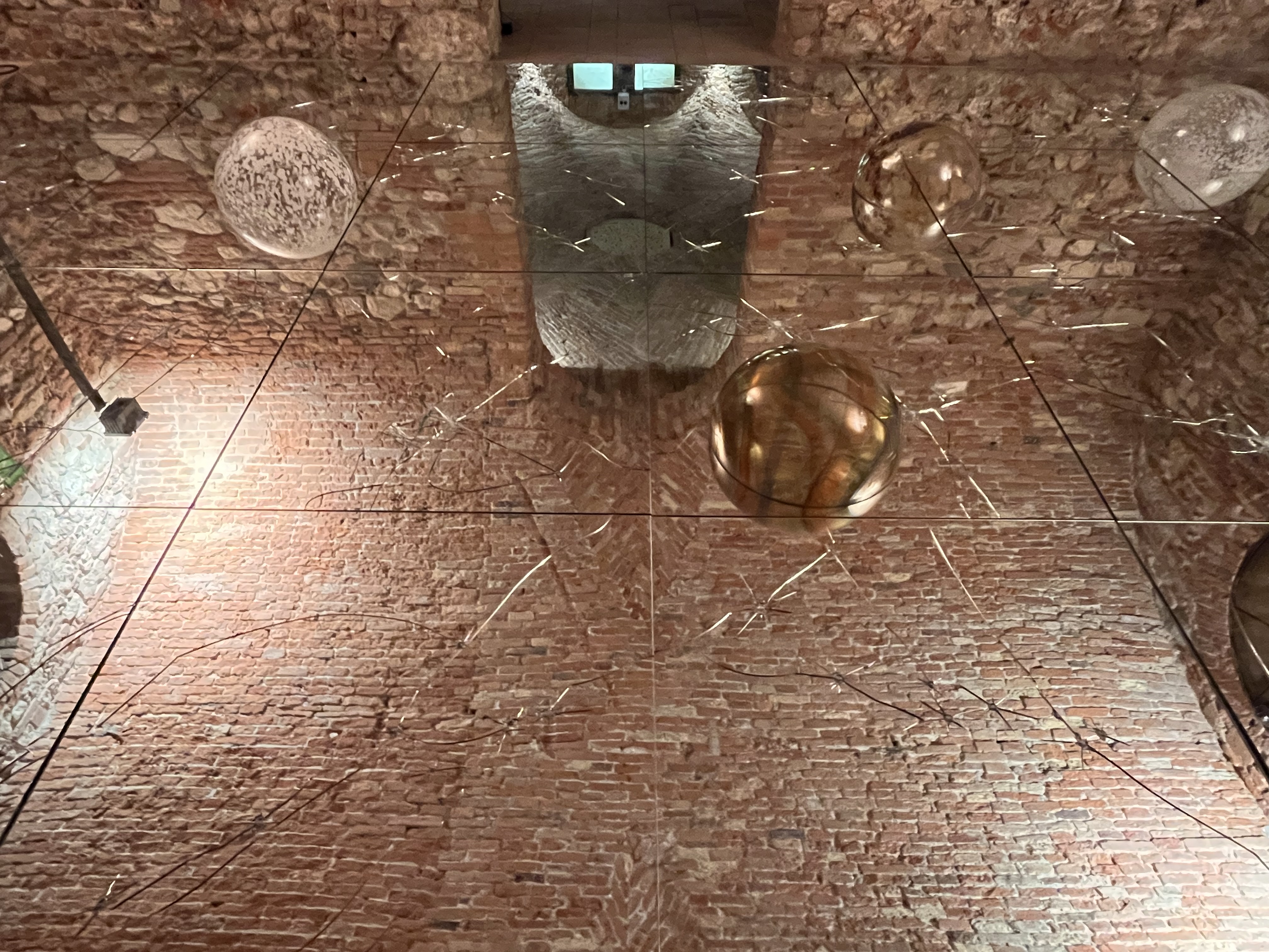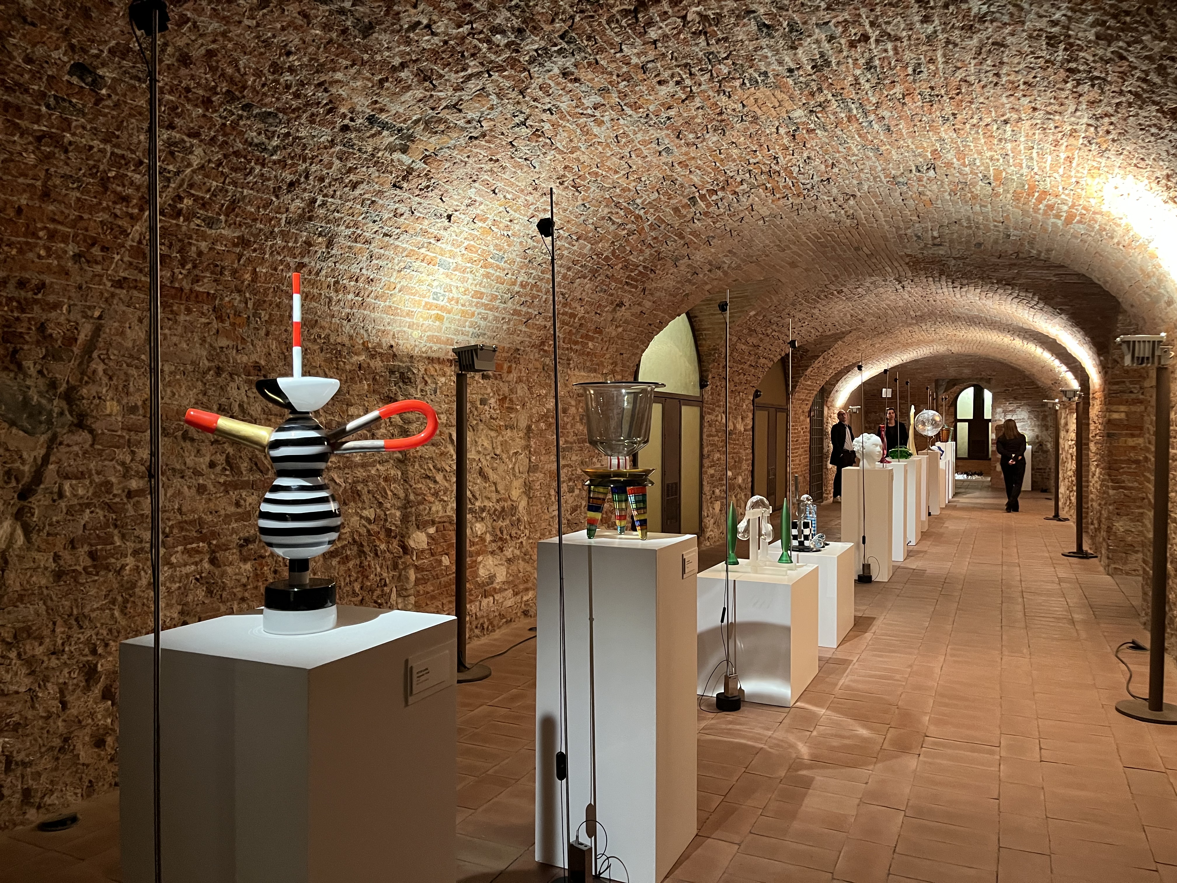 Tra il piano terra, il portico e l’ipogeo di Palazzo Thiene, si snoda un itinerario sorprendente e costantemente sospeso tra dimensione globale e radici intimamente locali. In mostra non solo per l’assoluta centralità dell’eccellenza dei grandi maestri vetrai di Berengo Studio, a Murano, ma anche per la presenza di artisti squisitamente veneti come Monica Bonvicini, Massimo Lunardon, cui si aggiunge chi, come la modenese Ornella Cardillo ha però scelto Venezia come città d’adozione. Un percorso espositivo che incanta per la presenza della più prestigiosa scena artistica mondiale contemporanea: figure di grande statura nazionale quali Emilio Isgrò, Alfredo Pirri, Michelangelo Pistoletto, e nomi internazionali del calibro di: Ai Weiwei, Vanessa Beecroft, Tony Cragg, Koo Jeong A, Marya Kazoun, Jaume Plensa, Laure Prouvost, Thomas Schütte, Sean Scully, Peter Shire, Pascale Marthine Tayou , Koen Vanmechelen, Robert Wilson, Erwin Wurm.