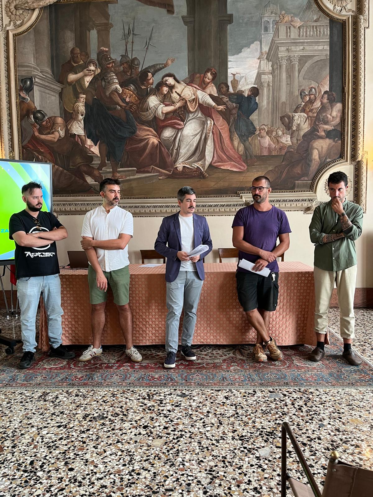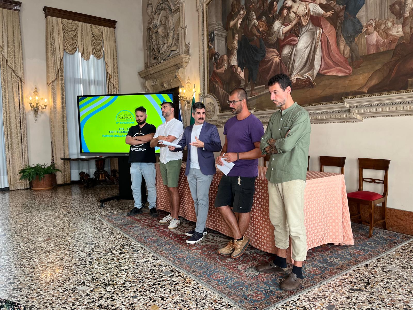 A presentare oggi il programma della seconda edizione di Hangar Palooza sono gli organizzatori del festival: l’assessore alle politiche giovanili Leonardo Nicolai per il Comune di Vicenza e i rappresentanti del Coordinamento Festival di Vicenza Marco Furegon e Marco Bari del Jamrock, Matteo Graser del Lumen Festival e Andrea Comparin di Weekender Festival.