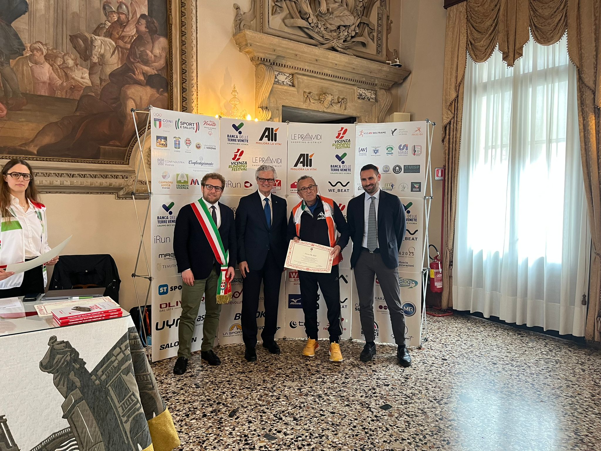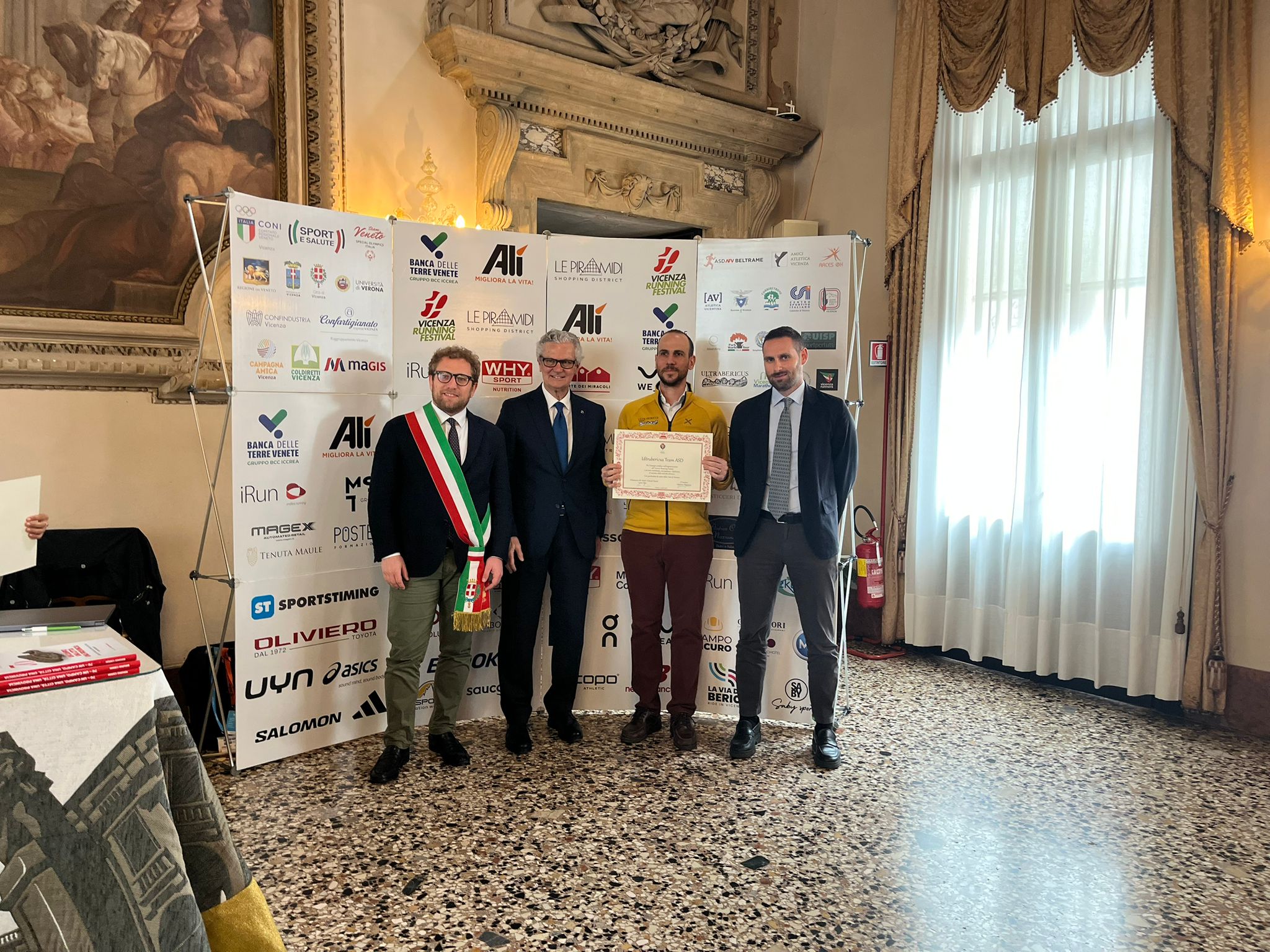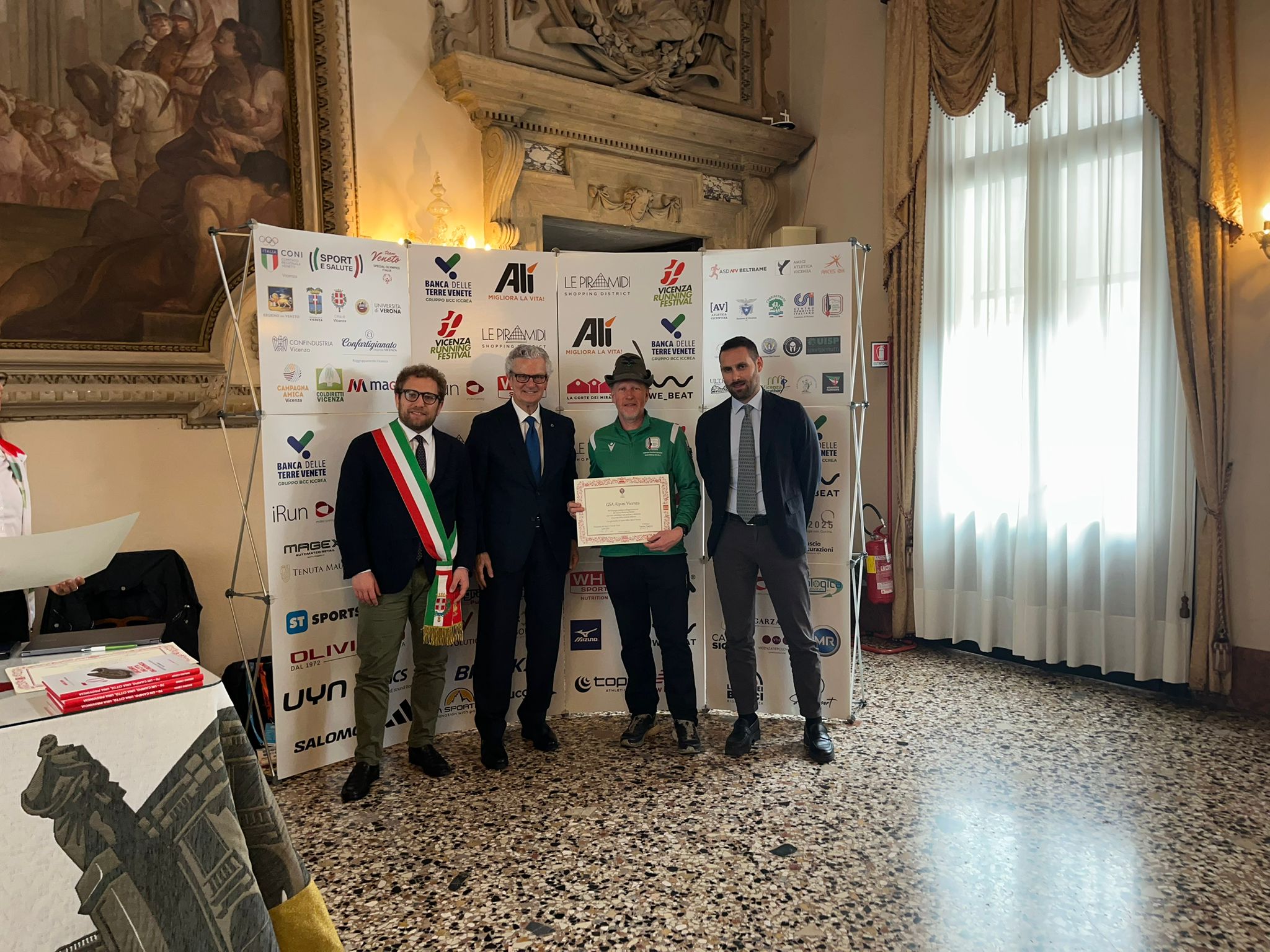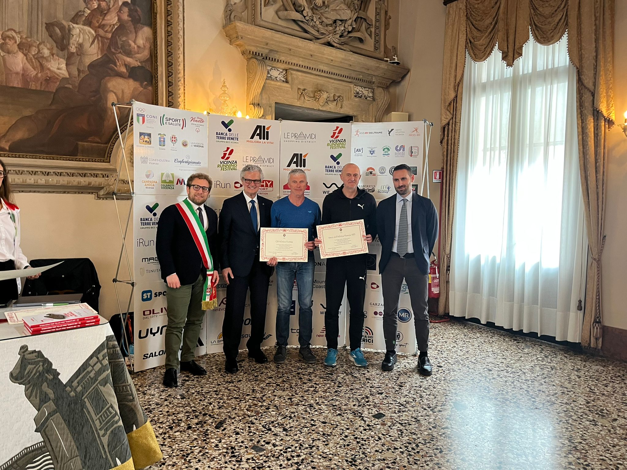 Nella Sala degli Stucchi i rispettivi portavoce, accompagnati da Enrico Pollini, direttore tecnico del Festival, Barbara Lah, presidente di Atletica Vicentina, e Matteo Meggiolaro, Presidente di Ultrabericus Team, hanno ricevuto speciali pergamene dal sindaco di Vicenza Giacomo Possamai e dall’assessore allo sport e ai grandi eventi Leone Zilio.
