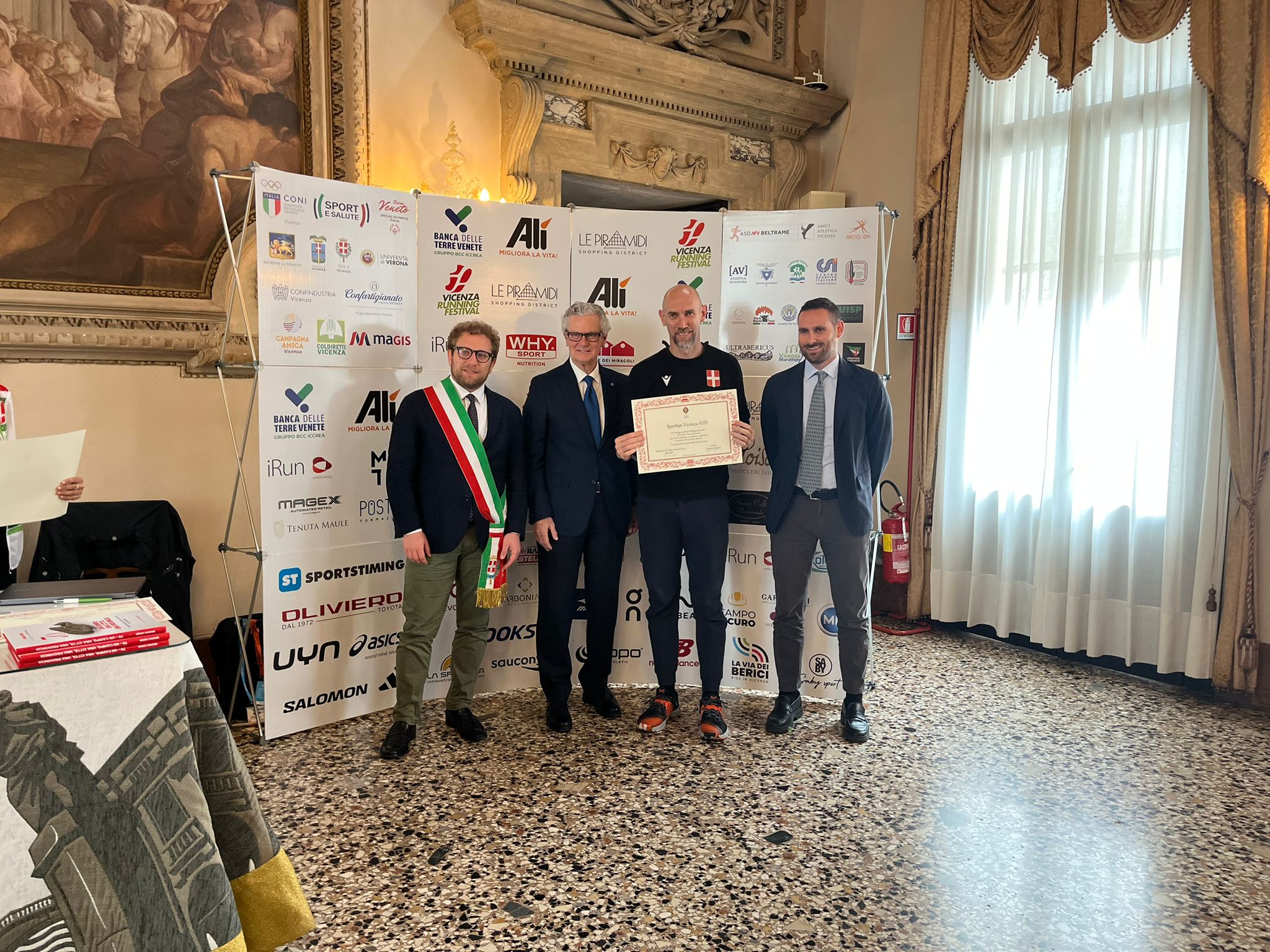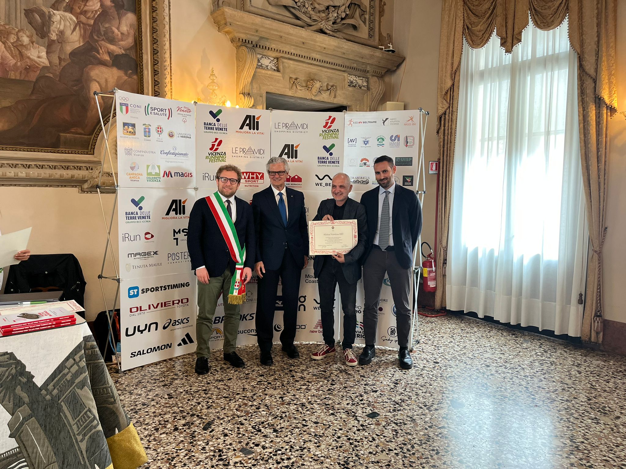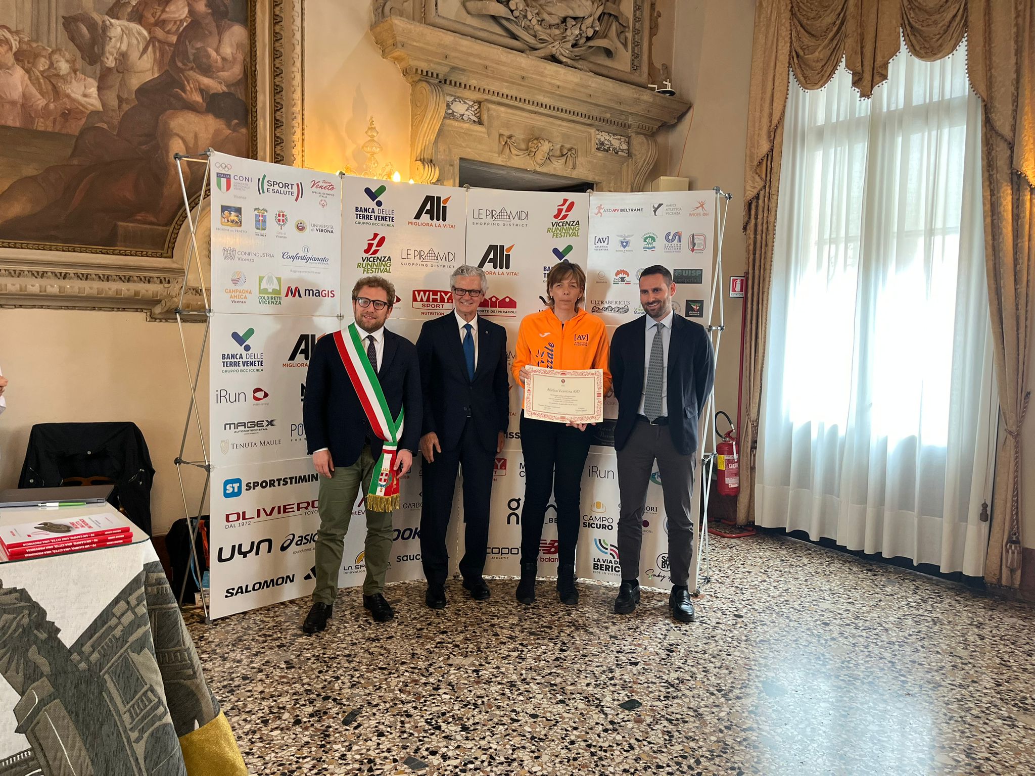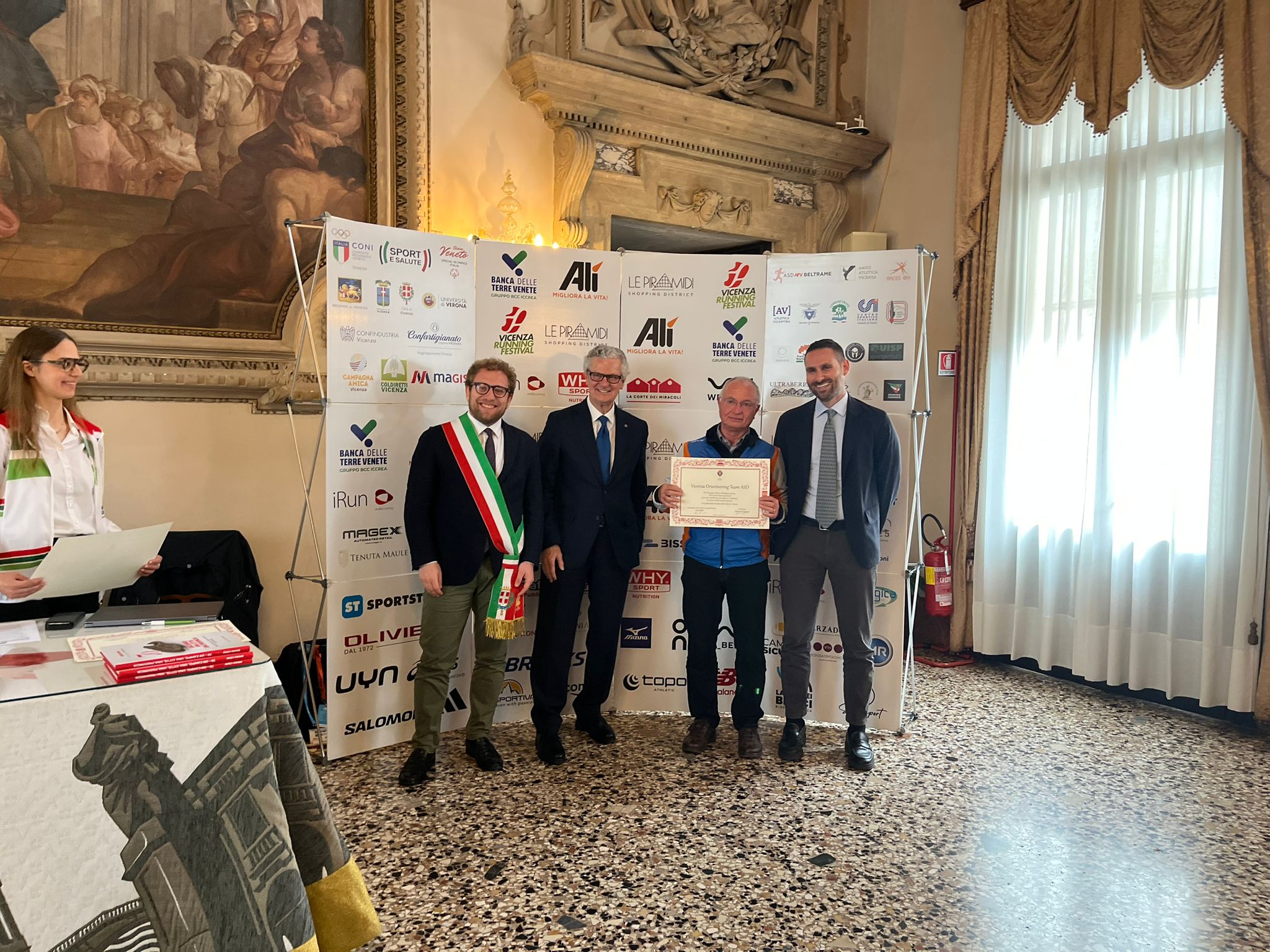 Nella Sala degli Stucchi i rispettivi portavoce, accompagnati da Enrico Pollini, direttore tecnico del Festival, Barbara Lah, presidente di Atletica Vicentina, e Matteo Meggiolaro, Presidente di Ultrabericus Team, hanno ricevuto speciali pergamene dal sindaco di Vicenza Giacomo Possamai e dall’assessore allo sport e ai grandi eventi Leone Zilio.
