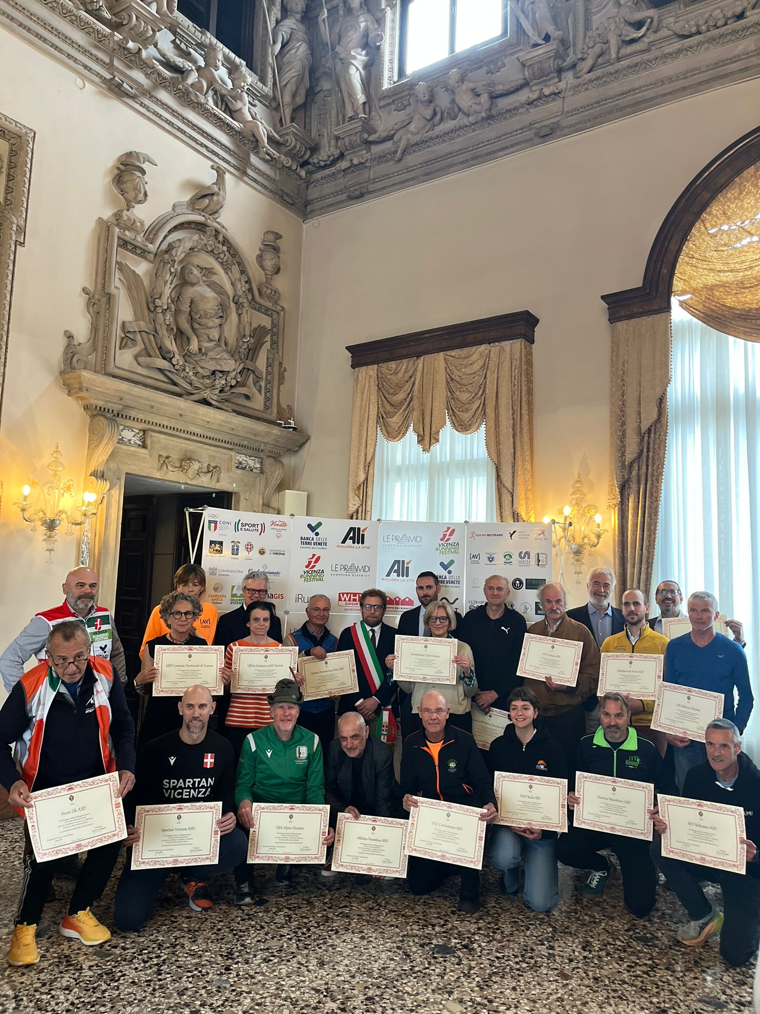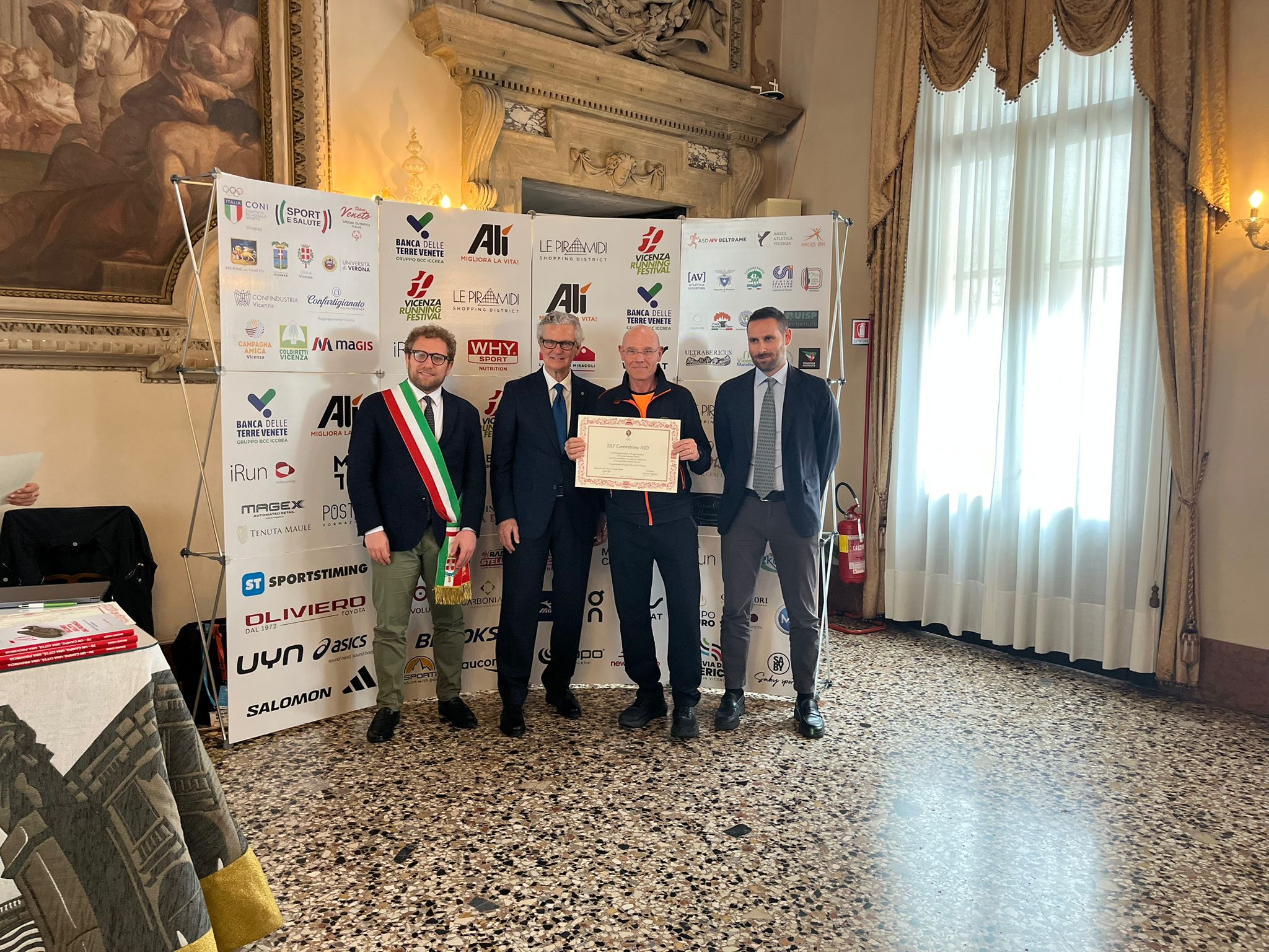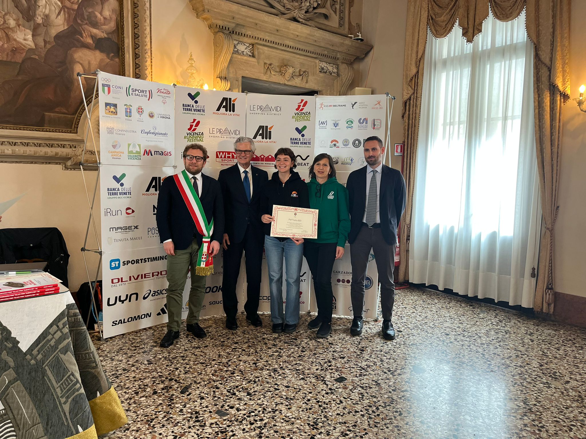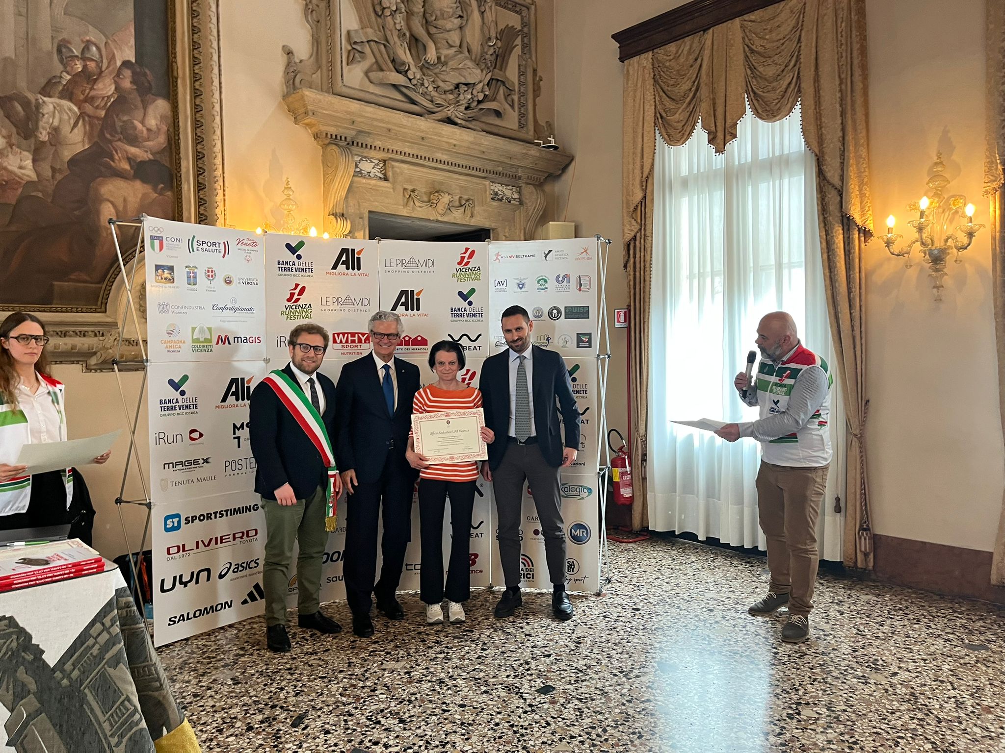 Nella Sala degli Stucchi i rispettivi portavoce, accompagnati da Enrico Pollini, direttore tecnico del Festival, Barbara Lah, presidente di Atletica Vicentina, e Matteo Meggiolaro, Presidente di Ultrabericus Team, hanno ricevuto speciali pergamene dal sindaco di Vicenza Giacomo Possamai e dall’assessore allo sport e ai grandi eventi Leone Zilio.