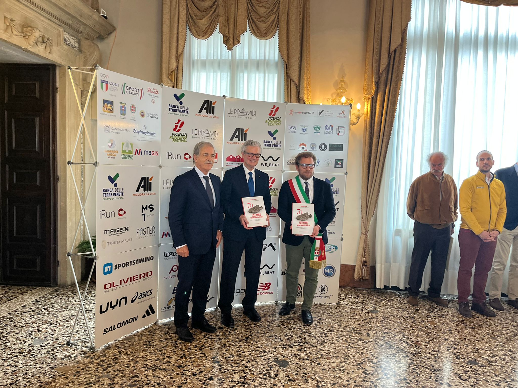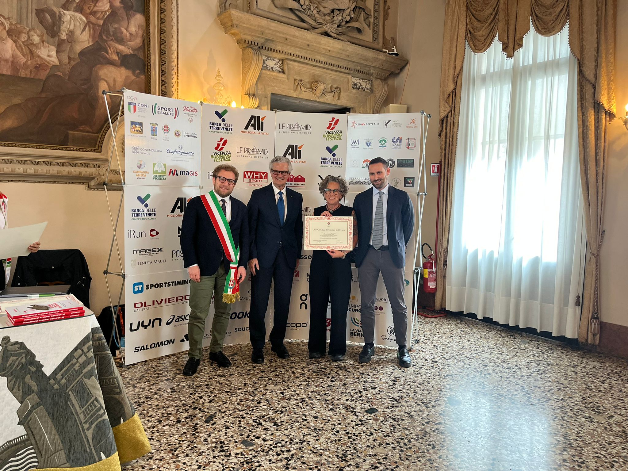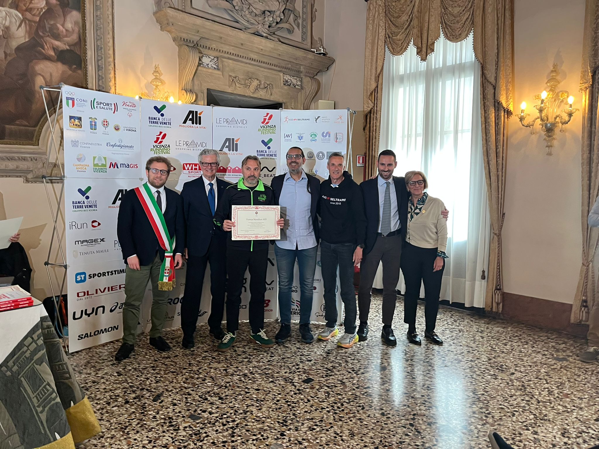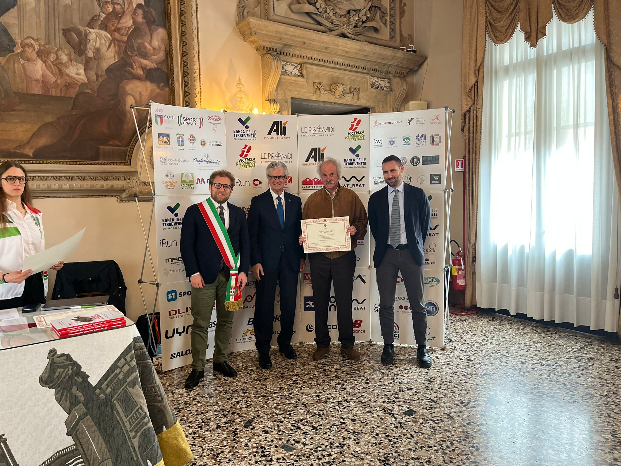 Nella Sala degli Stucchi i rispettivi portavoce, accompagnati da Enrico Pollini, direttore tecnico del Festival, Barbara Lah, presidente di Atletica Vicentina, e Matteo Meggiolaro, Presidente di Ultrabericus Team, hanno ricevuto speciali pergamene dal sindaco di Vicenza Giacomo Possamai e dall’assessore allo sport e ai grandi eventi Leone Zilio.