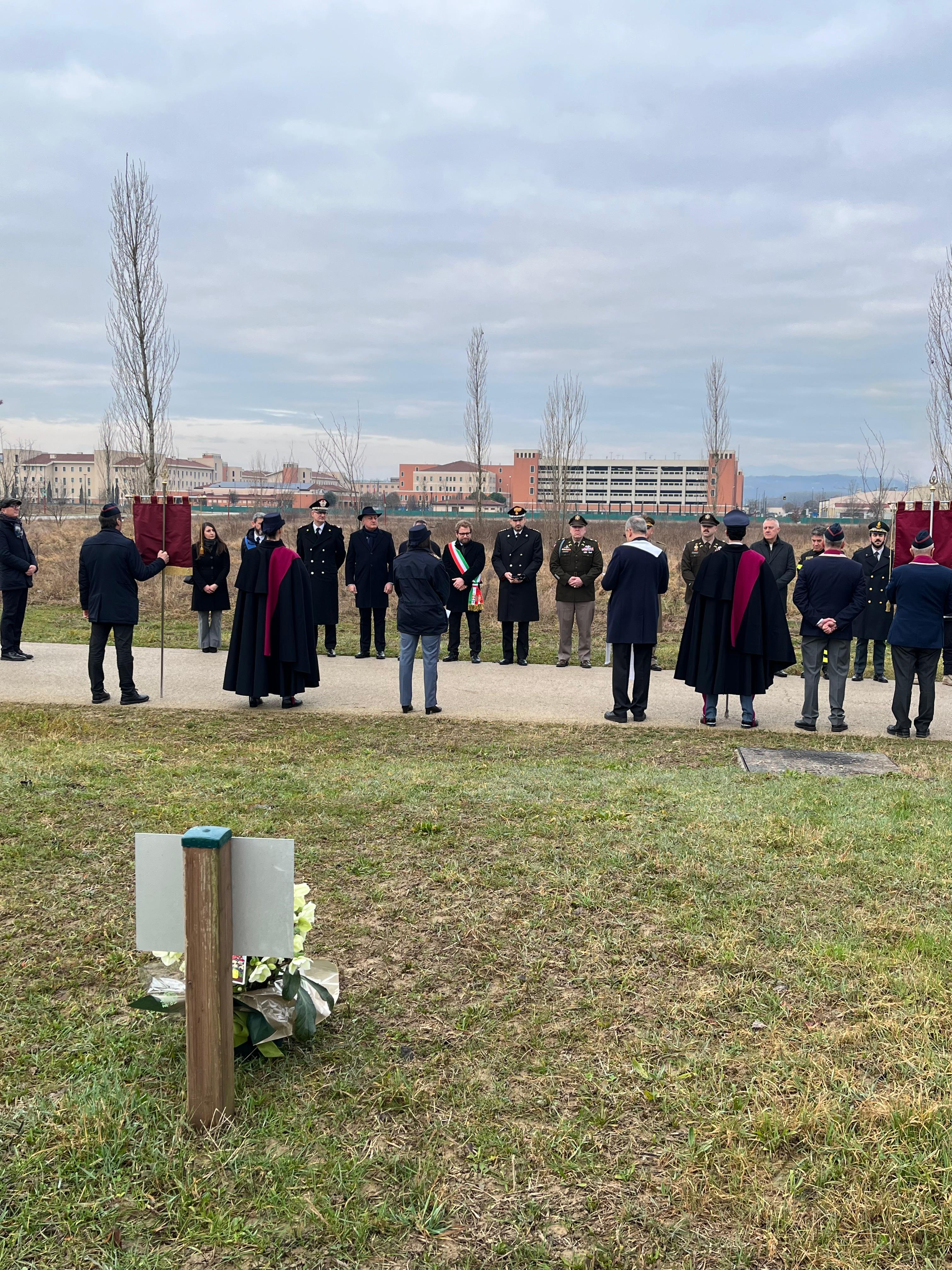 La breve cerimonia si è tenuta dove due anni fa per ricordarlo è stato piantato un albero ed è stata posata una targa.