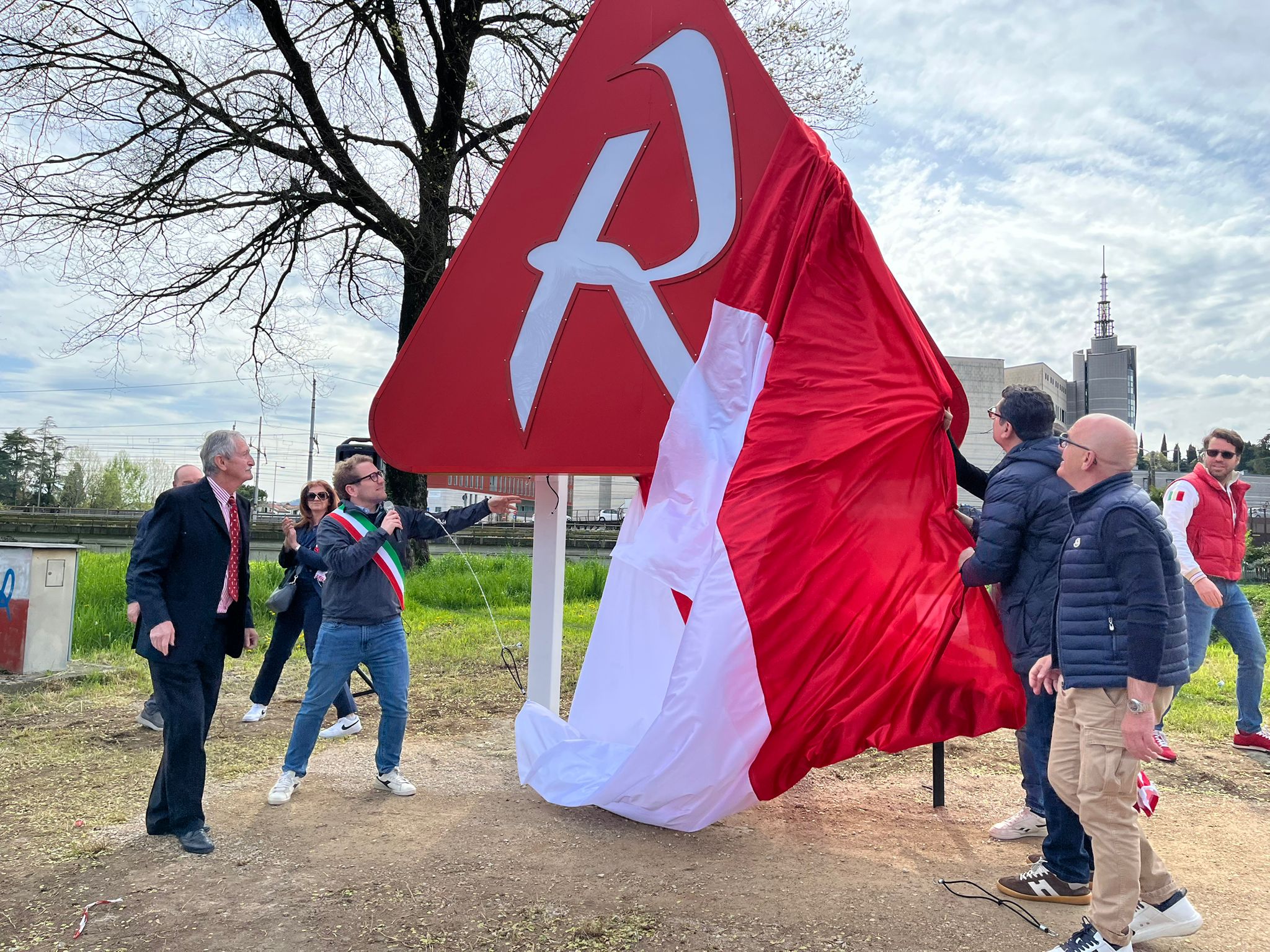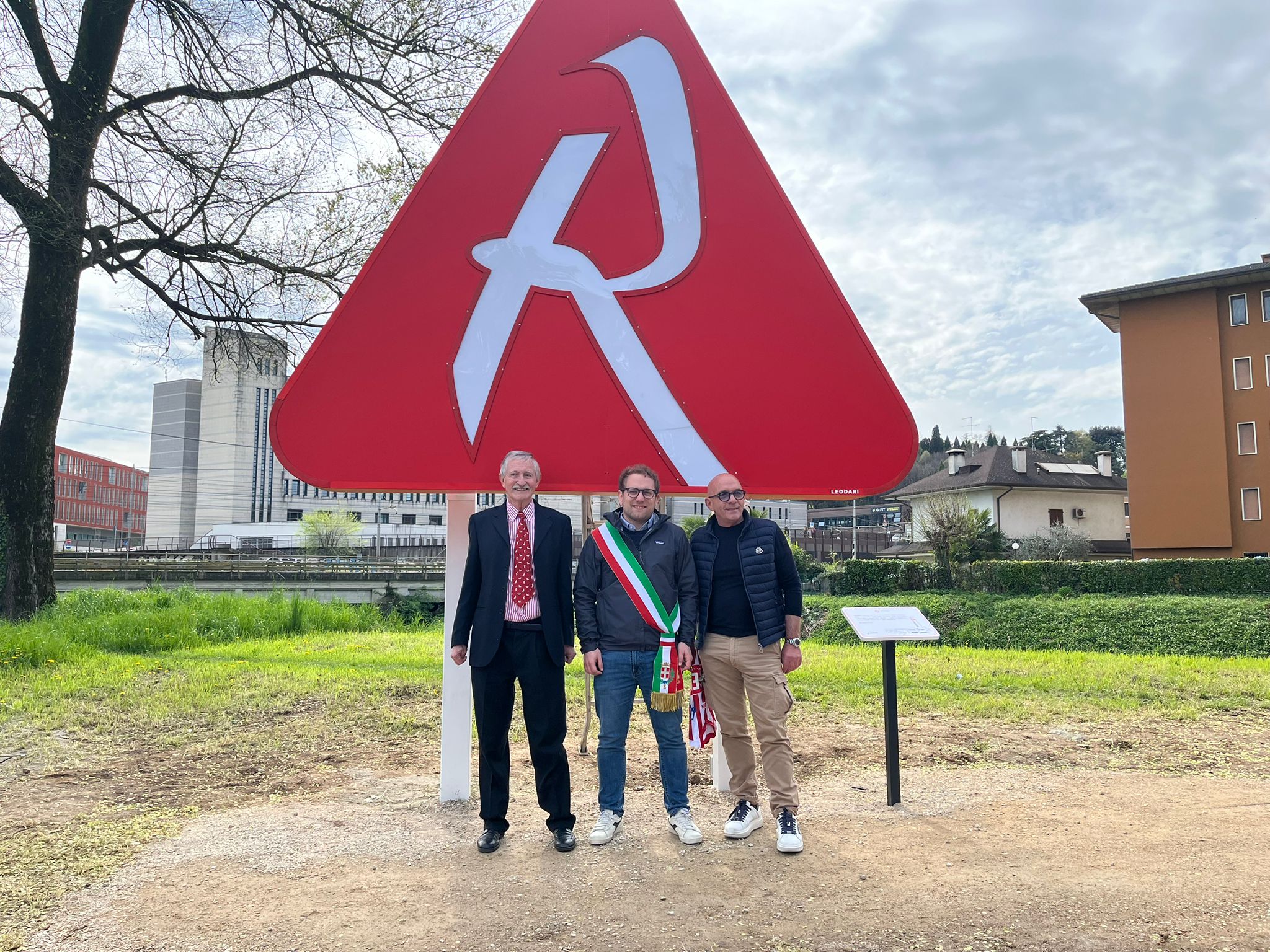 È stata inaugurata questo pomeriggio, in zona Stadio, poco prima della partita Vicenza - Brescia, la storica “R” dell’ex Cotonificio Rossi, recentemente restaurata e installata all’altezza della rotatoria di viale dello Stadio e via Bassano,