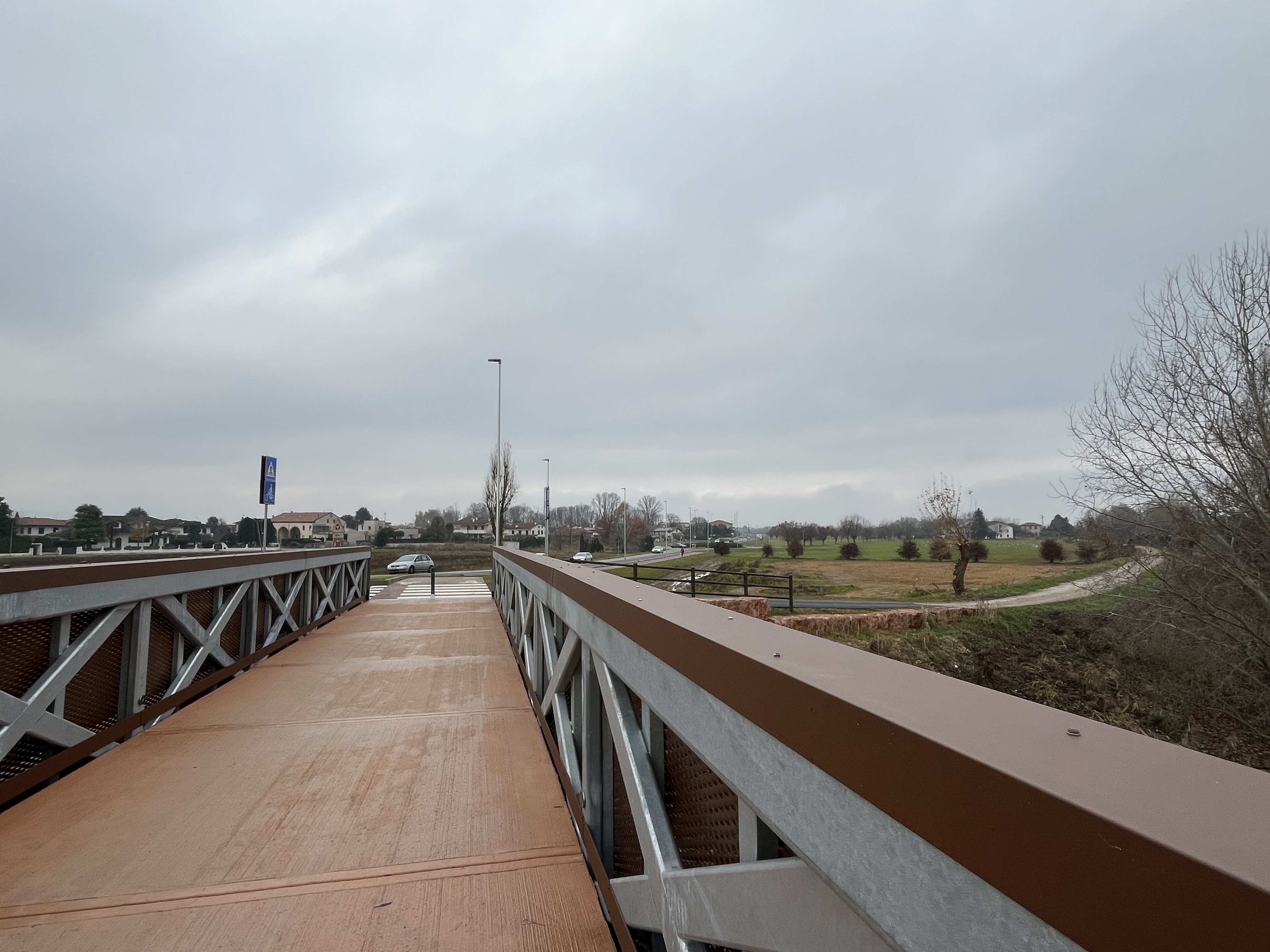 Il percorso, che consentirà ai ciclisti di percorrere il tragitto in tutta sicurezza ha previsto anche la realizzazione di una passerella sul Bacchiglione all’altezza del ponte del Marchese.