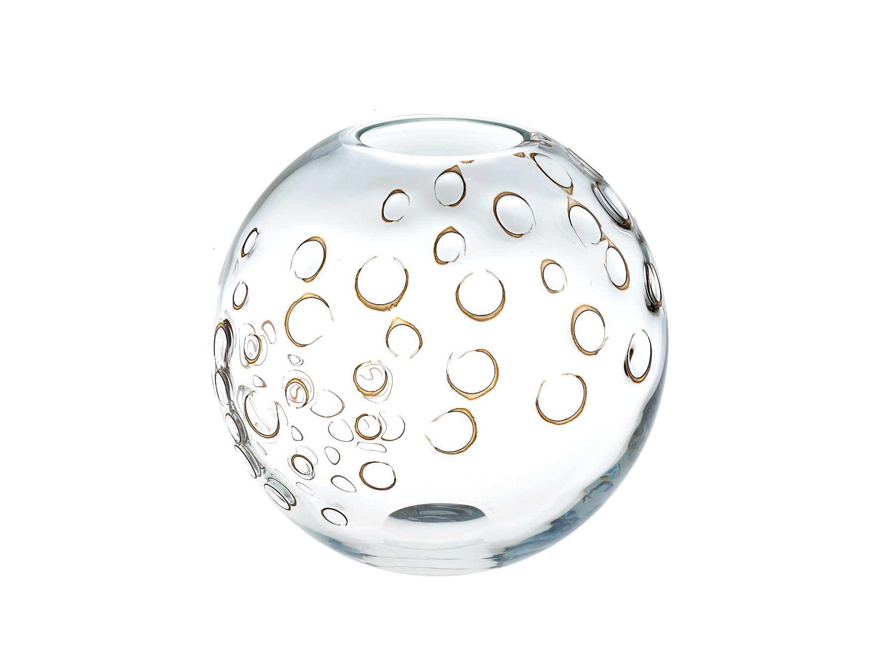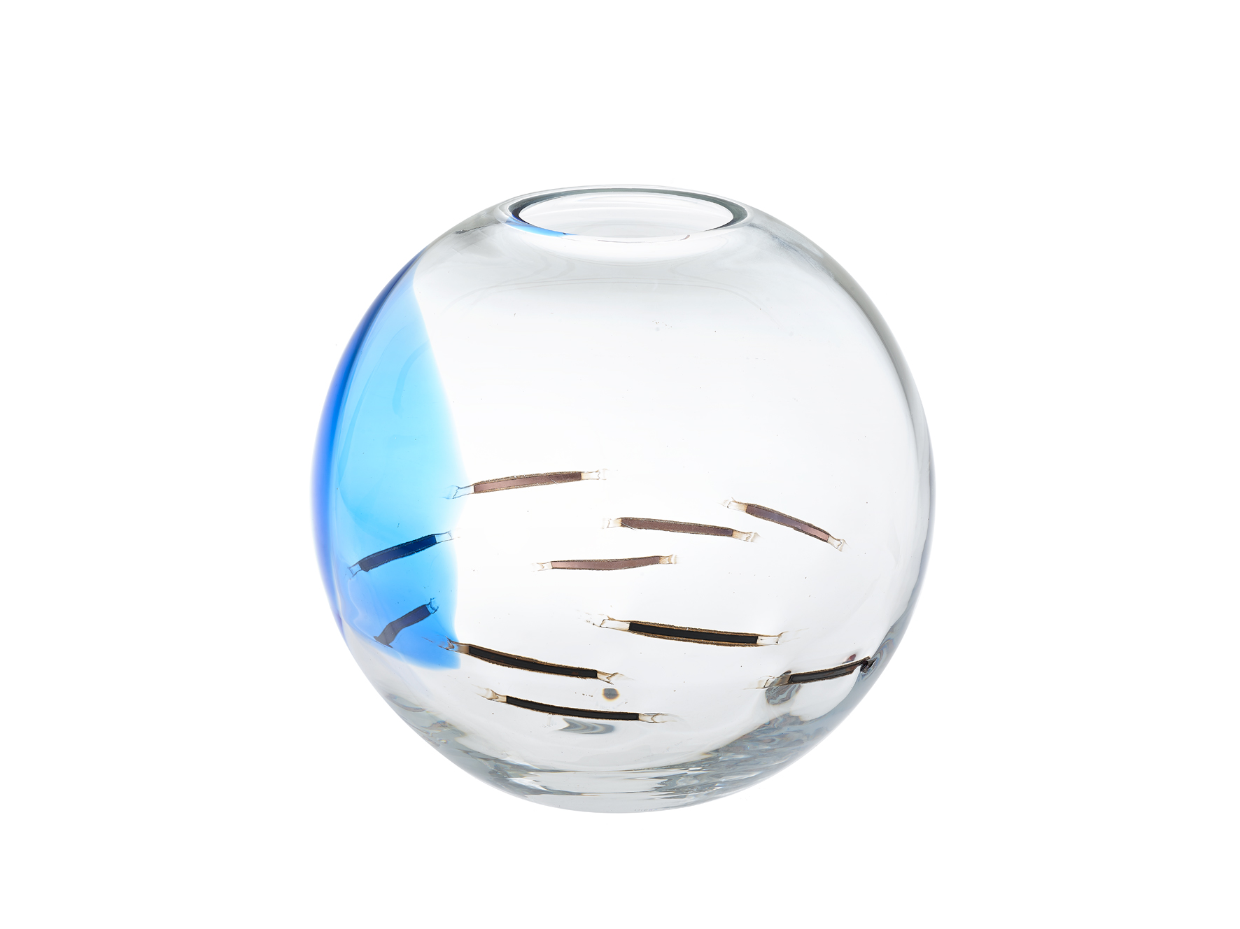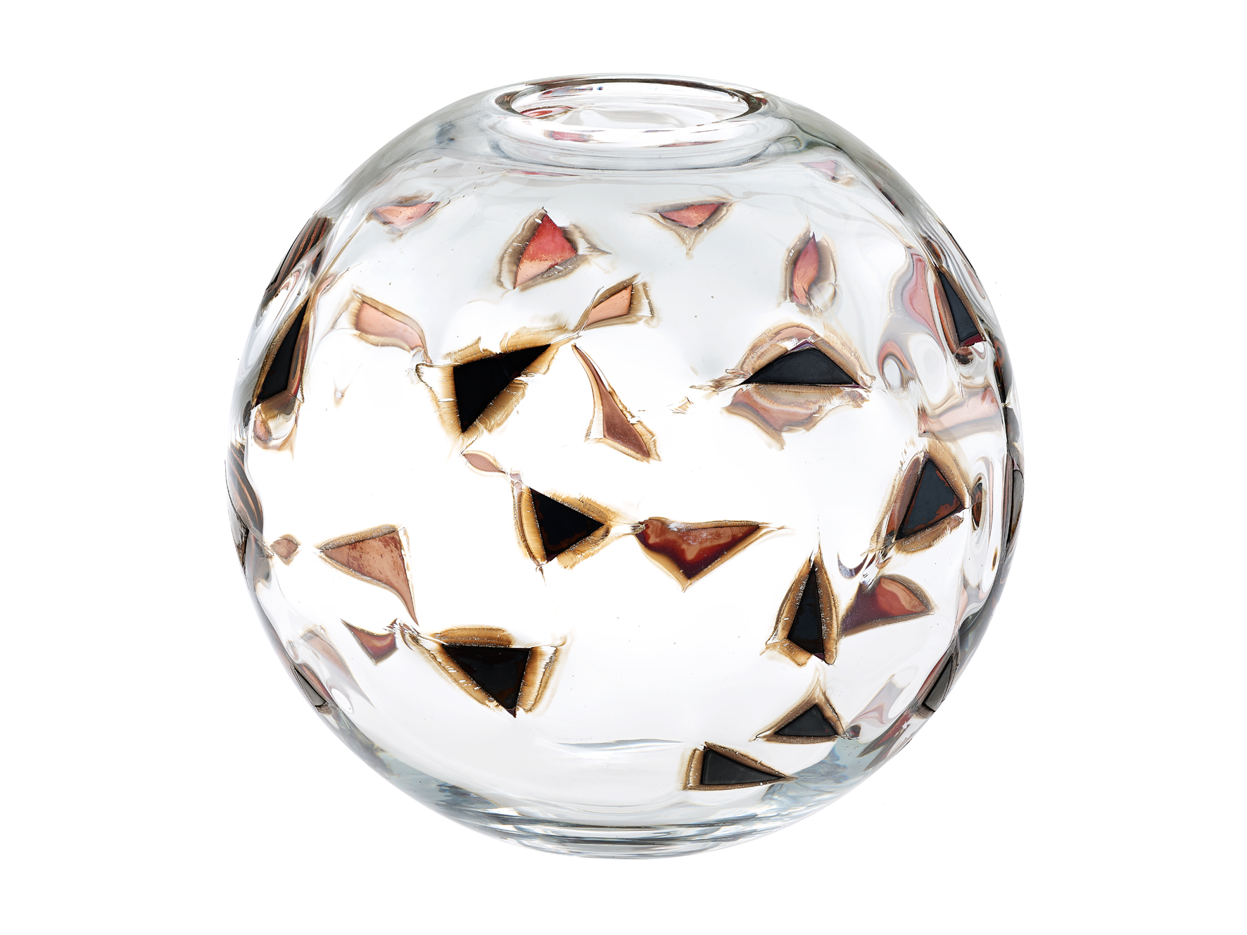 La forma sferica, nella sua semplicità, racchiude la complessa difficoltà di far convivere un metallo (il rame) con le tensioni del vetro soffiato a bocca con tecniche antiche sia durante le fasi di lavorazione, ad elevate temperature della massa vetrosa, e sia durante le tecniche di raffreddamento.