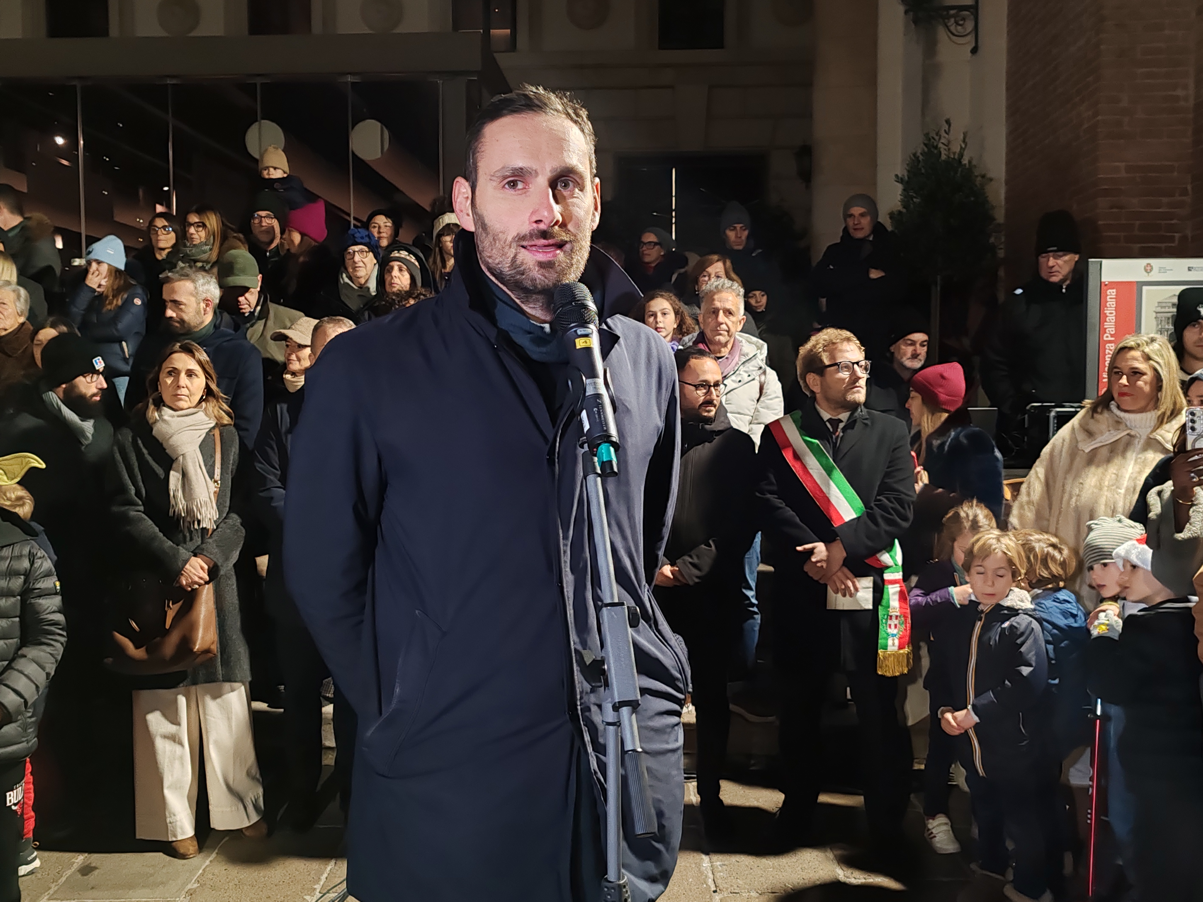 L’assessore Zilio ha quindi invitato i bambini e il pubblico presente a partecipare al conto alla rovescia per l’accensione del grande albero.