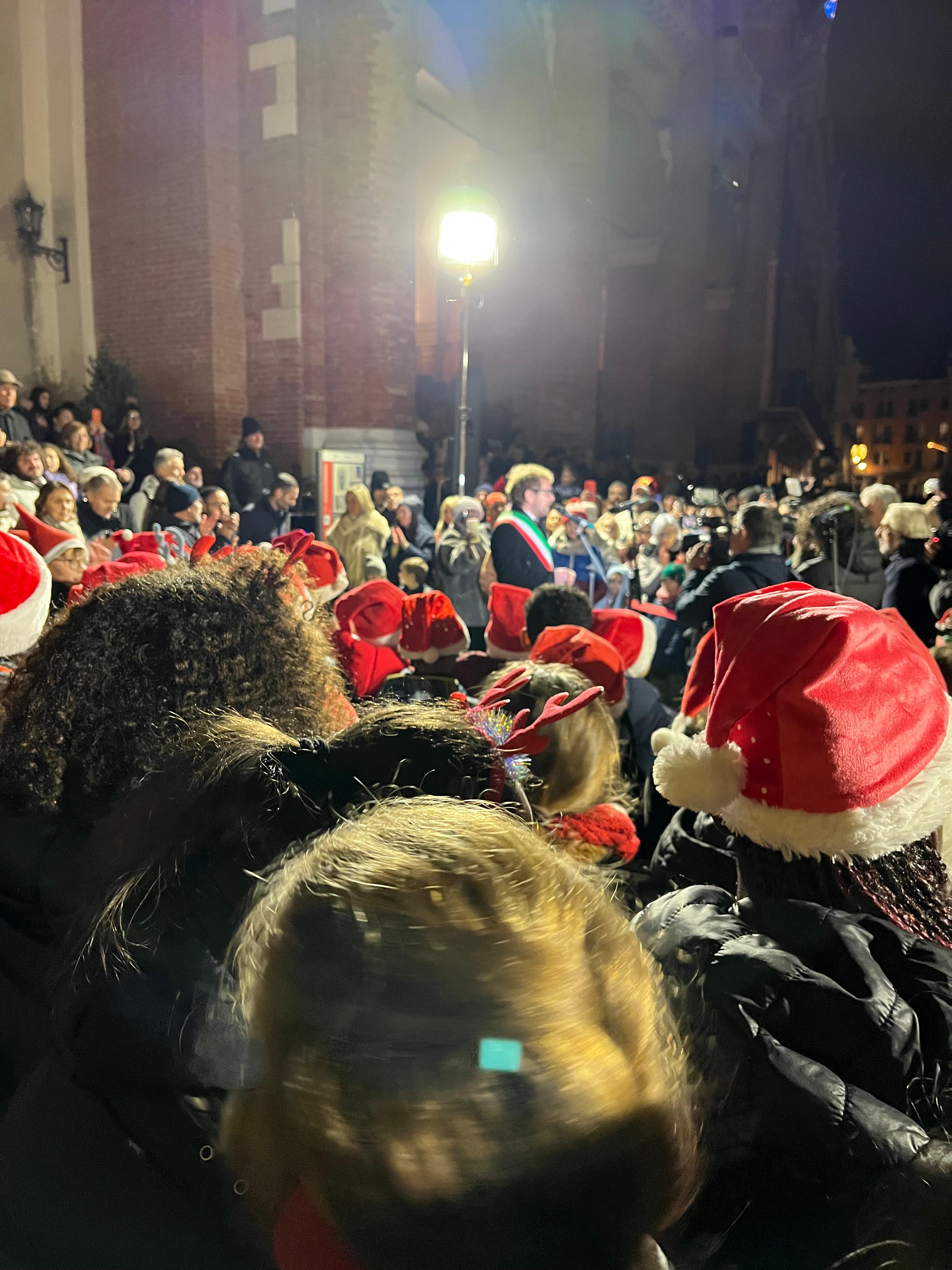 Oltre un centinaio di bambini e ragazzi delle scuole della città hanno animato la cerimonia di accensione dell’albero e delle luminarie questa sera in piazza dei Signori intonando canti natalizi.