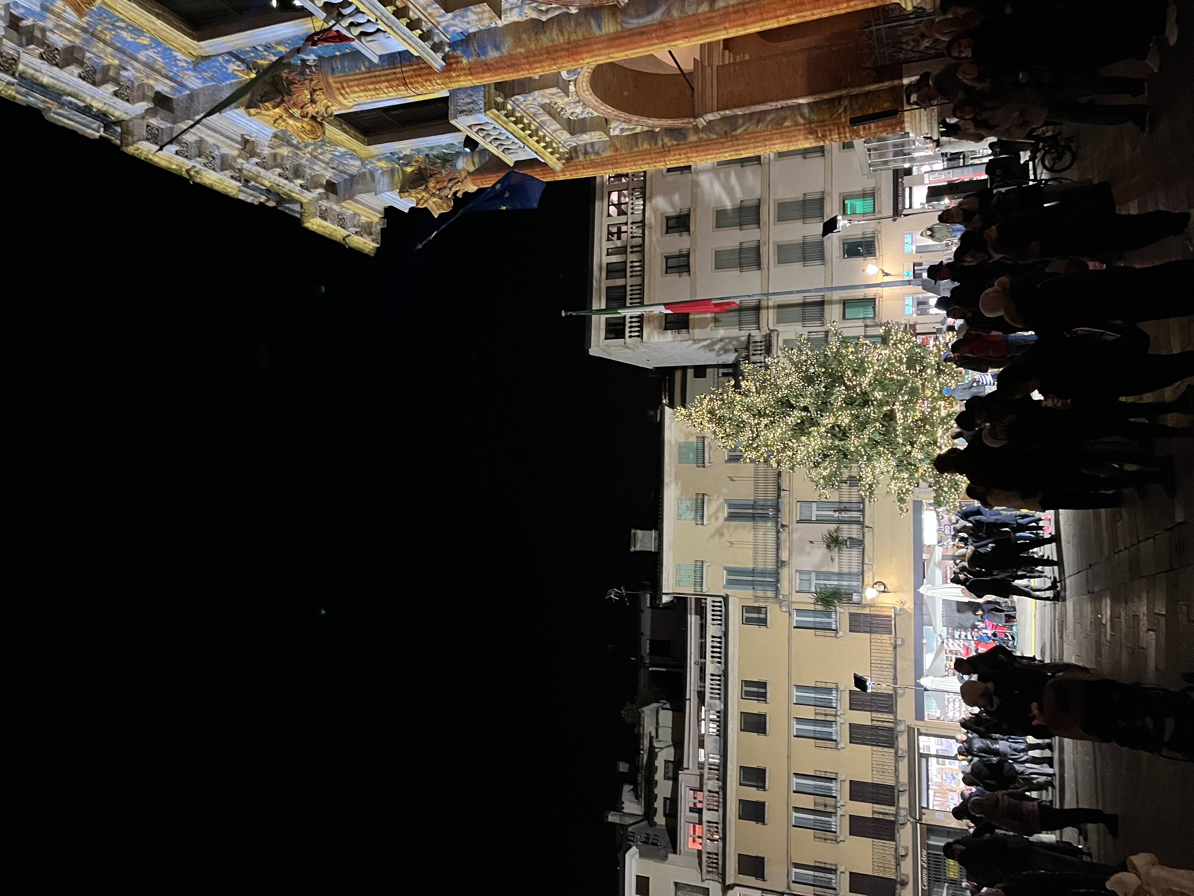 Ed infine la piazza si è accesa di luce con l’anteprima del videomapping Faber Aura "L’Oro e le Stelle" che si potrà vedere fino al 6 gennaio, dalle 17.30 alle 23.30, per otto minuti ogni mezz’ora: dalle 22.30 alle 23.30 lo spettacolo sarà privo di audio. Gli edifici della piazza saranno illuminati dalle 17.