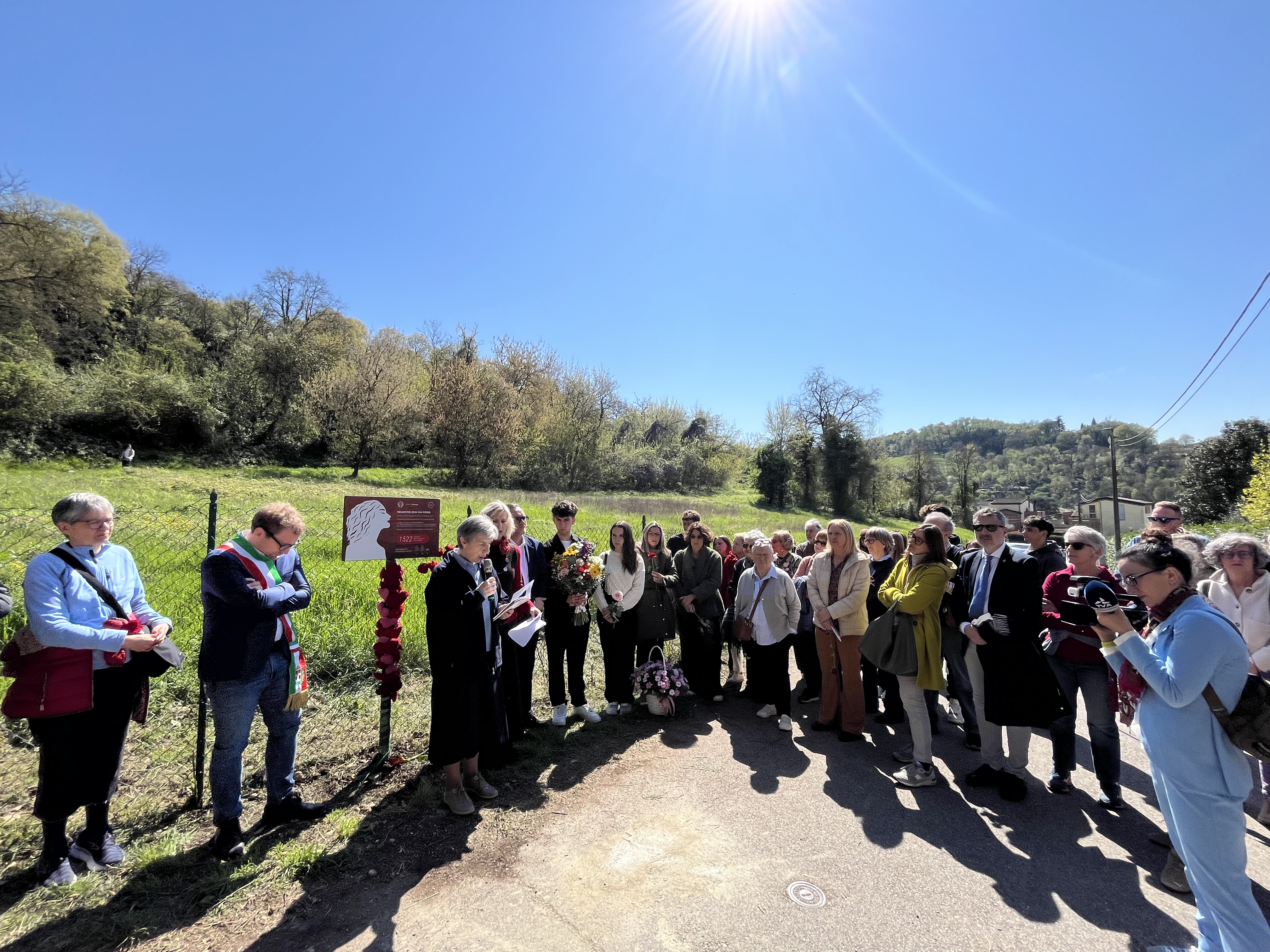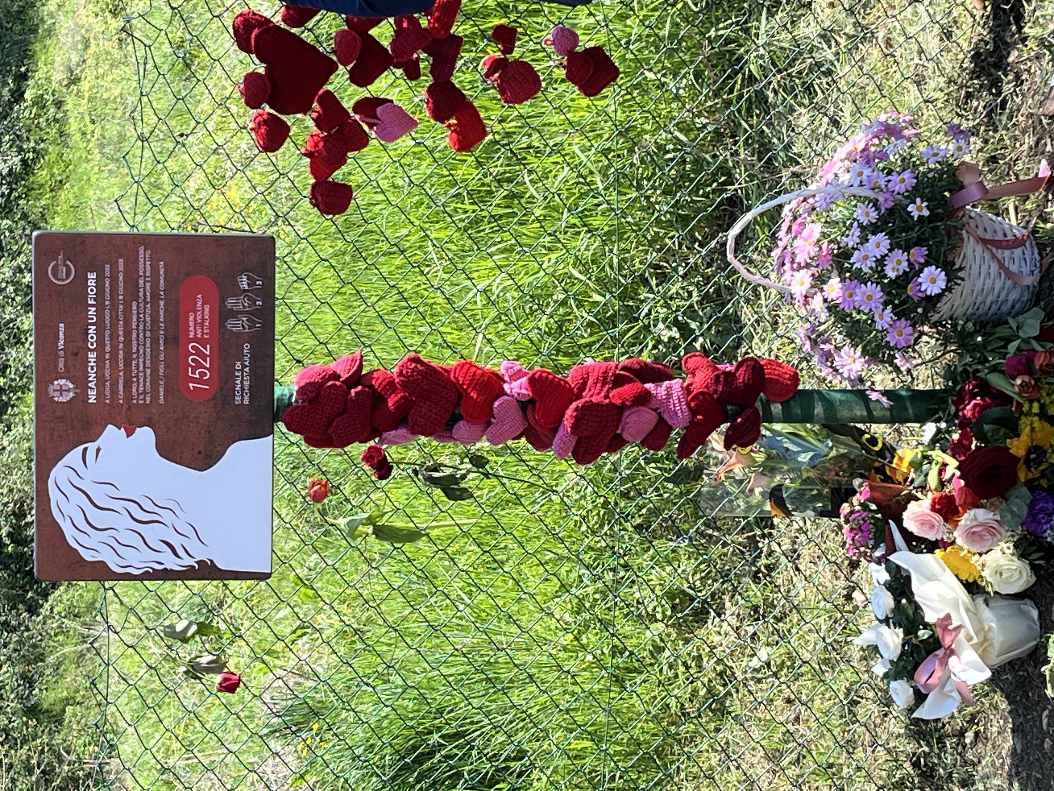 La targa è stata oggi posta, con una nuova versione grafica e di contenuti, in un terreno pubblico nelle vicinanze del luogo del femminicidio, come segno di ricordo, di impegno, di informazione sulla rete di servizi e le modalità per chiedere aiuto.