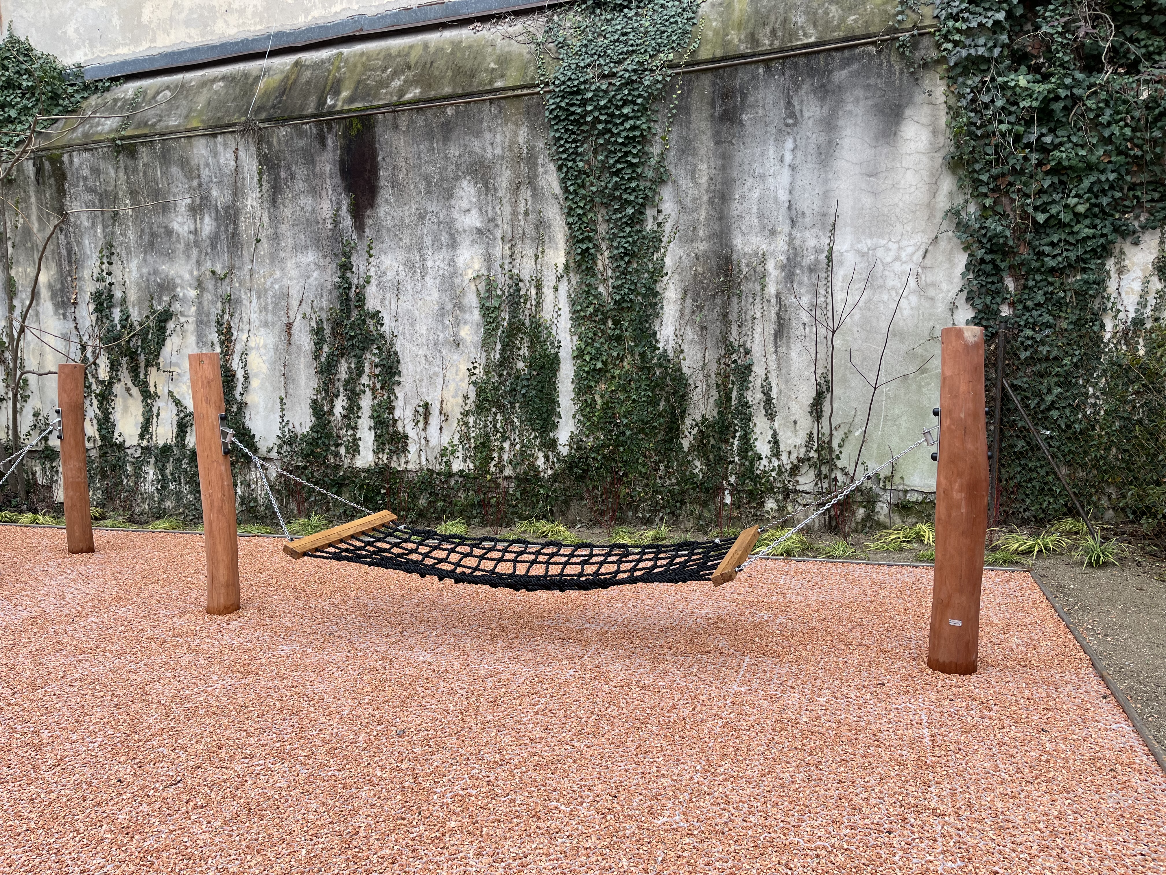 Le superfici di sosta in materiale drenante saranno collegate tra loro da percorsi che inviteranno ad esplorare l'intero giardino, dove saranno piantati anche nuovi alberi arbusti tappezzanti. Verranno poi allestiti degli spazi per il relax, l’incontro e il gioco, con l’installazione di una slack line e alcune amache.