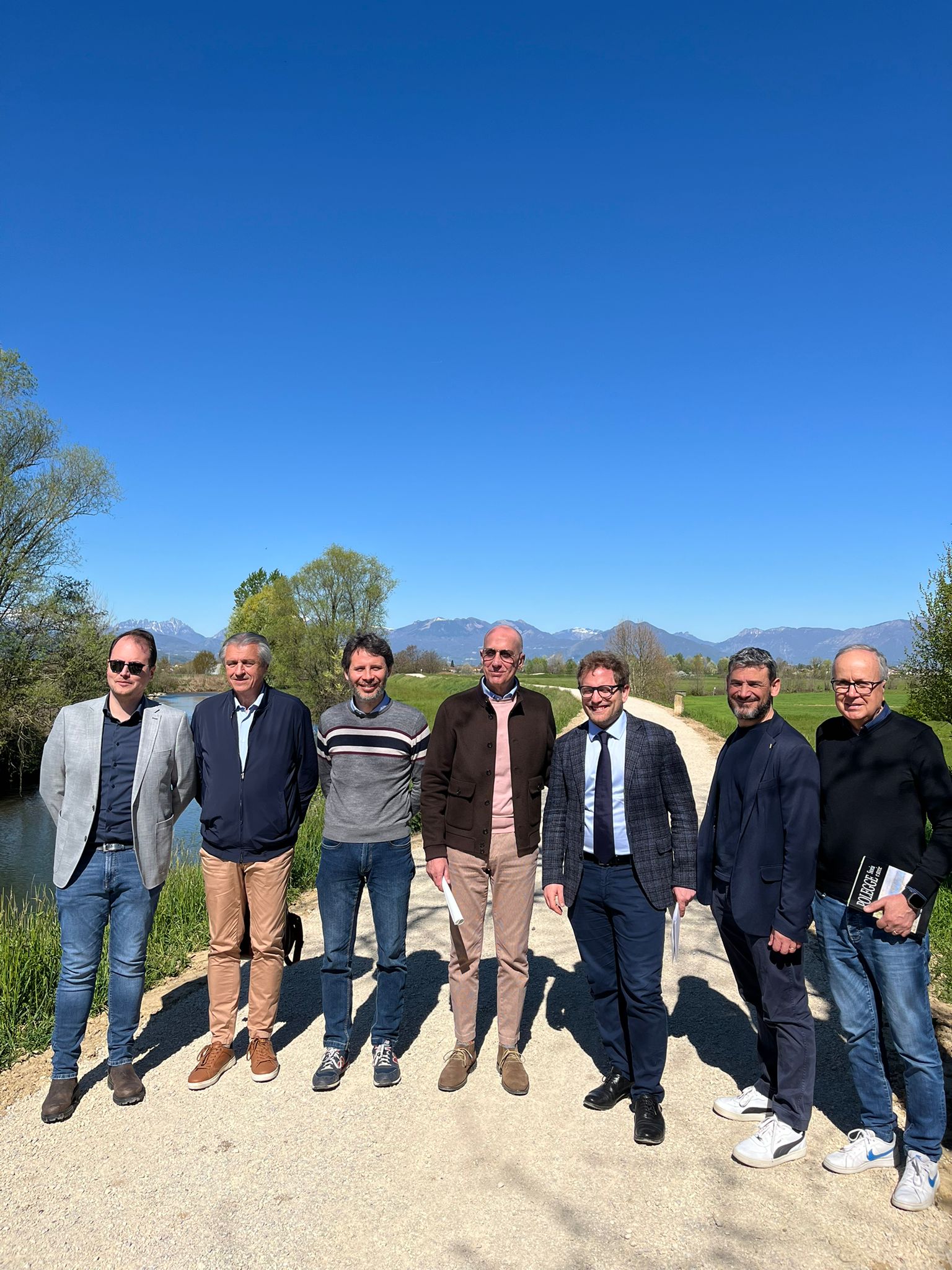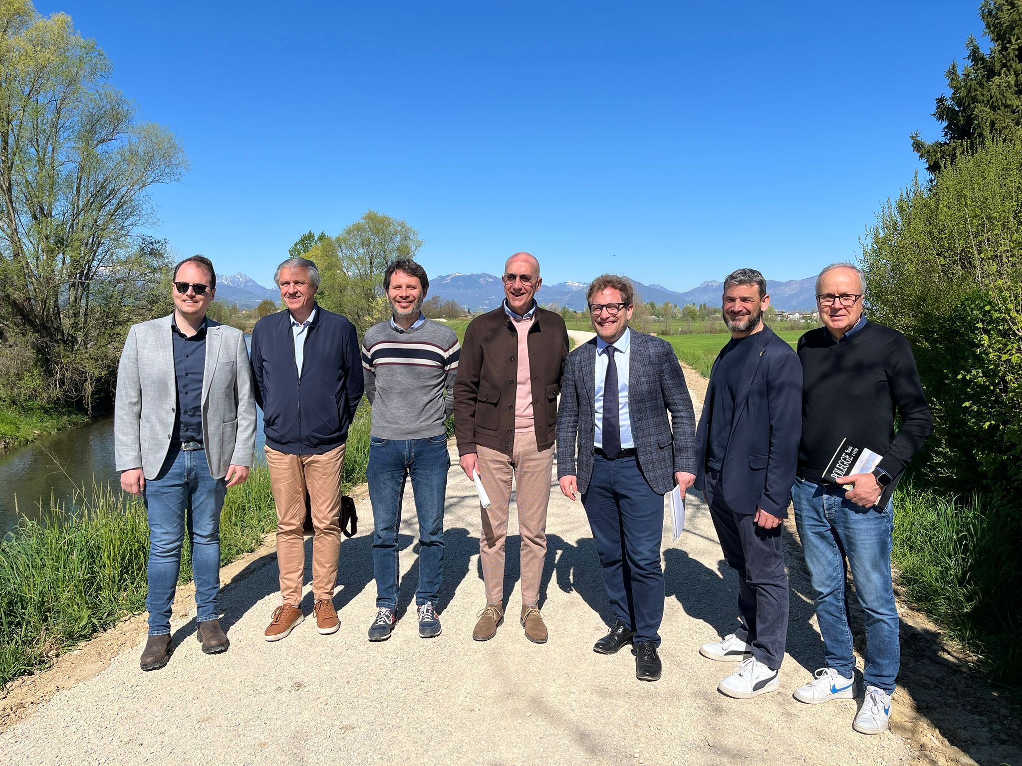 Sono a buon punto i lavori di realizzazione del nuovo percorso ciclopedonale lungo gli argini del fiume Bacchiglione, tra i Comuni di Vicenza e Caldogno, come verificato questa mattina durante un sopralluogo a cui hanno partecipato il sindaco di Vicenza Giacomo Possamai e l’assessore ai lavori pubblici del Comune di Vicenza Cristiano Spiller, dal presidente della Provincia Andrea Nardin, accompagnati dal sindaco del Comune di Caldogno Nicola Ferronato e dall’assessore Gabriele Toniello.