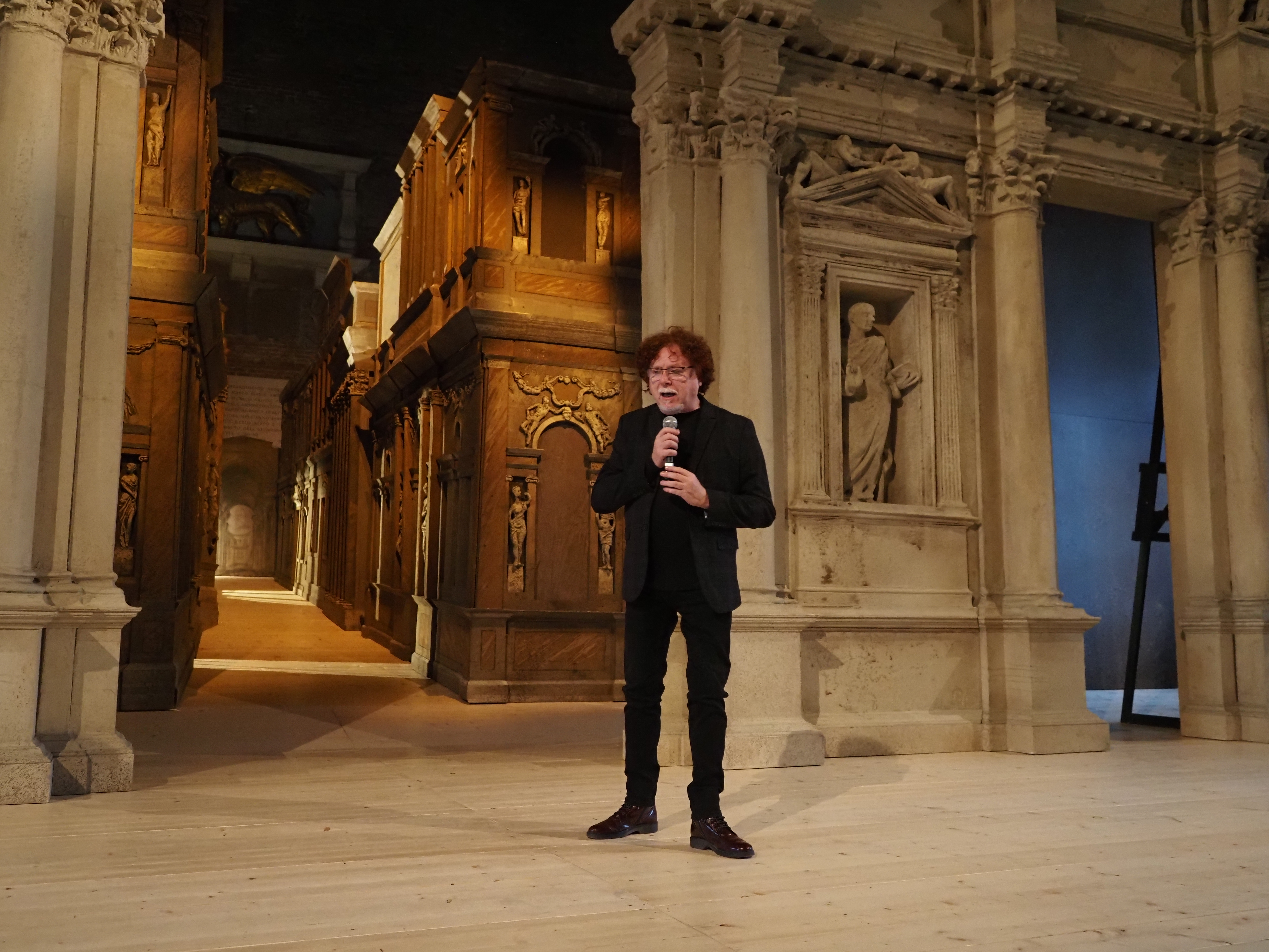 Allestire Olimpichetto nel Salone della Basilica significa riunire idealmente il primo e l’ultimo cantiere di Andrea Palladio: la Basilica, cuore della vita civile e mercantile della città, e il Teatro Olimpico, spazio dell’umanesimo cittadino. Prima dell’inaugurazione dell’Olimpico, proprio in Basilica Palladiana Palladio aveva sperimentato apparati scenici effimeri per spettacoli e feste, vere e proprie “prove generali” di architettura teatrale.