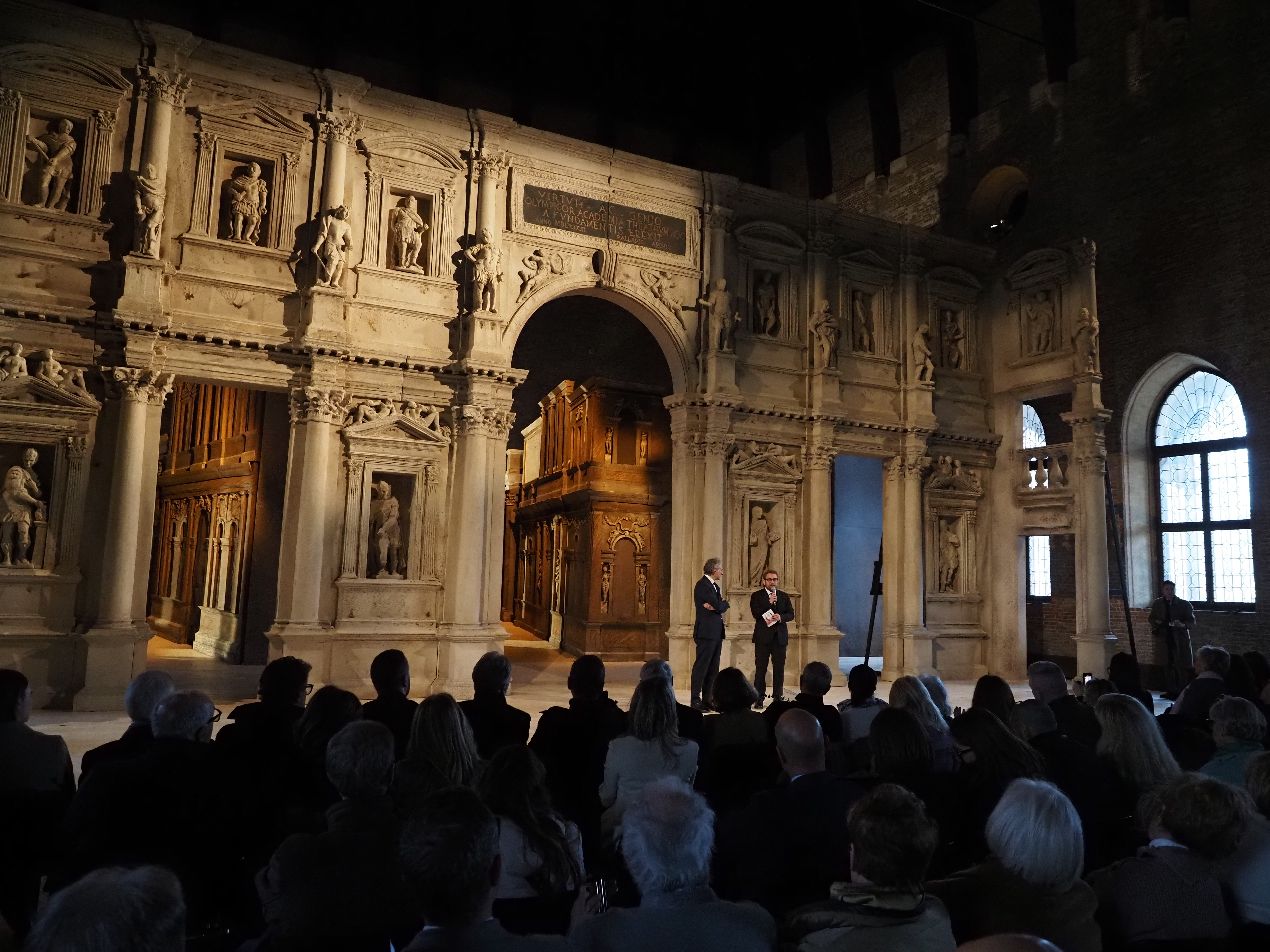 «È una grande giornata di festa per la città: celebriamo la restituzione di Olimpichetto e della sua storia, ma anche un Natale all’insegna della cultura, con due importanti mostre — a Palazzo Chiericati e in Basilica Palladiana — ideate e coordinate internamente dai Musei Civici e con una terza esposizione a Palazzo Cordellina curata dalla Biblioteca Bertoliana. Un sentito ringraziamento va a tutta la squadra dell’Olimpichetto, che con coraggio, competenza e spirito di collaborazione ha reso possibile la restituzione alla città di una grande opera d’arte» - è intervenuta l’assessore alla cultura, al turismo e all’attrattività della città Ilaria Fantin.