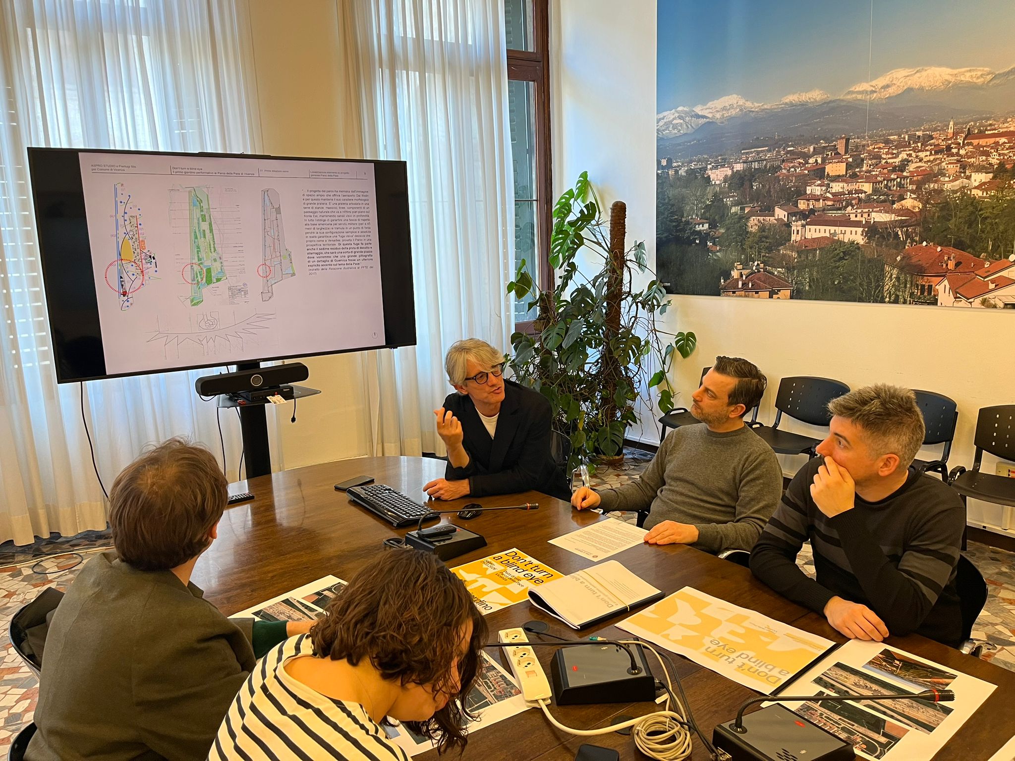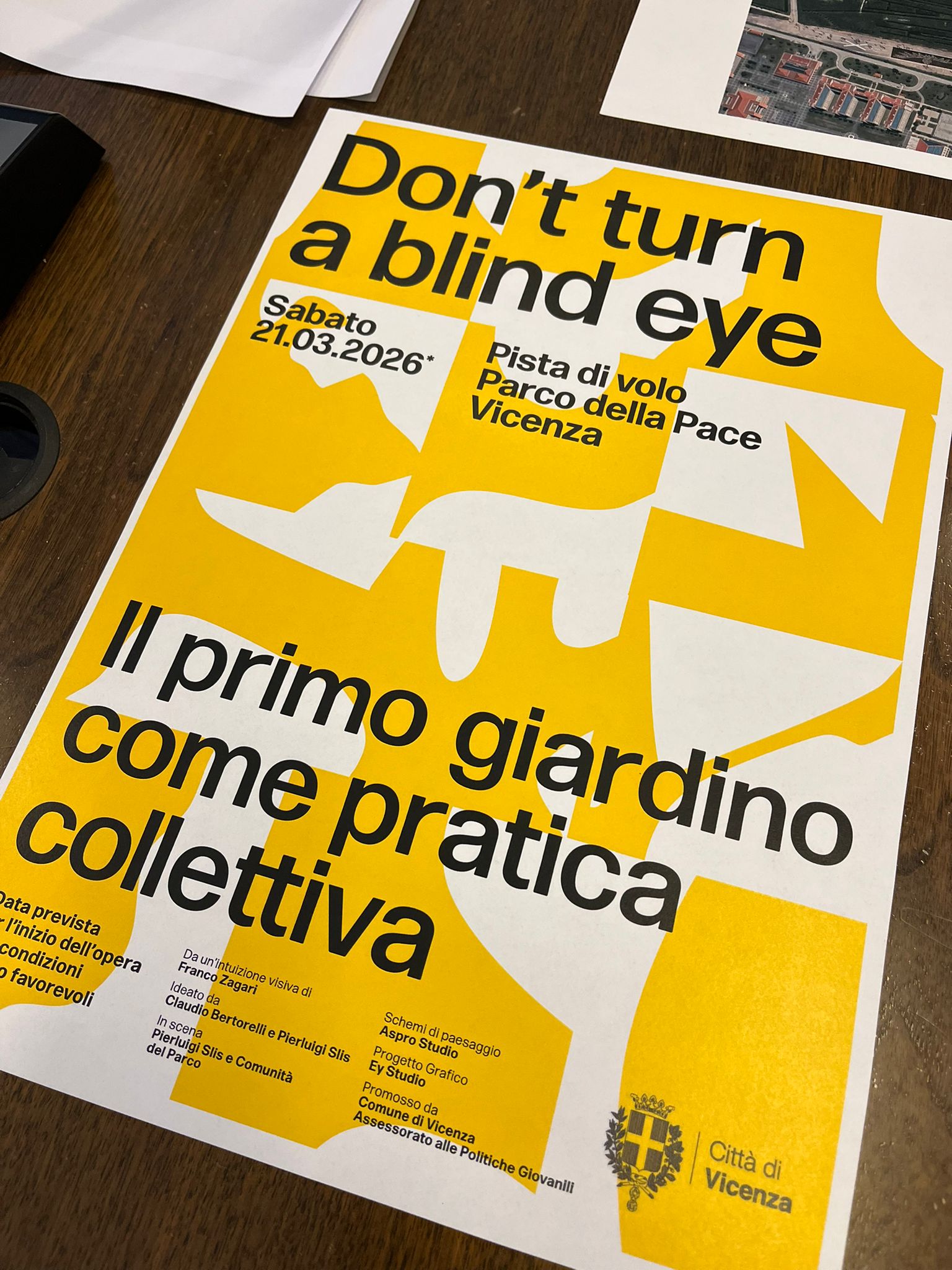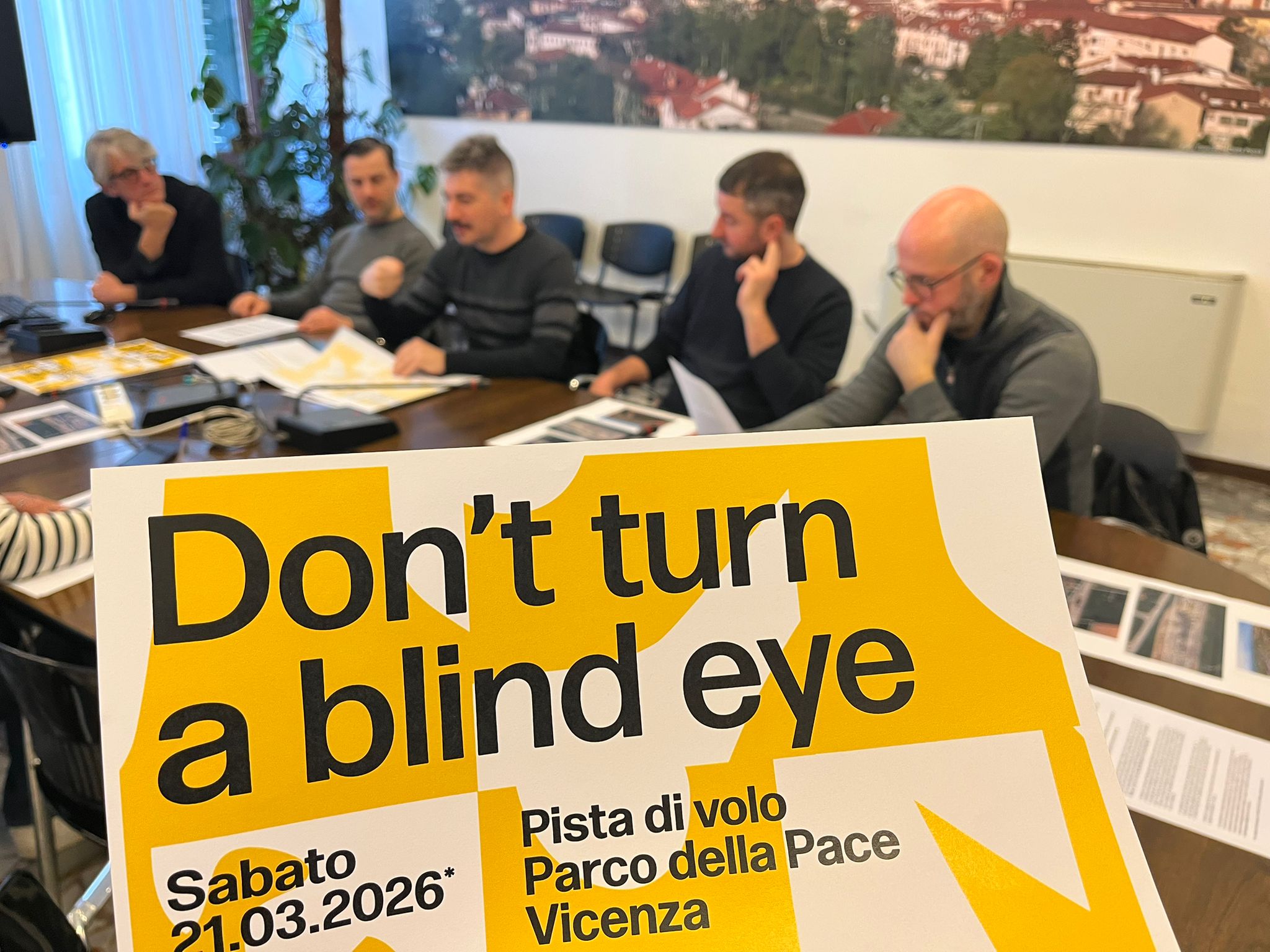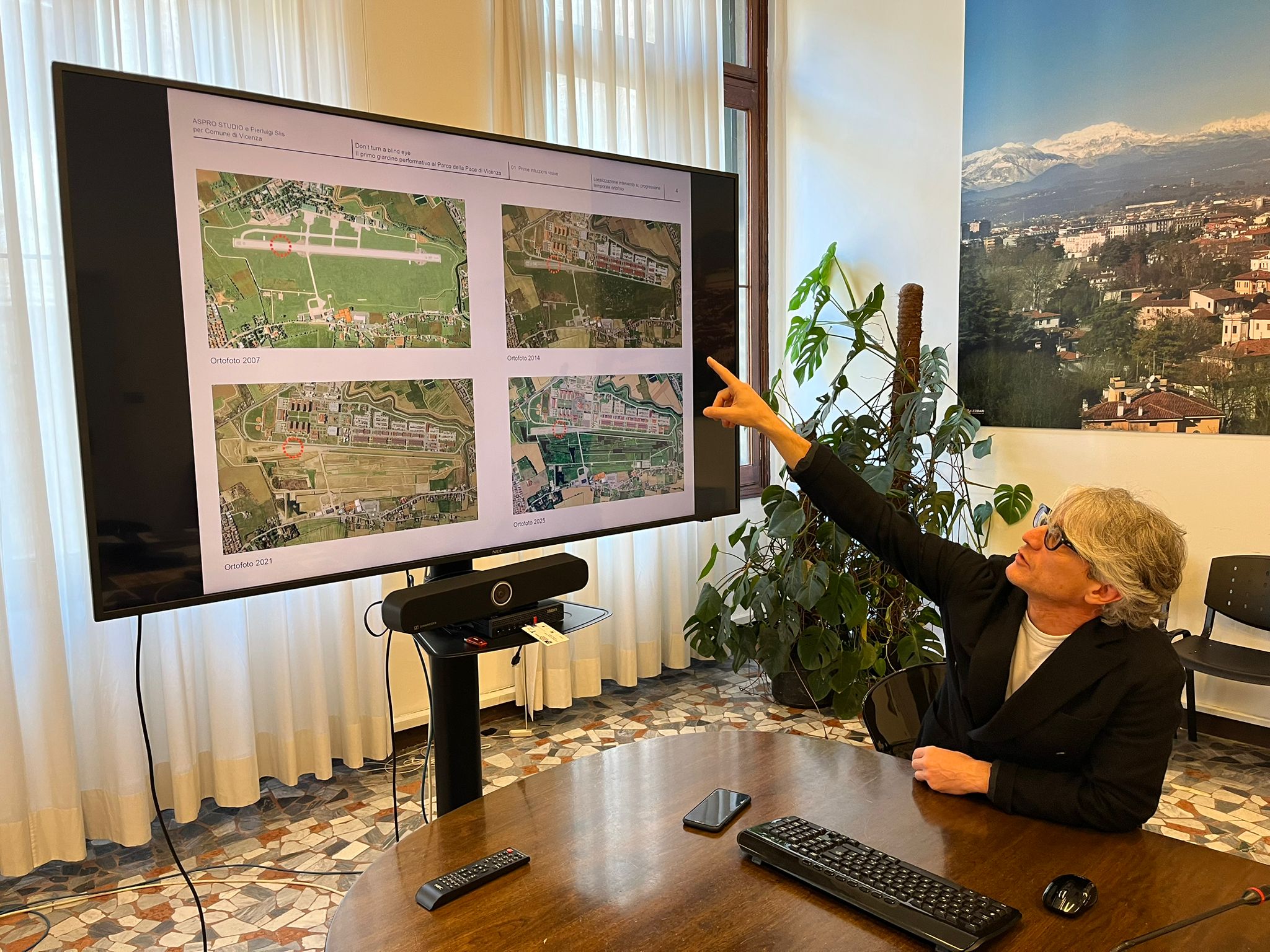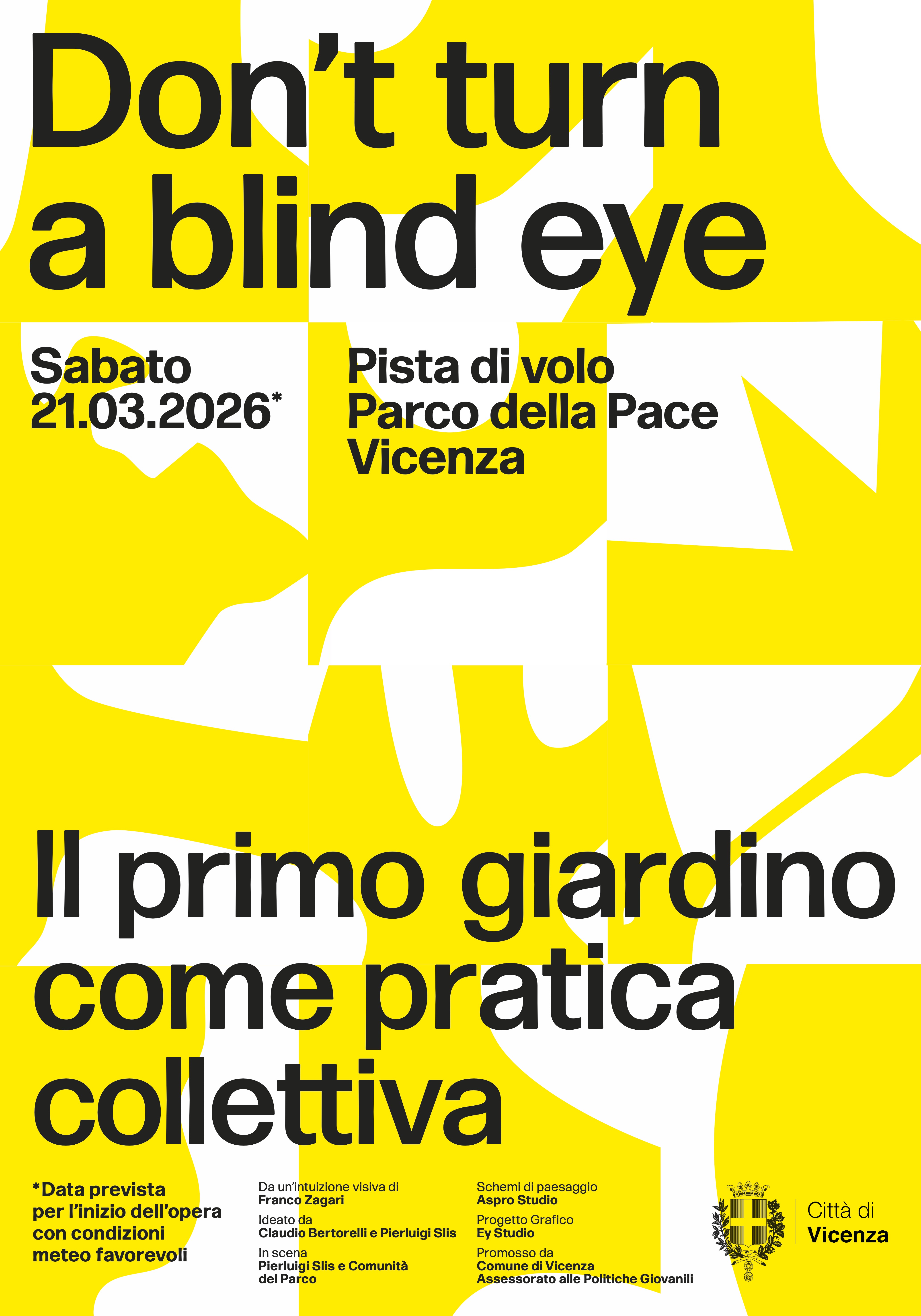 È stato presentato questa mattina a Palazzo Trissino il progetto “Don’t turn a blind eye – Il primo giardino come pratica collettiva al Parco della Pace di Vicenza” che darà avvio a un percorso di azioni performative sulla pista di volo ancora presente nella zona sud del parco. Alla presentazione erano presenti l’assessore alle politiche giovanili Leonardo Nicolai, per Aspro Studio Claudio Bertorelli e l’artista Pierluigi Slis.