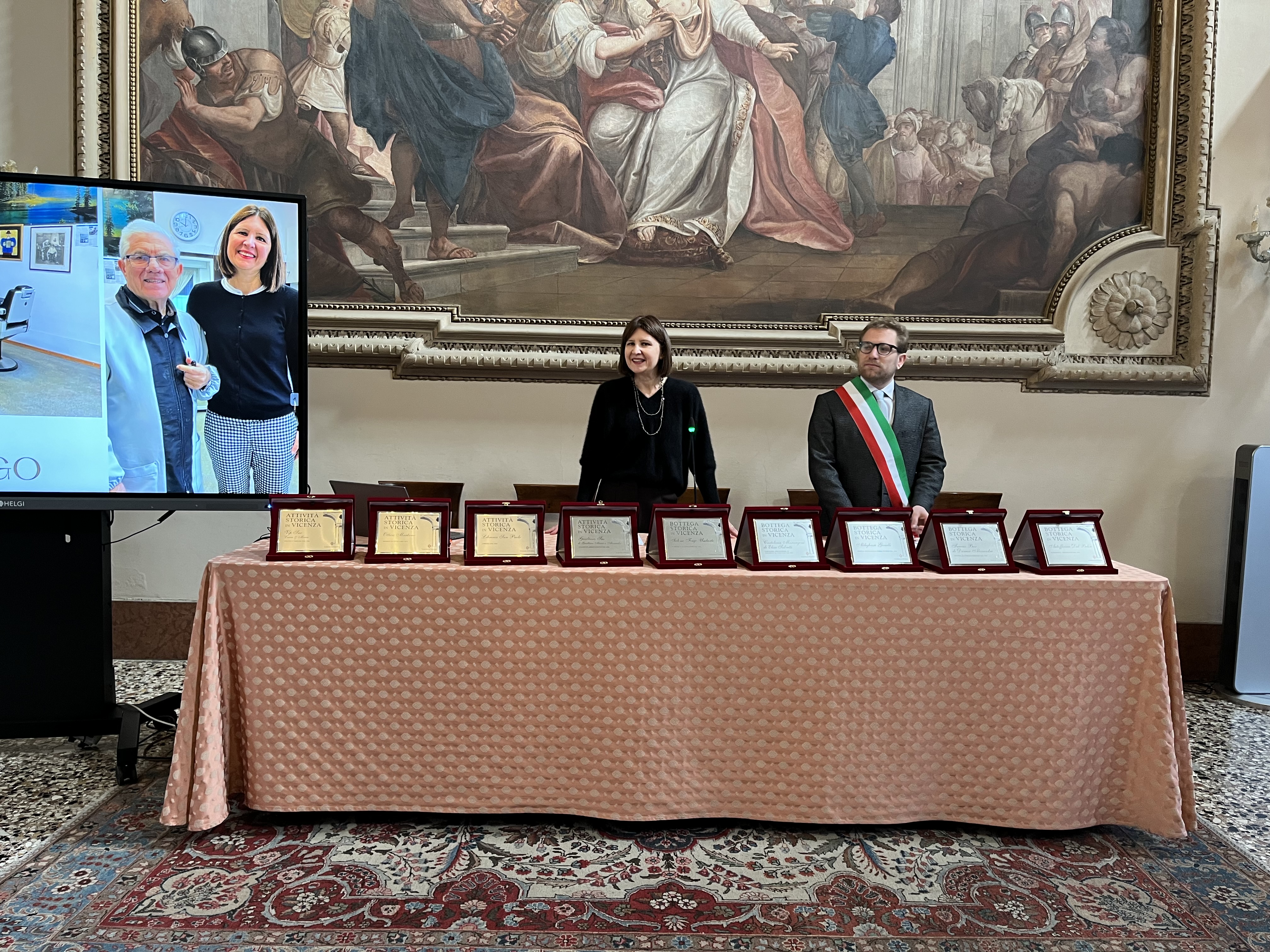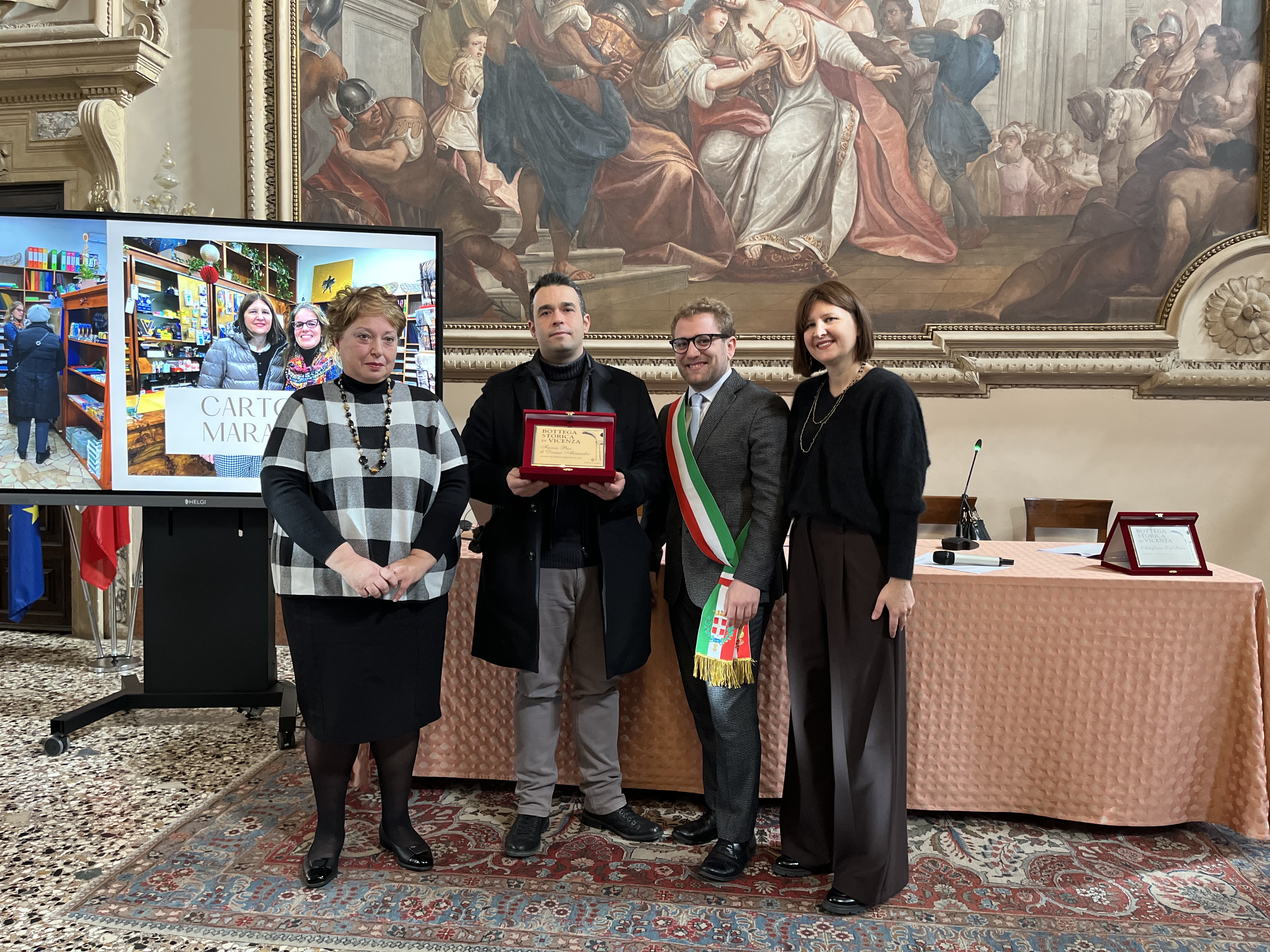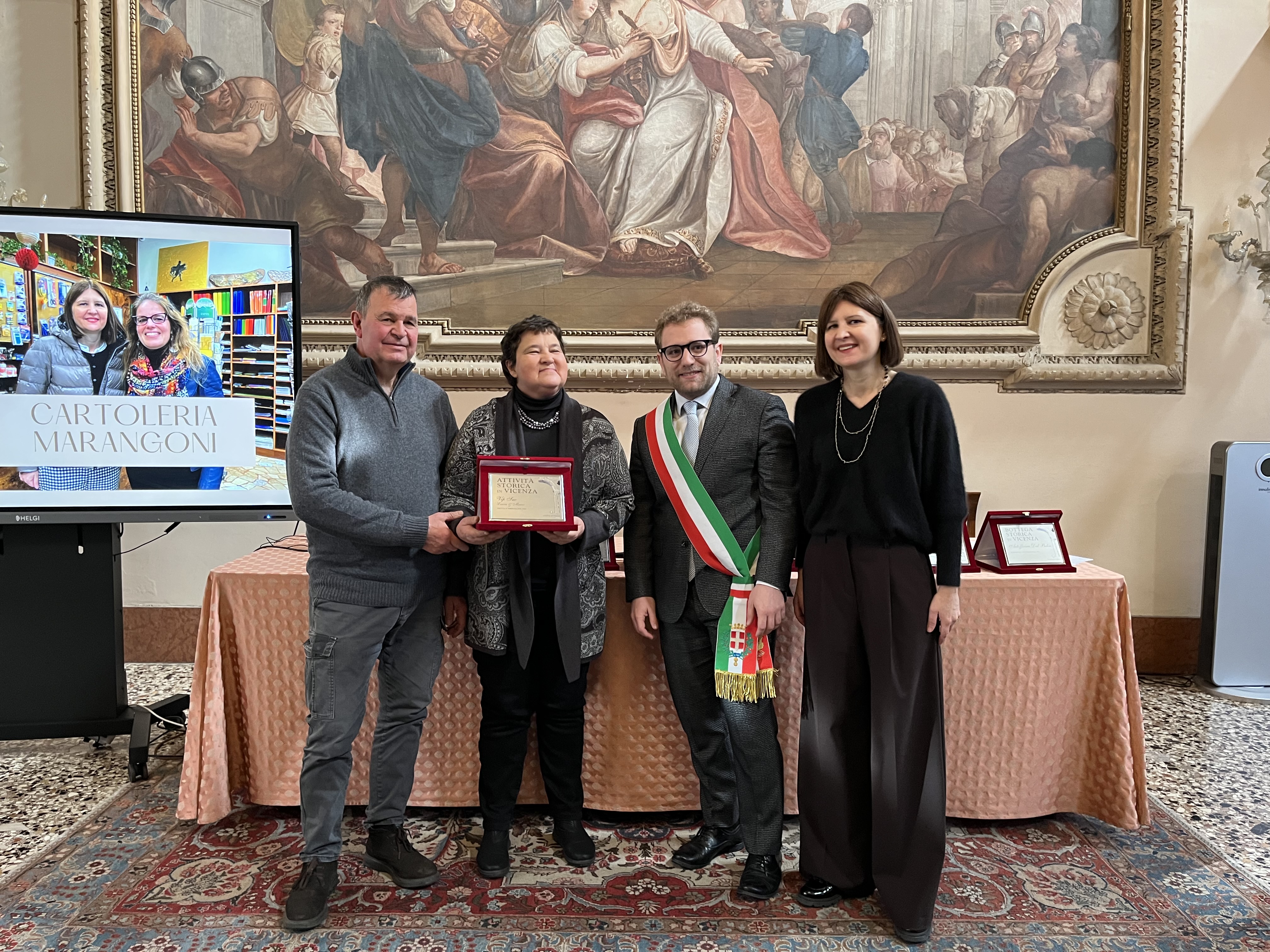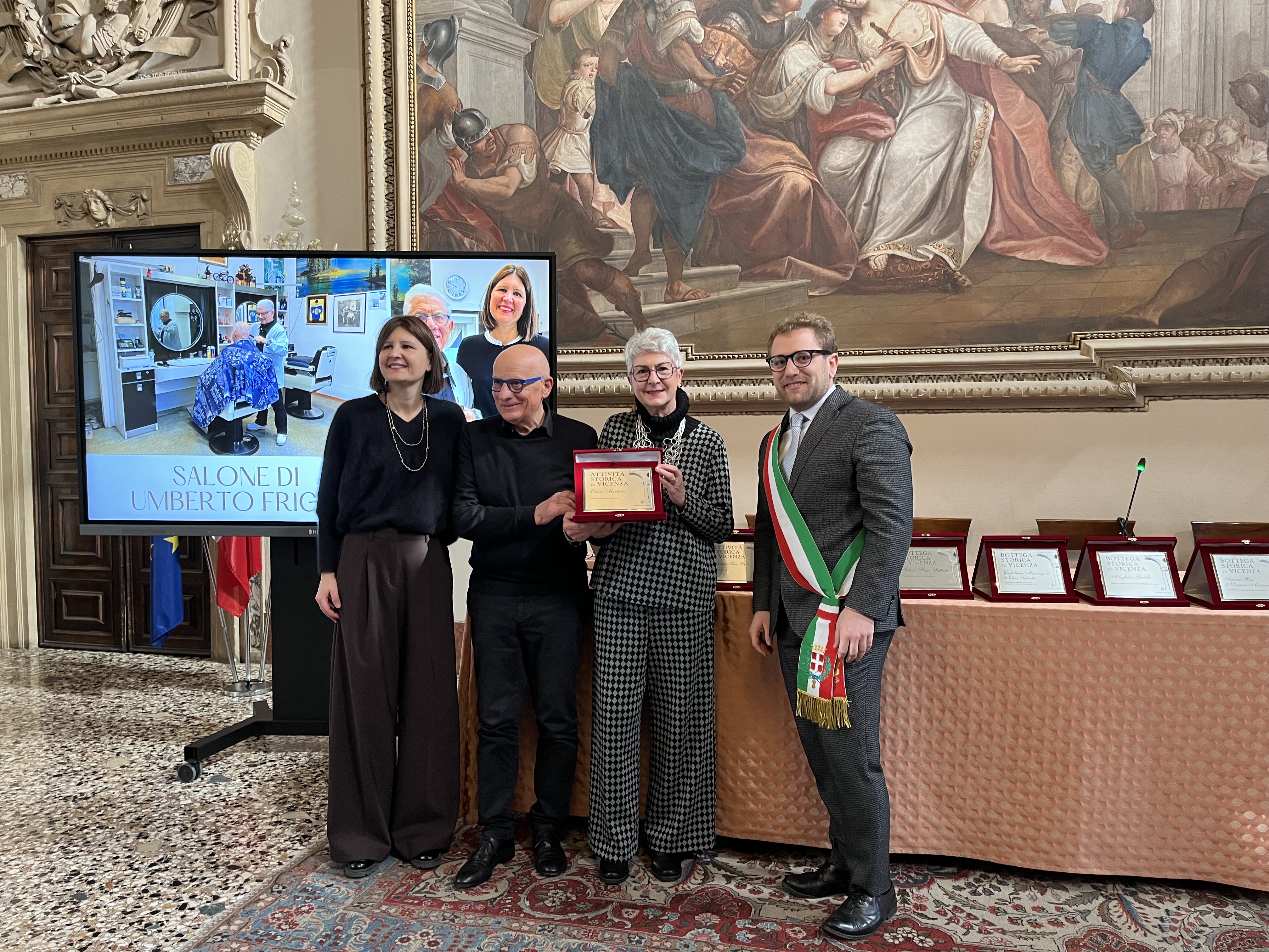 Erano presenti in occasione della cerimonia anche Nicola Piccolo, presidente di Confcommercio Vicenza, Giuliana Pavan, presidente dell’associazione botteghe storiche, ed Emiliano Vettore, presidente di Confartigianato Vicenza.