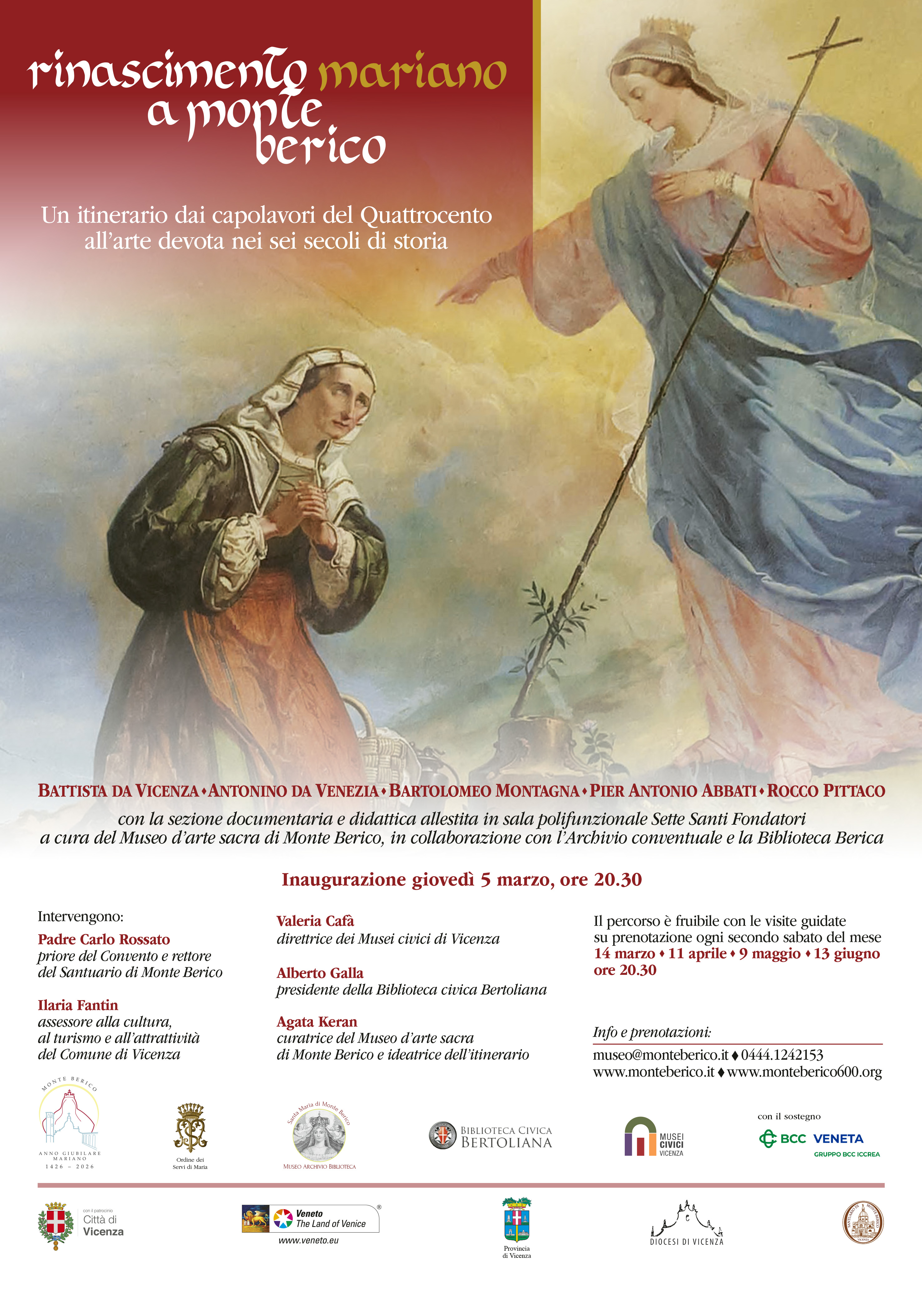 L’itinerario in rete, sviluppato in tre sedi e in momenti diversi dell’Anno Giubilare Mariano, promosso dal Museo d’arte sacra di Monte Berico, dal Museo Civico di Palazzo Chiericati e dalla Biblioteca civica Bertoliana, è stato presentato dall’assessore alla cultura, al turismo e all’attrattività Ilaria Fantin, da Agata Keran referente per le attività culturali del Santuario e curatrice dell'itinerario della mostra diffusa, da Padre Gino Alberto Faccioli, presidente del Comitato scientifico per l'Anno Giubilare Mariano e da Francesca Gaianigo per la Biblioteca Berica della Provincia veneta dell'Ordine dei Servi di Maria.