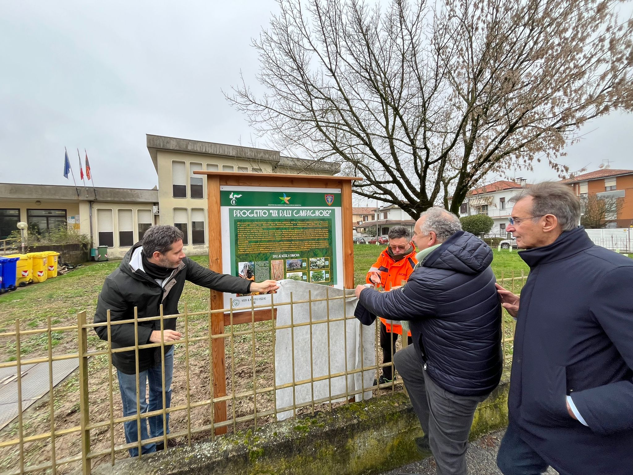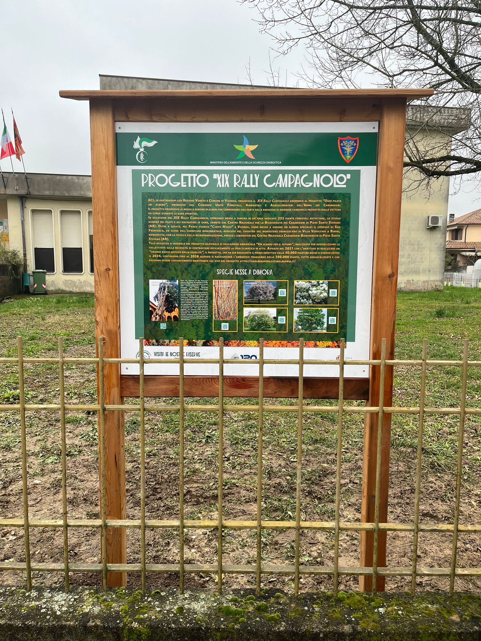 Durante la mattinata è stato inoltre scoperto un tabellone informativo, installato sempre da Amcps, che descrive la tipologia di piante e la loro provenienza. Nel dettaglio le piante che hanno arricchito il giardino della scuola sono 65 Salix purpurea (salici rossi), 3 Fraxinus ornus (frassini), 23 Viburnum opulus (pallon di maggio) e 3 Quercus peduncolata (farnie), per un totale di 94 piante. Le restante saranno piantate nel corso dell’anno nell'area verde di Viale Cricoli nei pressi del fiume Astichello e un cipresso a Monte Berico.