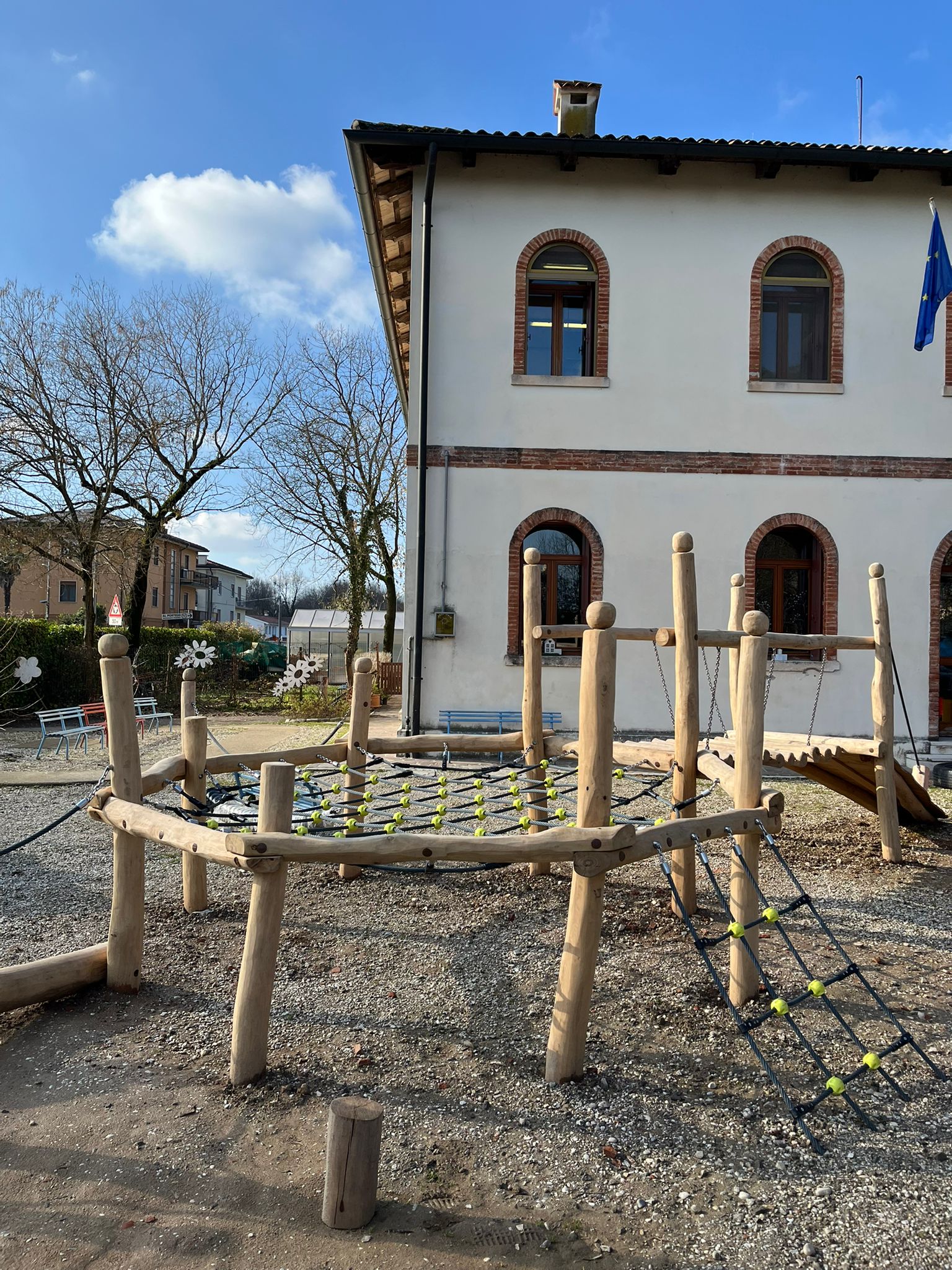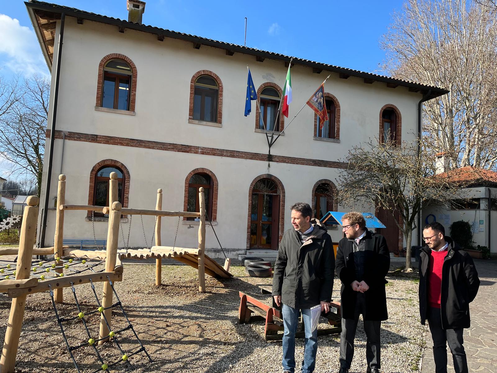 Continuano i lavori di riqualificazione dei giardini delle scuole dell’infanzia comunali e statali di Vicenza. Il secondo lotto di interventi di sostituzione delle strutture dedicate ai più piccoli sono stati presentati questa mattina, durante un sopralluogo alla scuola “C. Piccoli” di Bertesina, a cui hanno partecipato il sindaco di Vicenza Giacomo Possamai, gli assessori all’istruzione Giovanni Selmo e ai lavori pubblici Cristiano Spiller, e il dirigente scolastico dell’IC 2 e 4 Alfonso Sforza. Per l’occasione è stata presentata anche la nuova giostra “Percorso equilibrio e avventura”, installata recentemente proprio nel cortile dell’edificio scolastico di Bertesina.