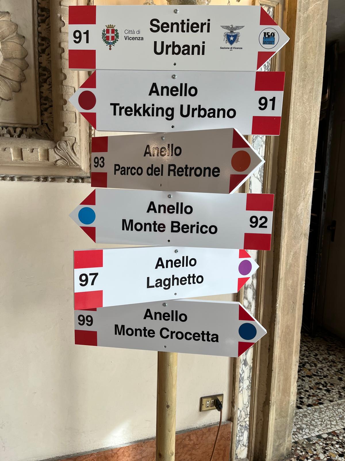«I Sentieri Urbani di Vicenza - ha detto il referente dei volontari Alberto Nicolin - si sviluppano ad anello, tre a sud e due a nord della città. Sono stati segnati con i classici segnali bianchi e rossi (tabelle e adesivi posizionati dai volontari CAI con la collaborazione di Amcps), secondo le regole della sentieristica di montagna. La numerazione dal 91 al 99 tiene conto di possibili collegamenti con la rete sovra comunale e di sviluppi futuri».