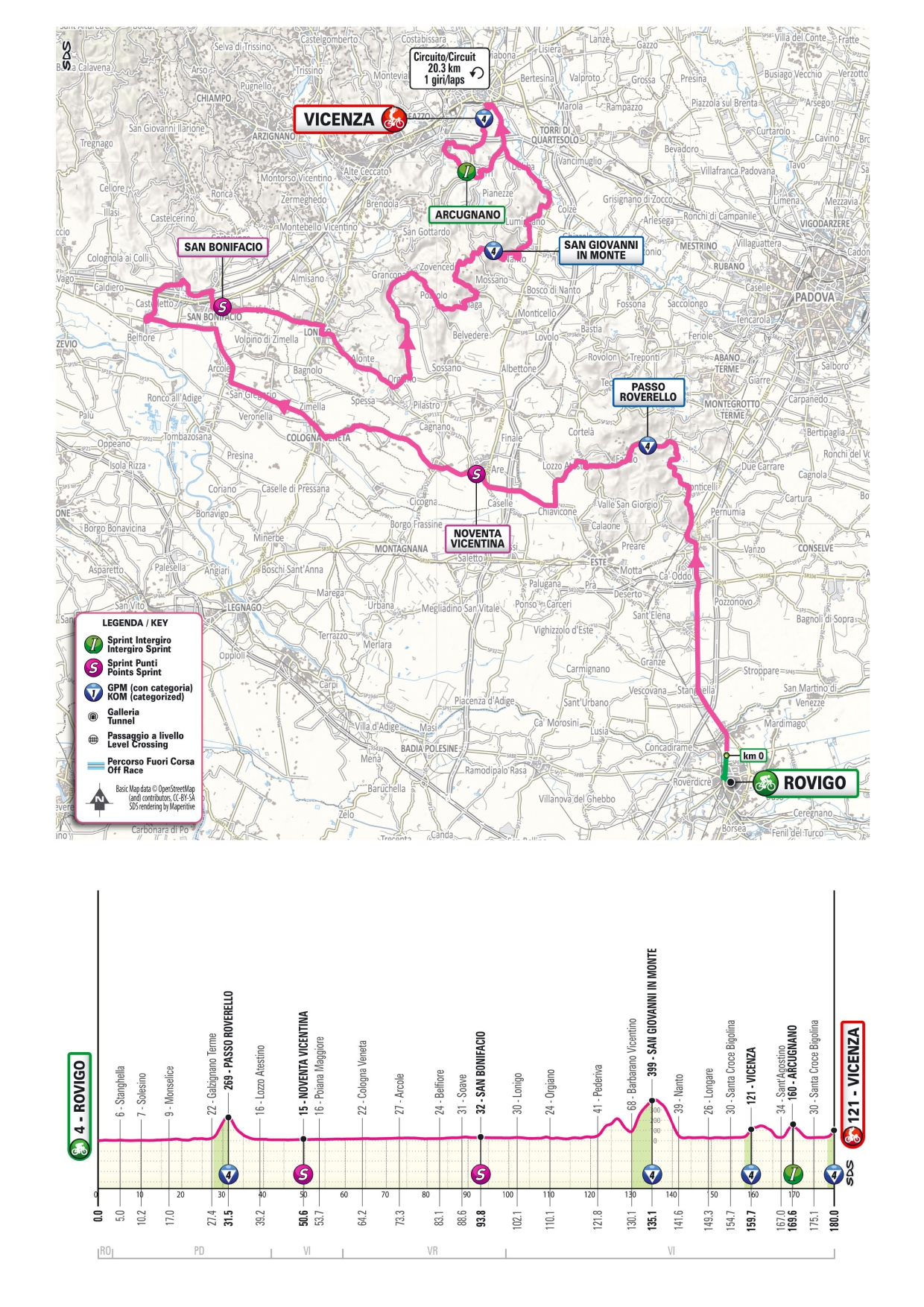 Nelle ore precedenti l’arrivo della Tappa dei Berici, si terrà la manifestazione ciclistica non competitiva Giro-E, organizzata dalla società RCS Sport S.p.A., con ingresso nel territorio comunale da viale Riviera Berica (provenienza da Longare), viale Riviera Berica, Borgo Berga, piazzale Fraccon, viale Risorgimento Nazionale, viale Dante, viale X Giugno e arrivo al davanti al Santuario di Monte Berico.