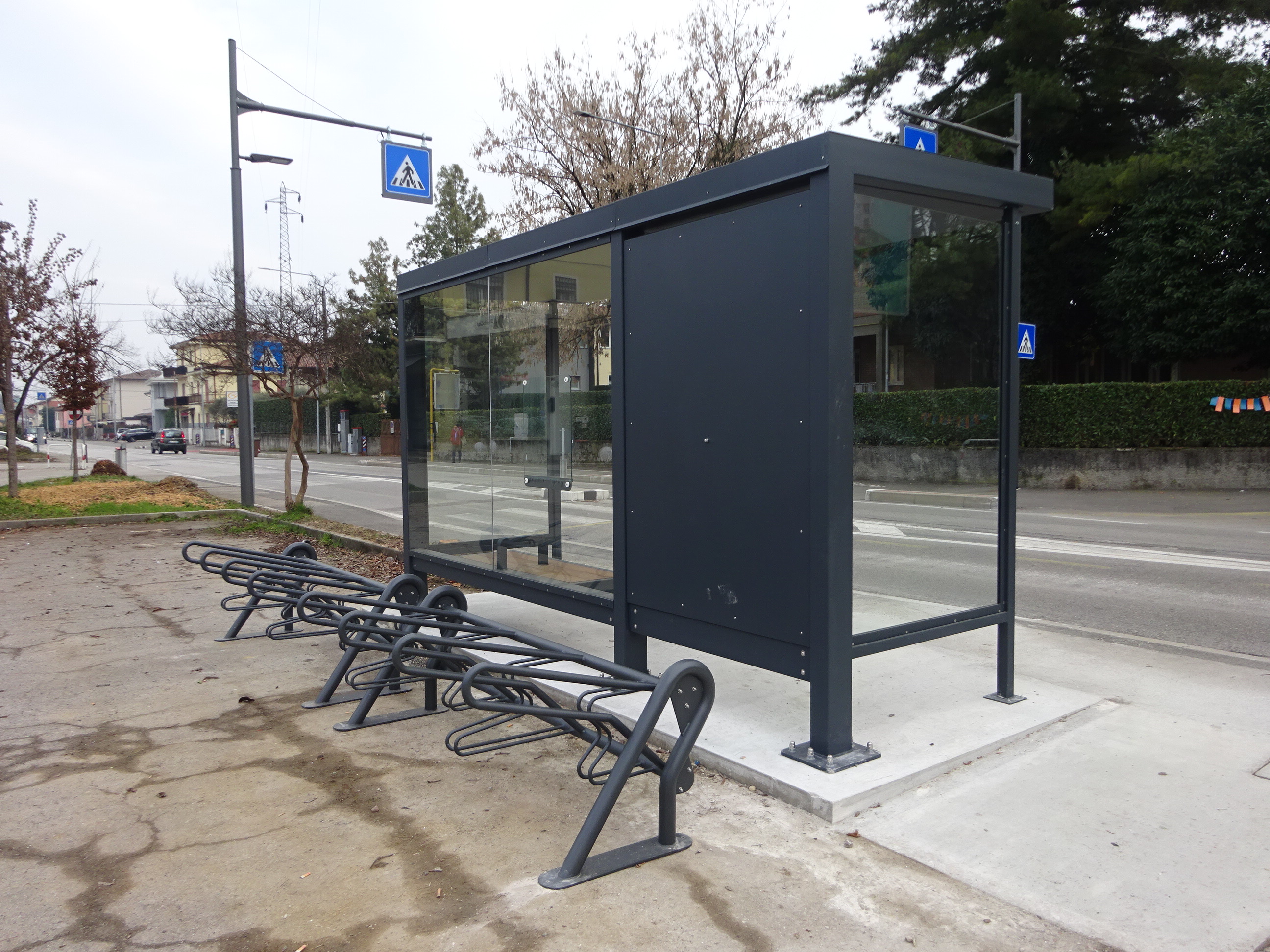 La nuova pensilina contribuisce a rinnovare la qualità urbana della fermata Tpl in un’area centrale e molto frequentata della frazione, in prossimità della Chiesa parrocchiale di San Benedetto Abate, della scuola materna Nerina Sasso, di diverse attività commerciali e dell’area del mercato settimanale.