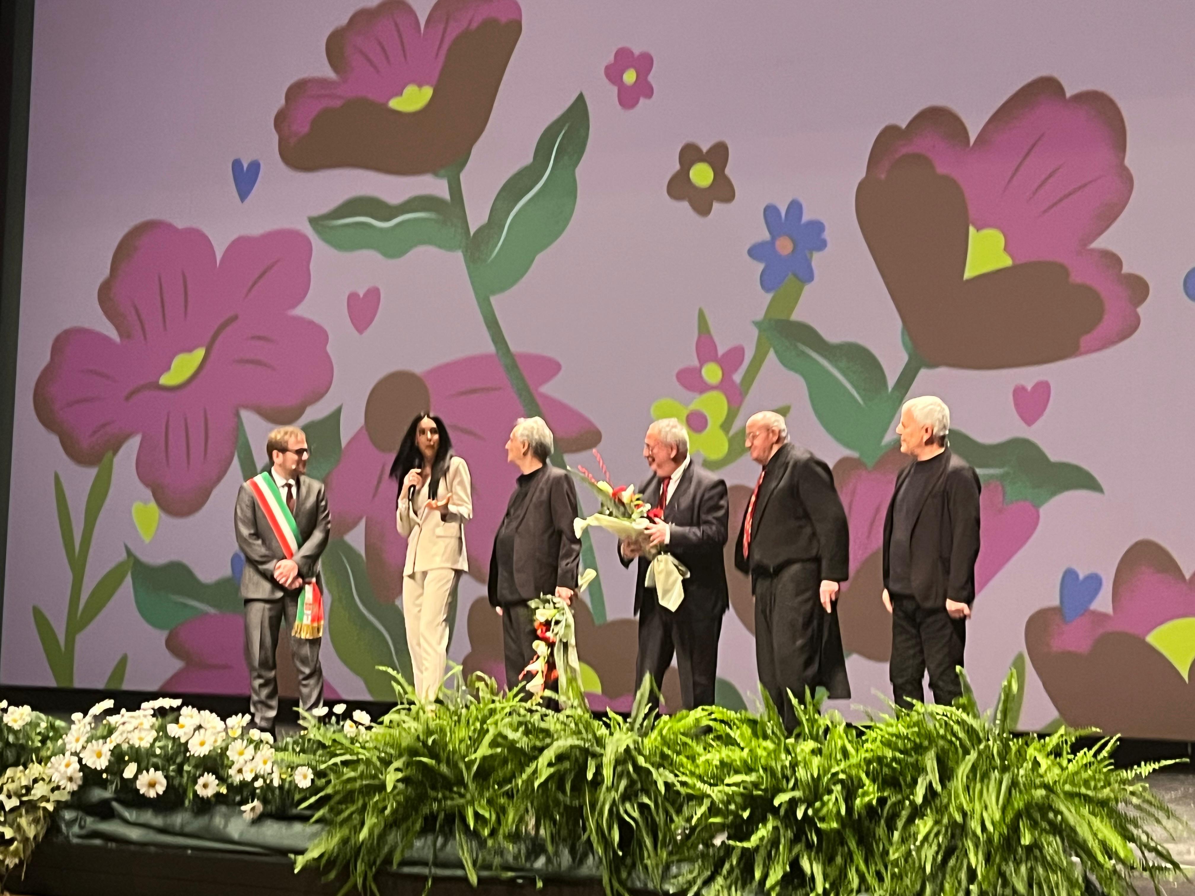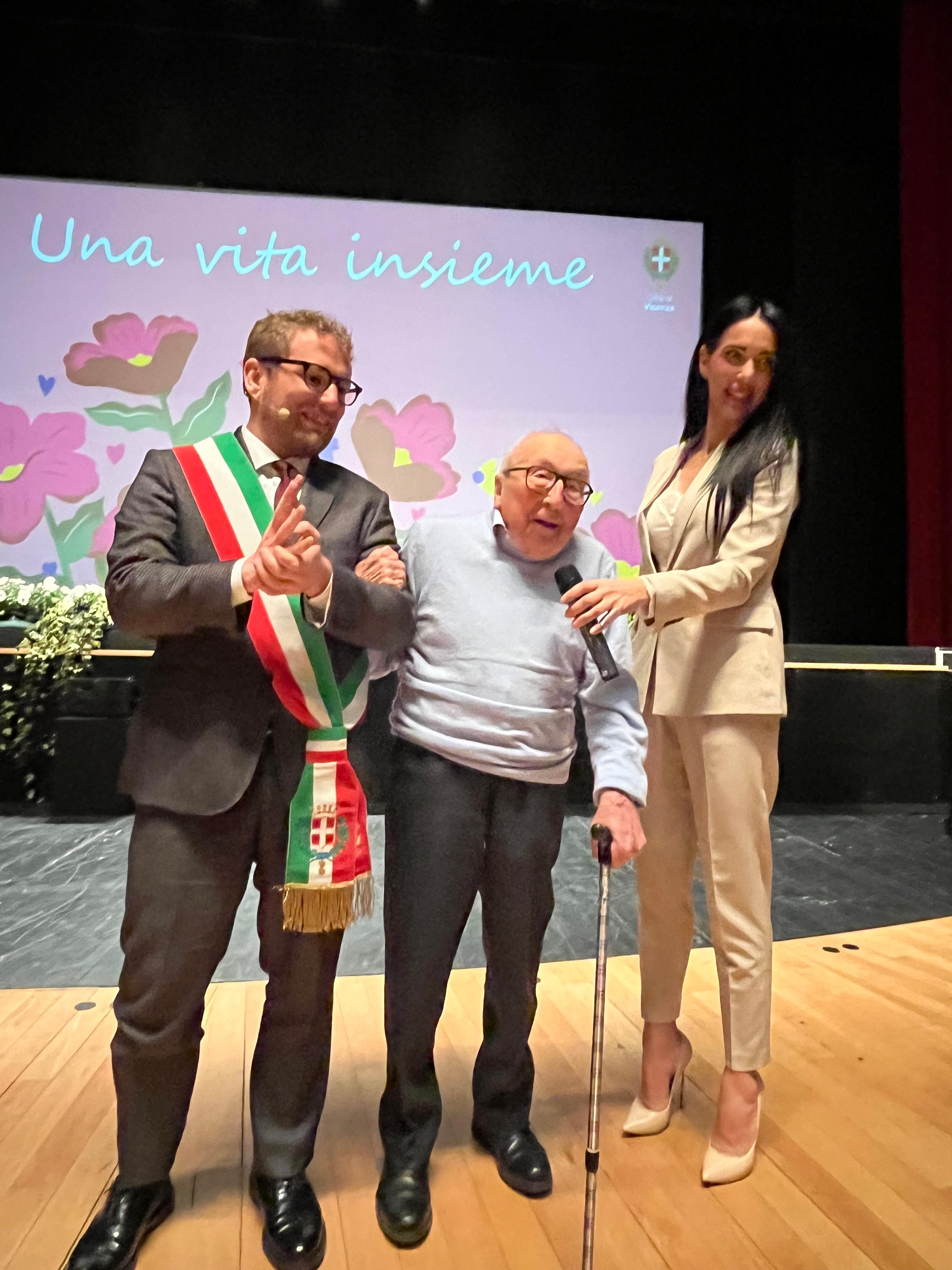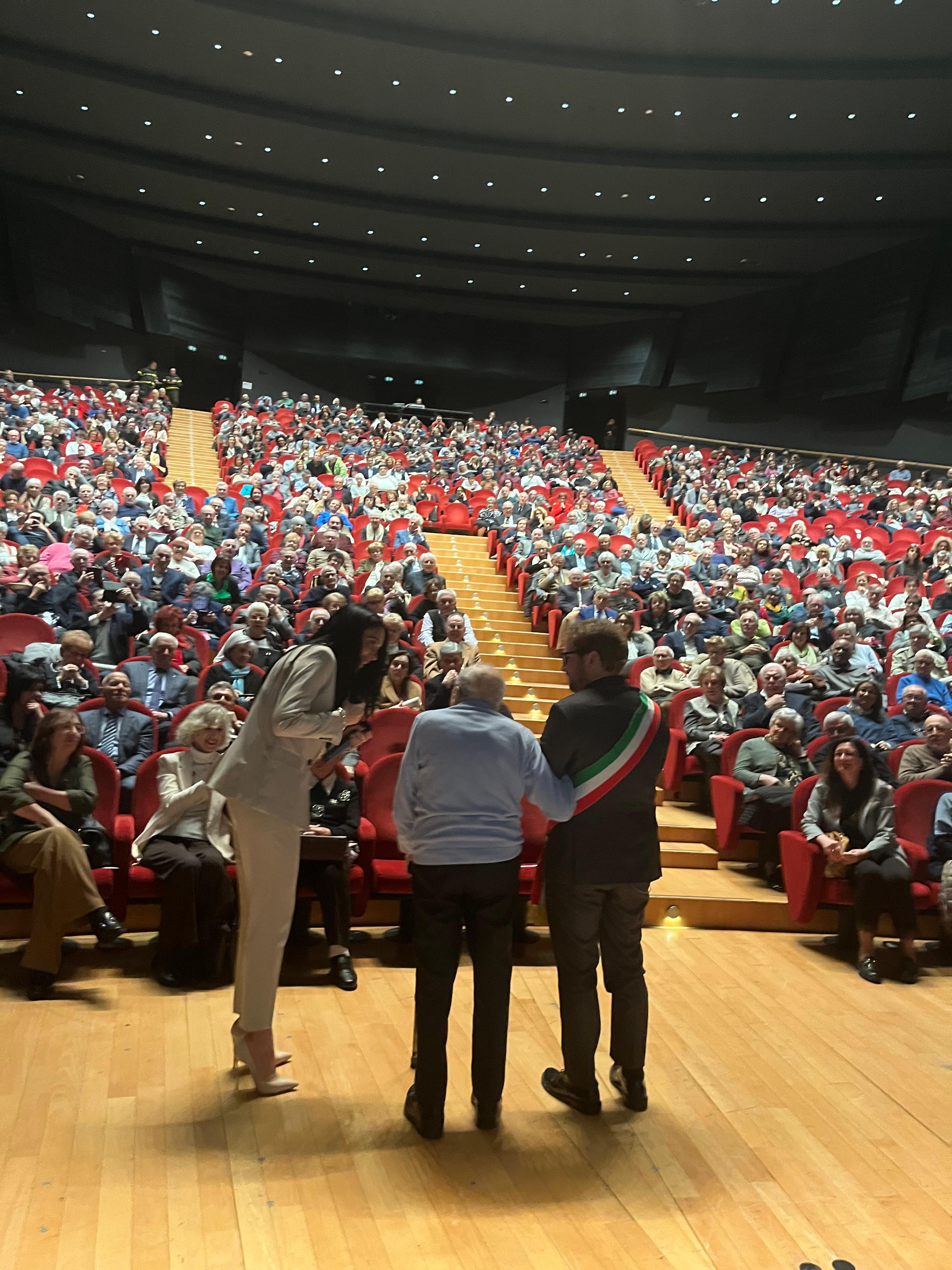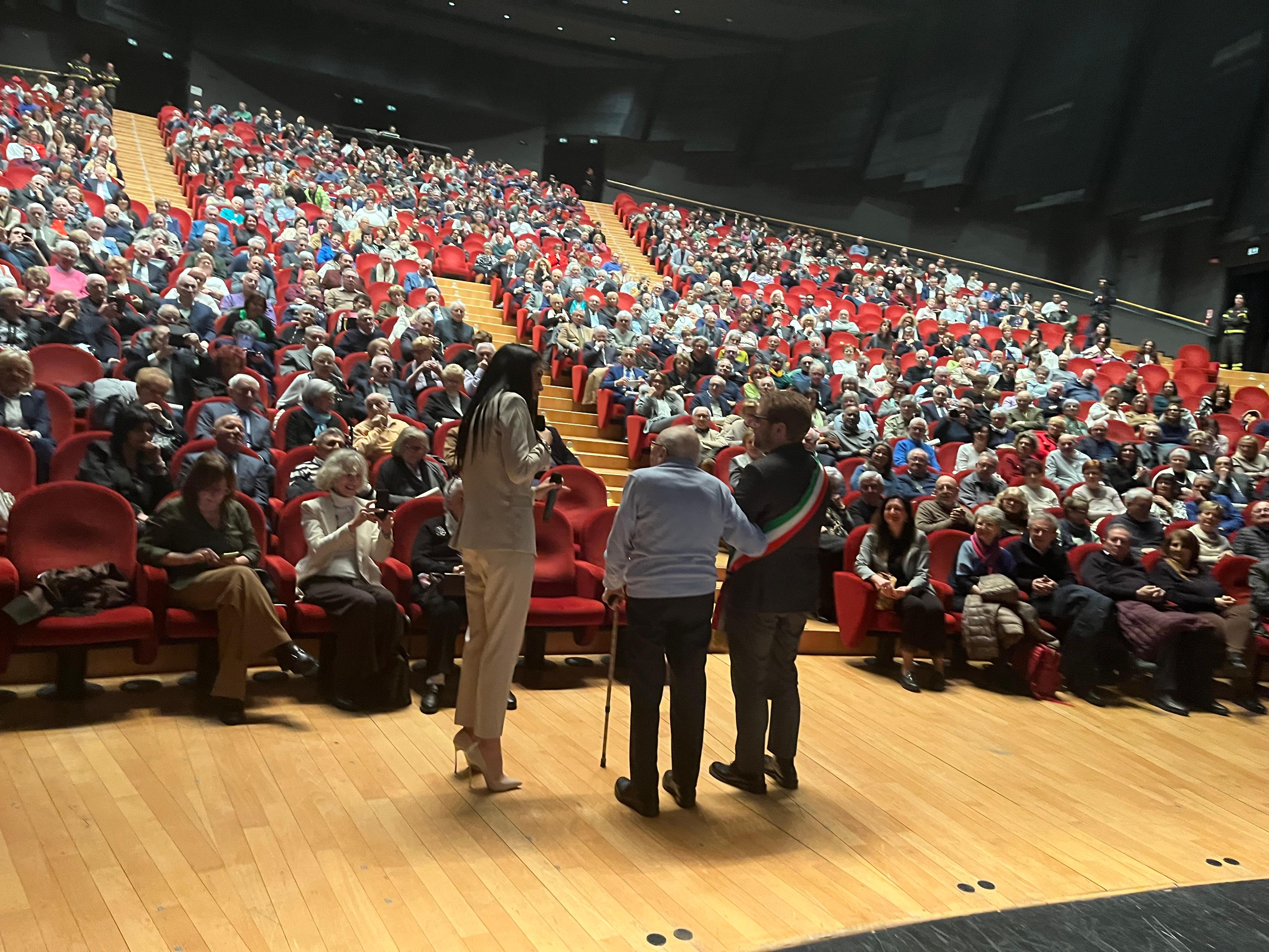 «Quando vi guardo – ha detto Giorgio Sala al pubblico - mi sento di dirvi bravi perché avete resistito nel matrimonio. Siete fantastici, resistenti. Il matrimonio è una cosa molto impegnativa, figuriamoci se dura per 50, 60, 70 anni. Servono davvero forza, coraggio, pazienza». E dopo aver testimoniato la complessità, ma anche la sacralità, di una vita vissuta insieme, ha concluso: «Qui oggi centinaia di cuori stanno battendo insieme e insieme fanno il grande cuore della nostra città».