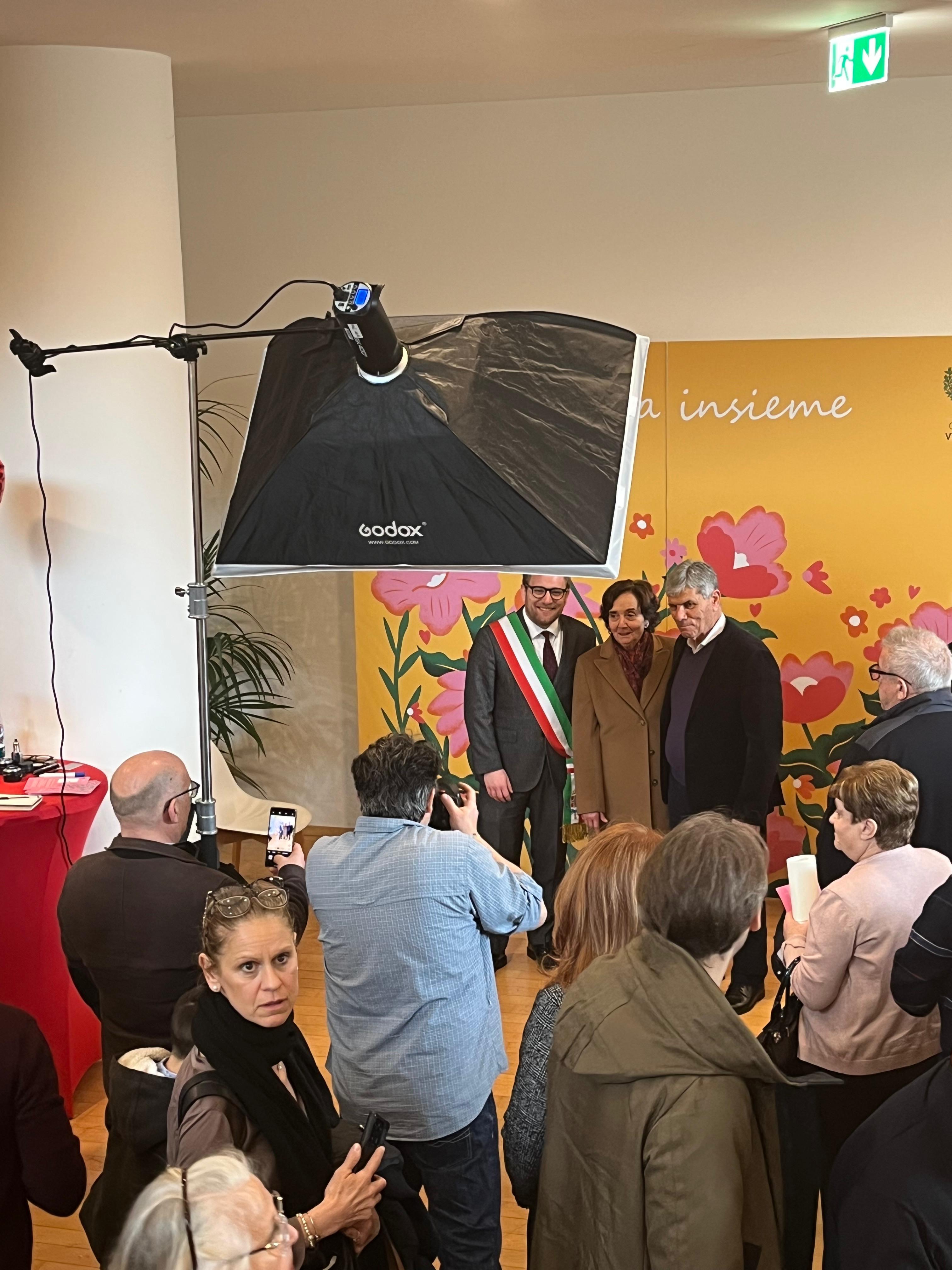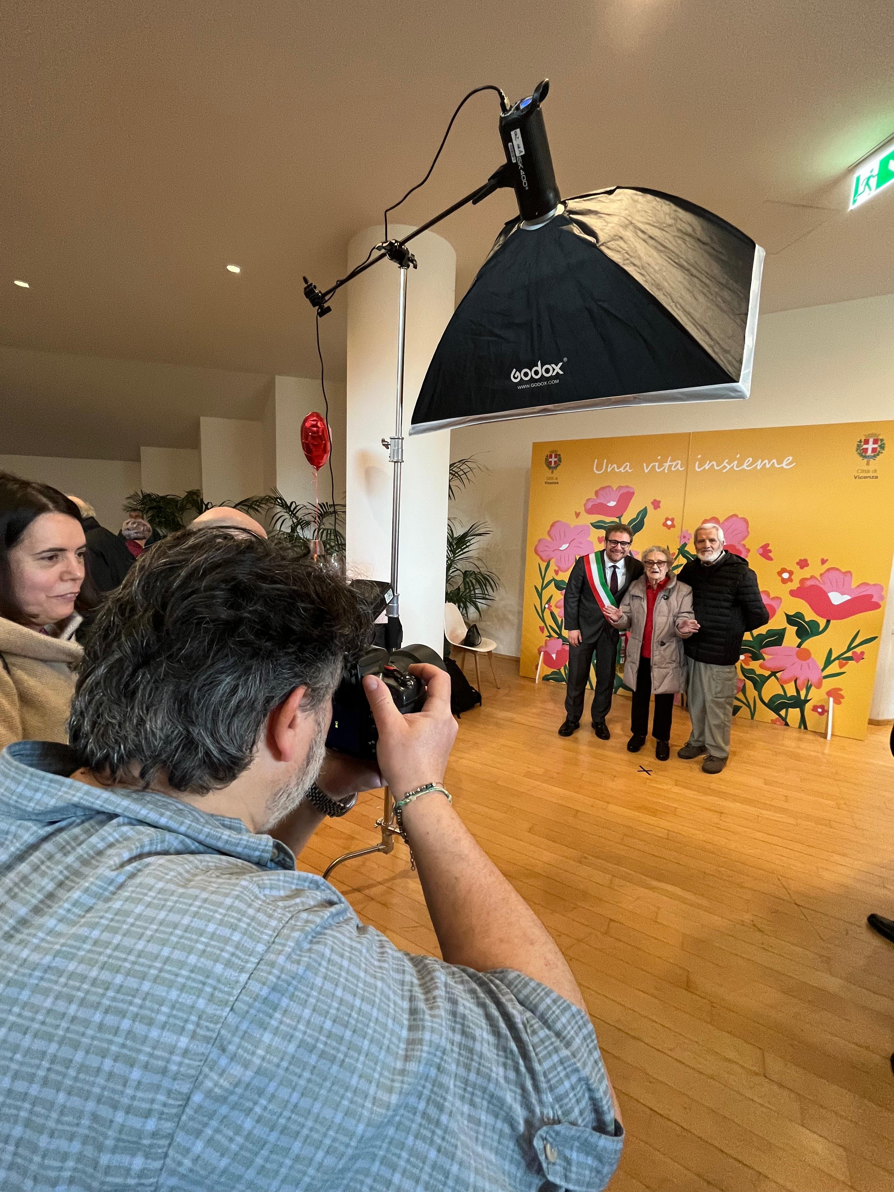 Al termine della cerimonia, nel foyer del teatro il circolo fotografico Il Punto Focale ha allestito un set dove le coppie, che hanno ricevuto anche una pergamena, hanno potuto fare una foto ricordo dell’evento.