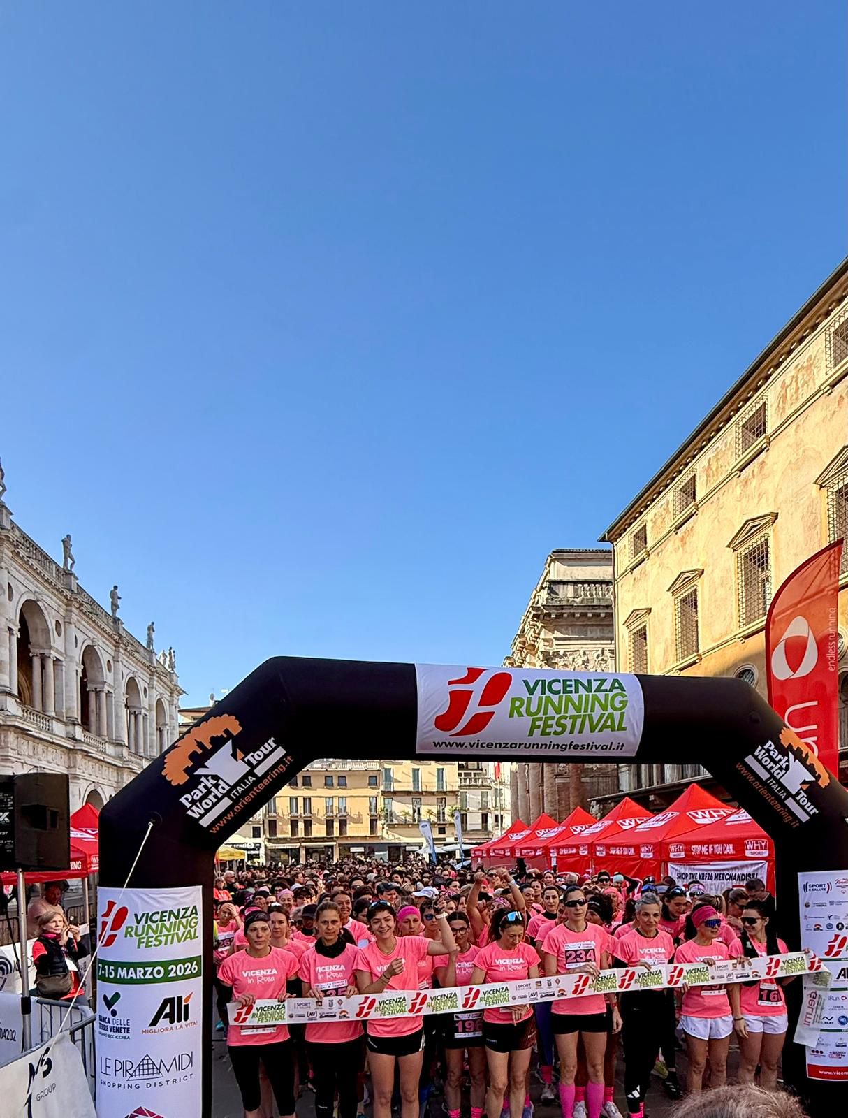 È iniziata stamattina, sabato 7 marzo, da piazza dei Signori la seconda edizione del Vicenza Running Festival con la corsa in rosa.