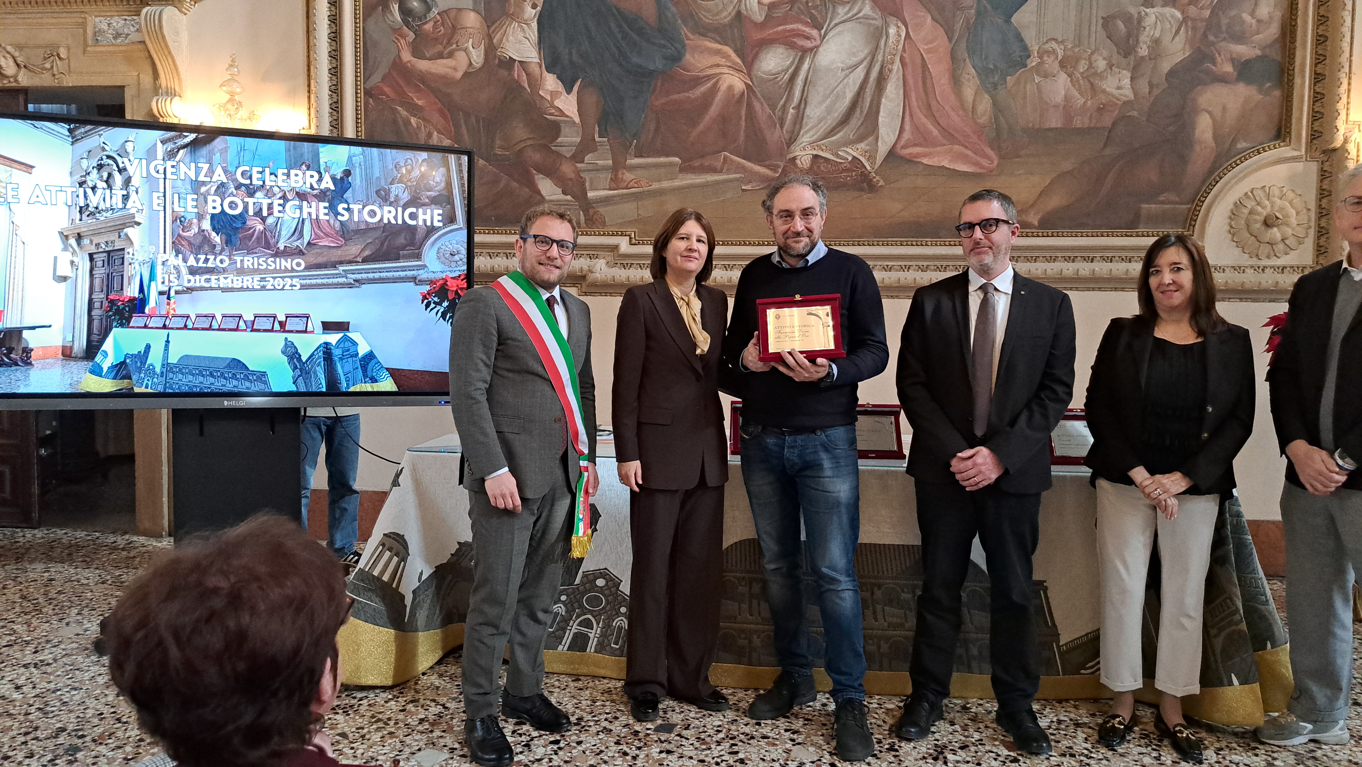 Con una suggestiva cerimonia che si è tenuta questa mattina a palazzo Trissino il sindaco di Vicenza Giacomo Possamai e l’assessora alle attività produttive Cristina Balbi hanno consegnato il riconoscimento a due botteghe e cinque attività storiche che da decenni rappresentano un presidio di qualità, tradizione e socialità nei quartieri e nel centro storico.