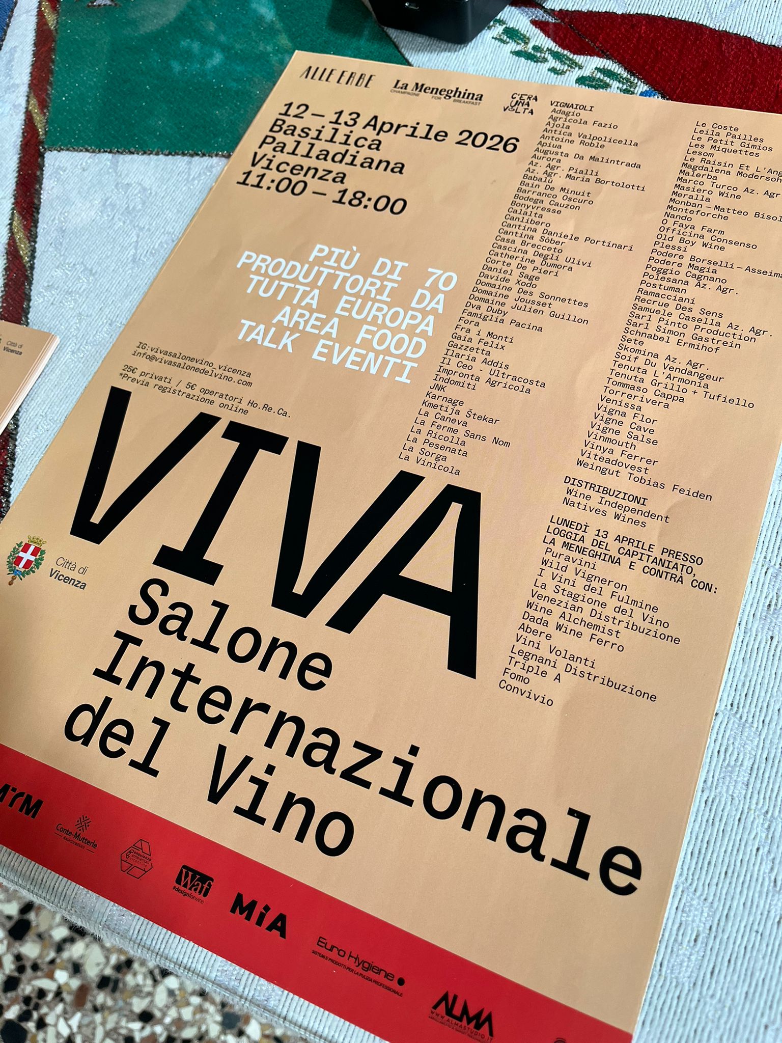 Più di 70 produttori da tutta Europa, area dedicata al cibo, talk e masterclass, eventi correlati distribuiti in tutta la città: sono le caratteristiche di Viva, iniziativa che raccoglie l’eredità ed i successi di Les grottes e C’era una volta, spostandosi per la prima volta nel cuore di Vicenza, con l’obiettivo di valorizzare realtà vitivinicole che adottano metodi naturali, biologici e sostenibili, ispirati a principi etici e al rispetto dell’ambiente. Particolare attenzione è dedicata quindi alla produzione a metodo naturale e al territorio vicentino, da secoli protagonista nella coltivazione della vite e nella produzione di vini di qualità.
